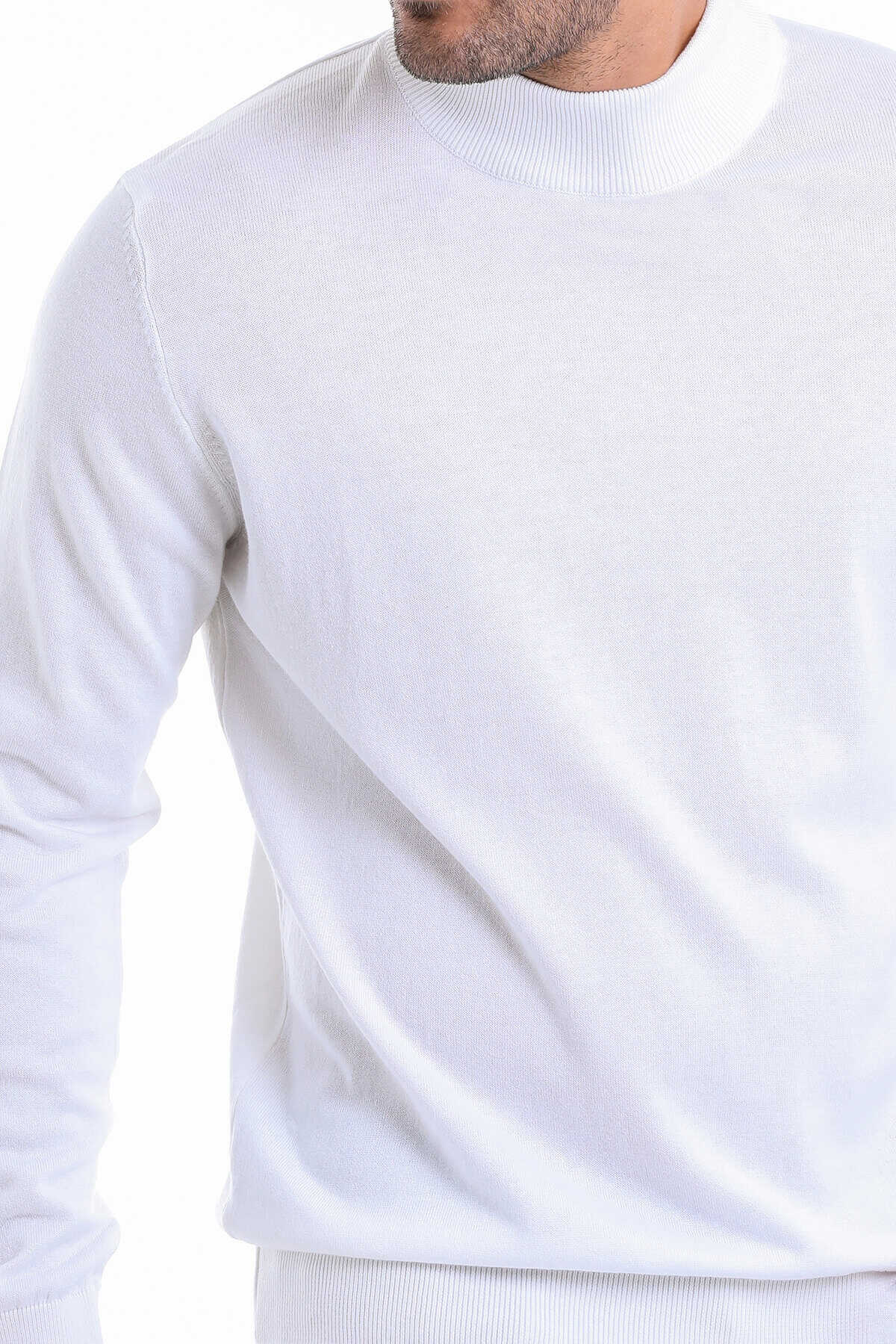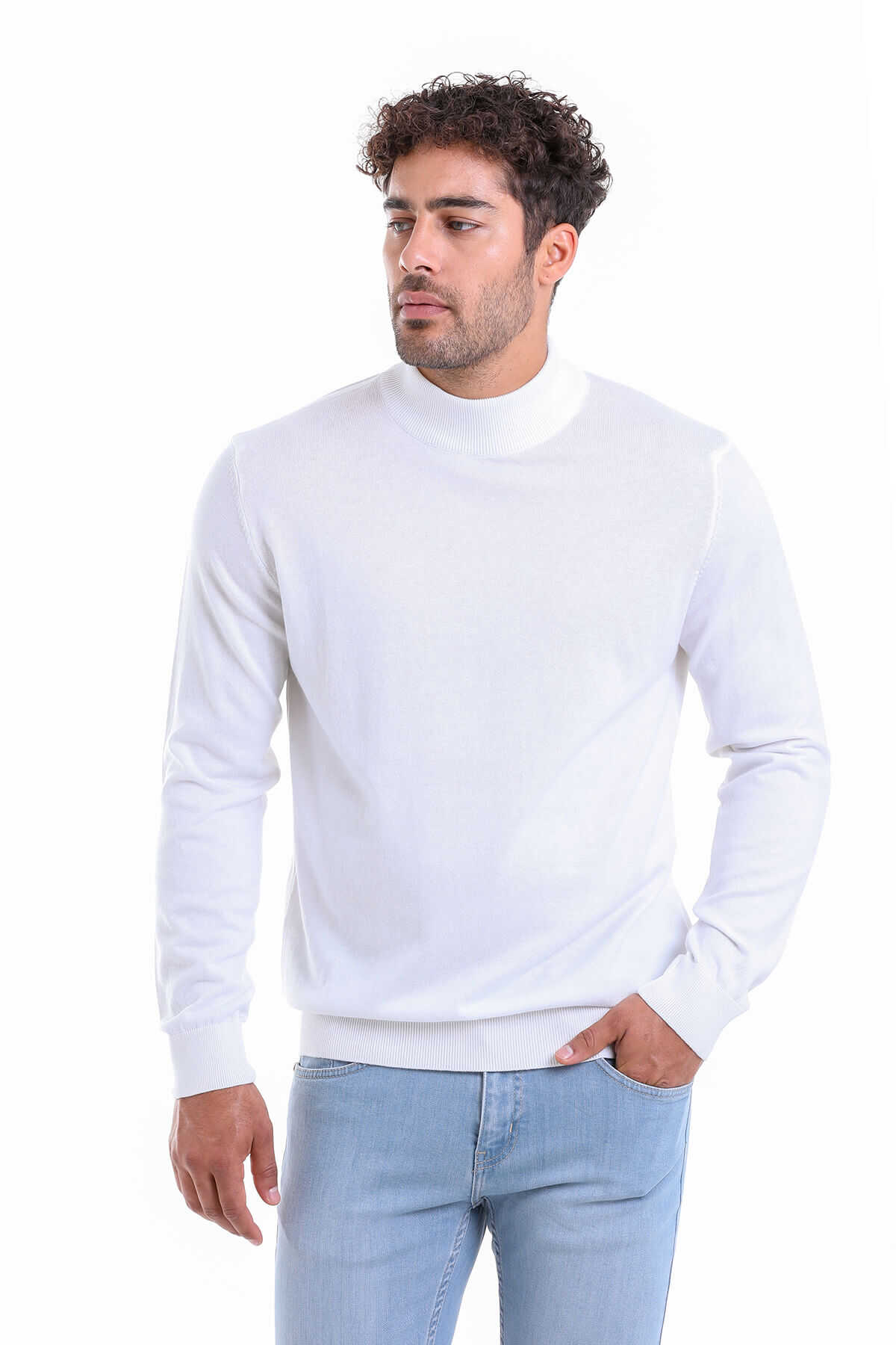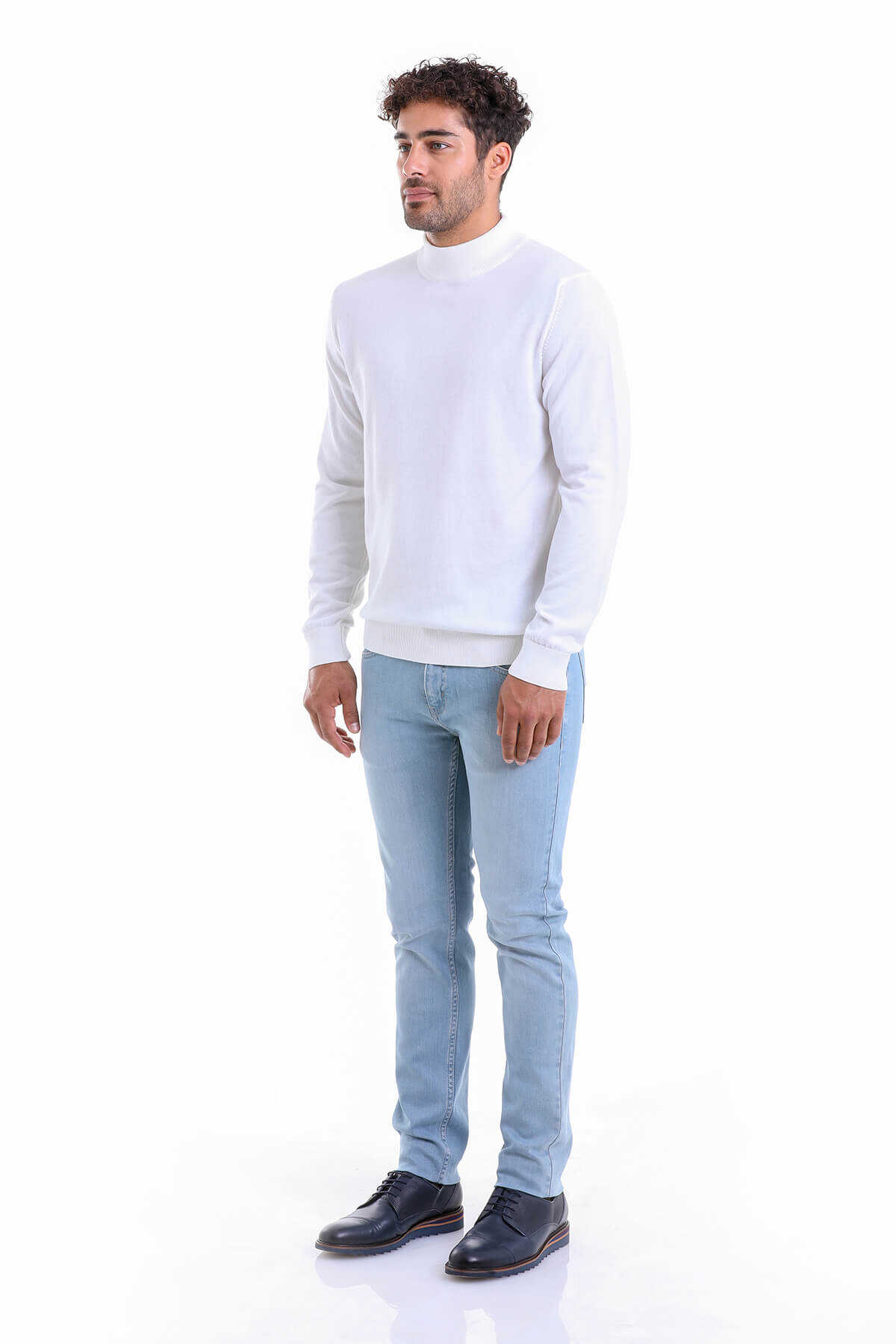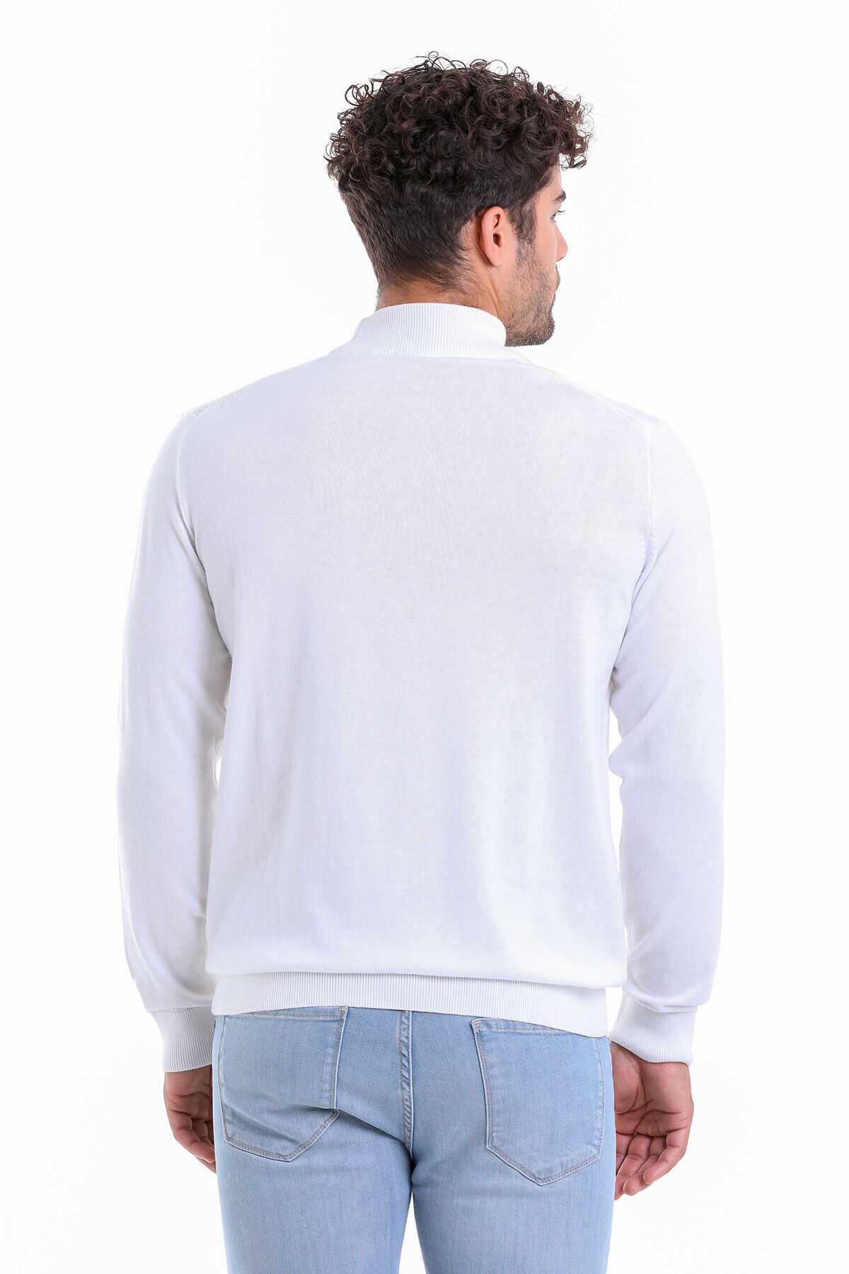Ekru Regular Fit Düz 100% Pamuk Yarım Balıkçı Yaka Triko Kazak
