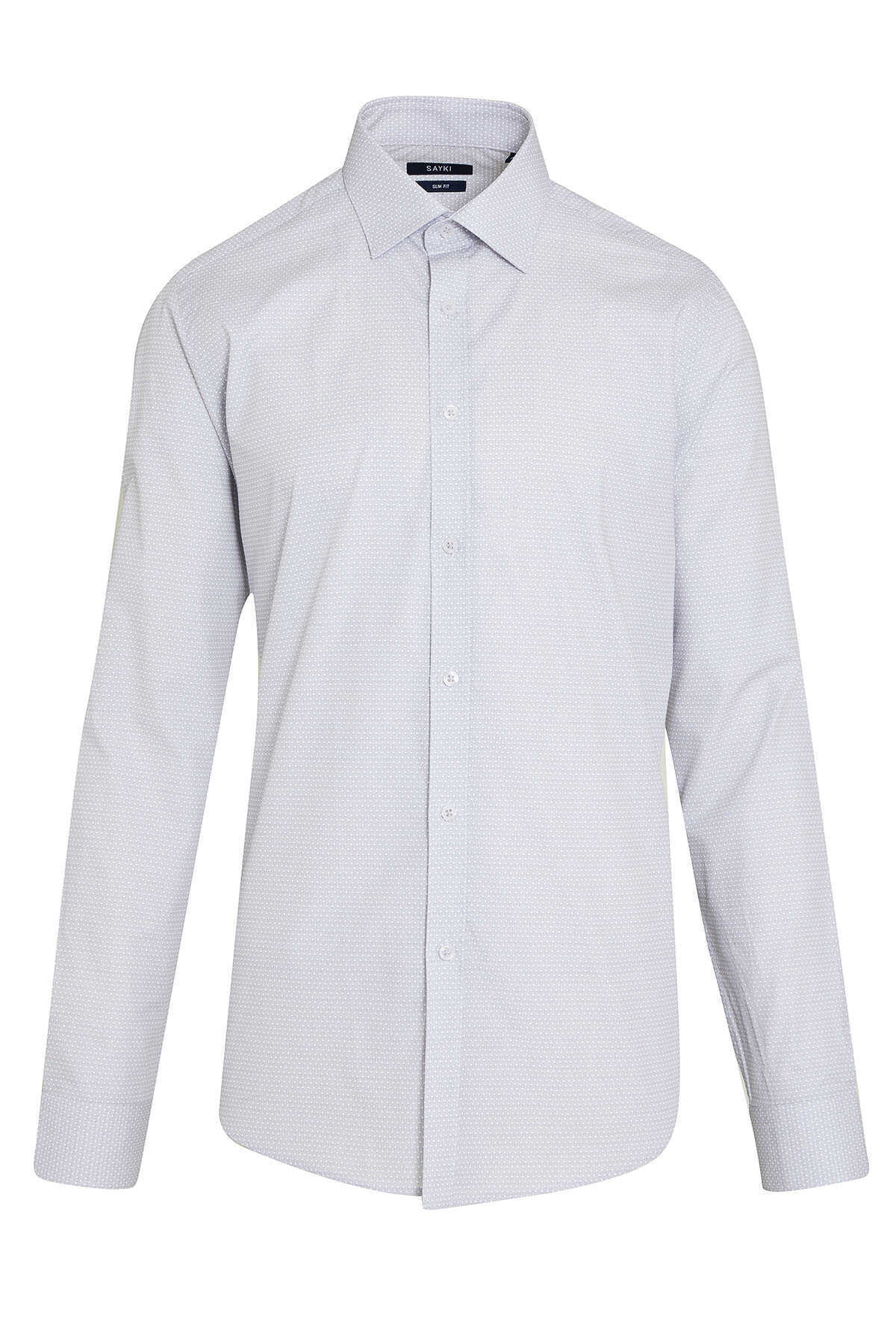 Gri Slim Fit Baskılı 100% Pamuk Slim Yaka Uzun Kollu Casual Gömlek