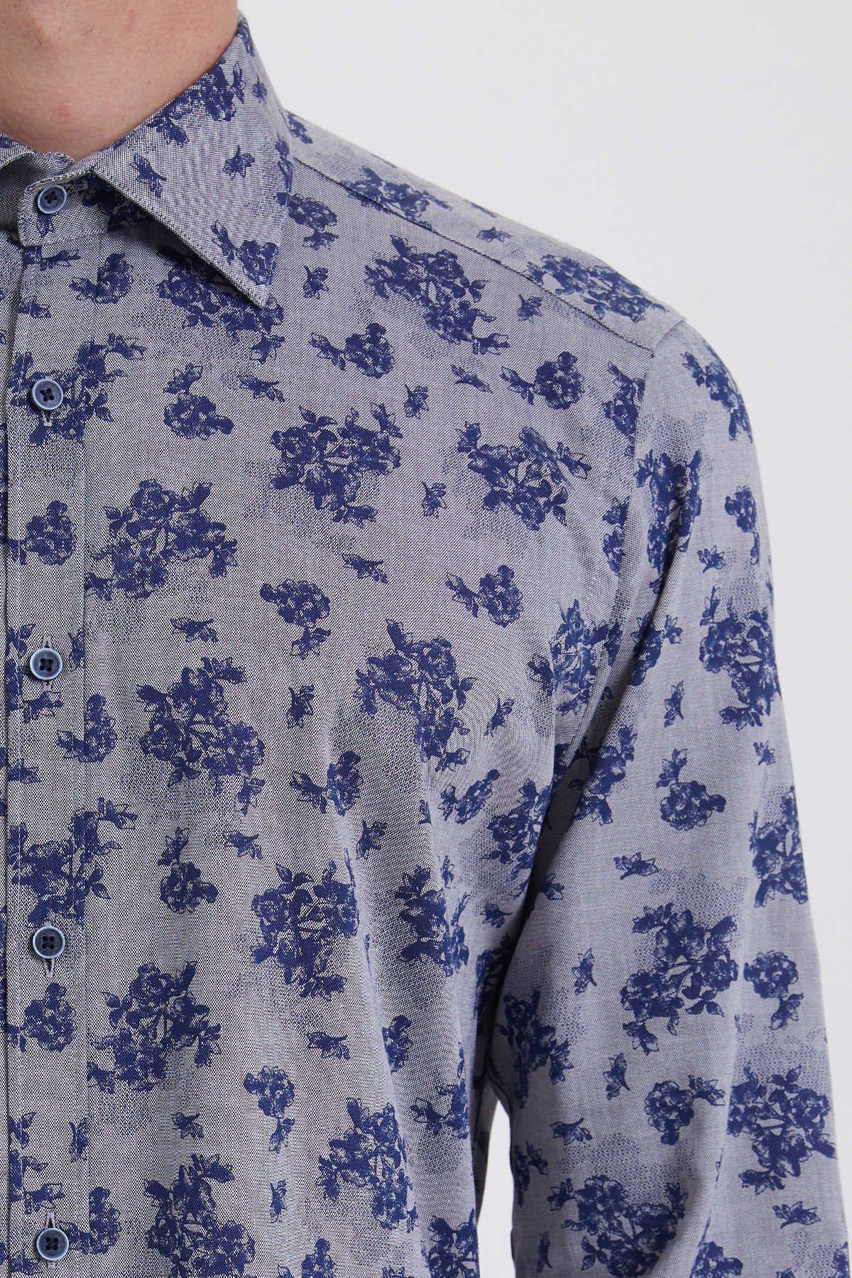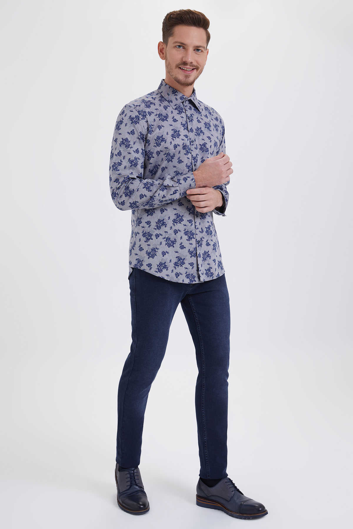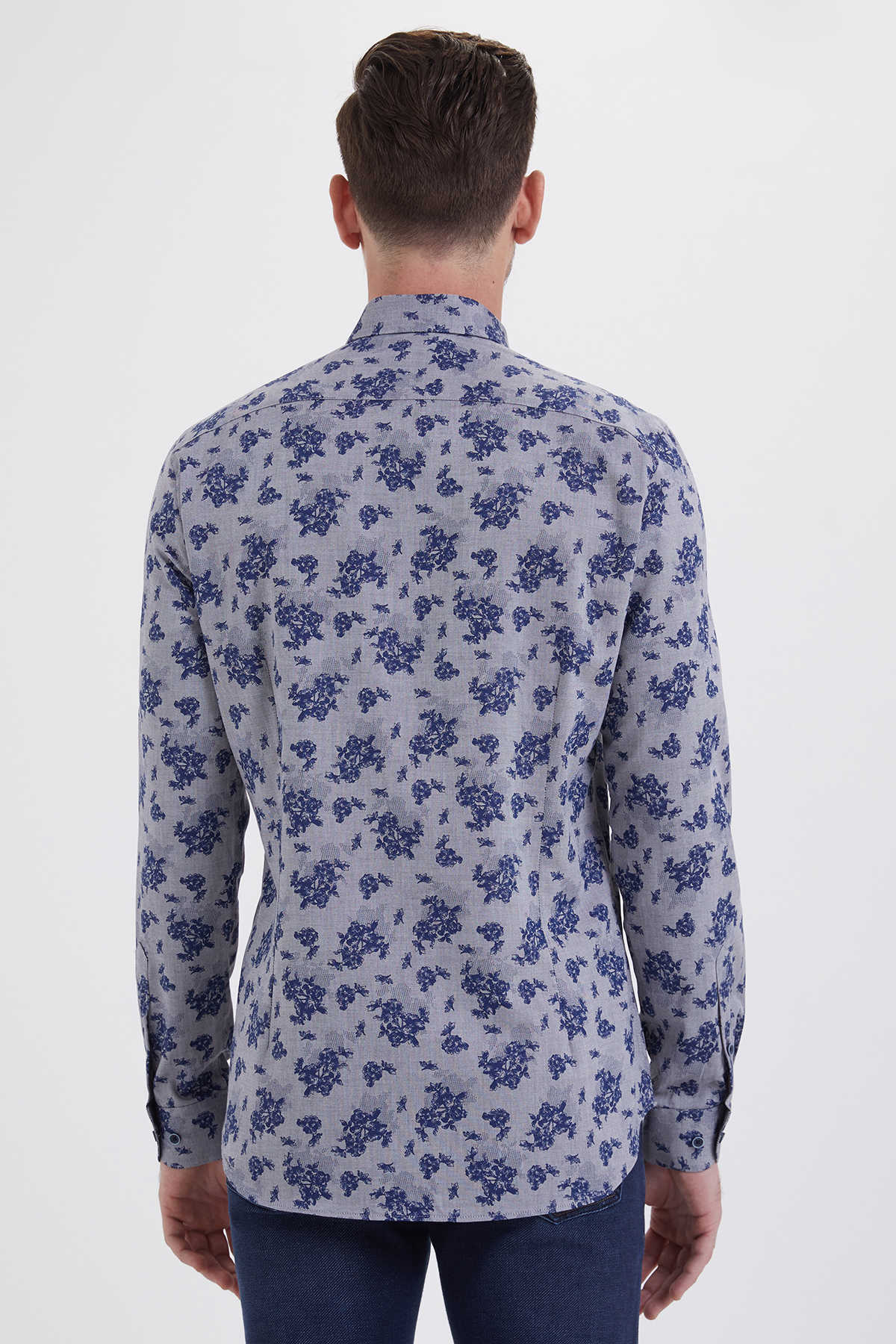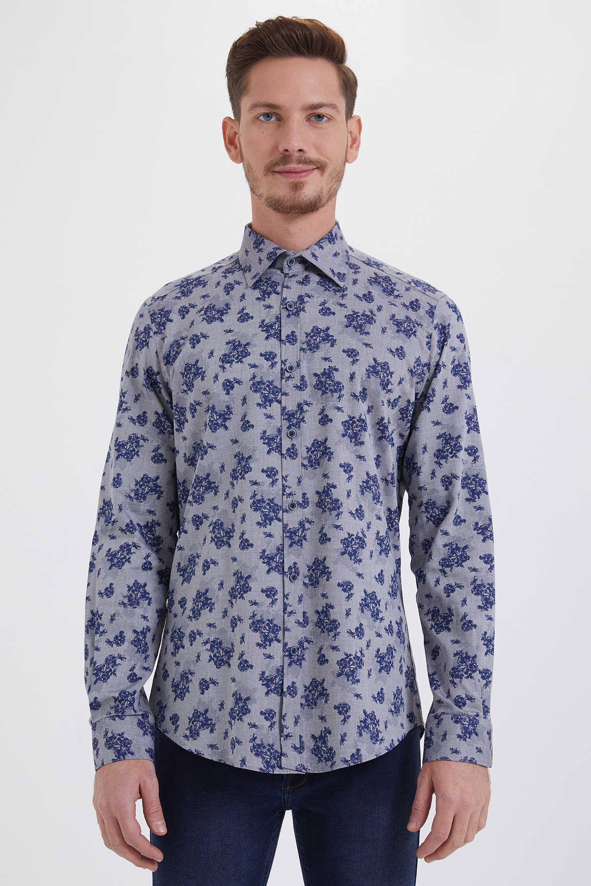Gri Baskılı Slim Fit Gömlek