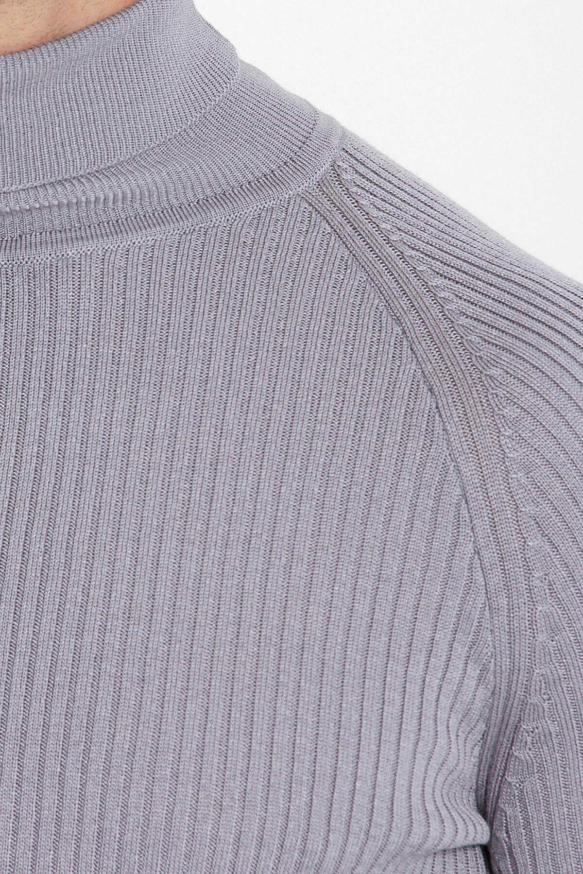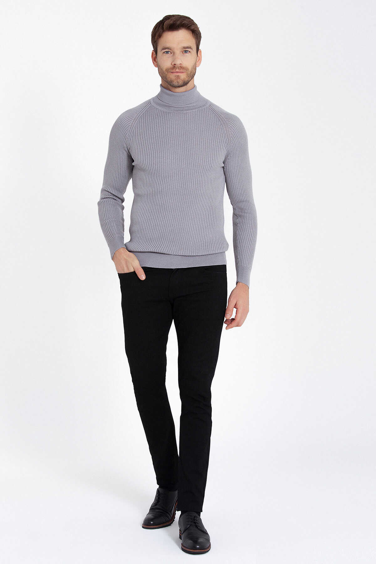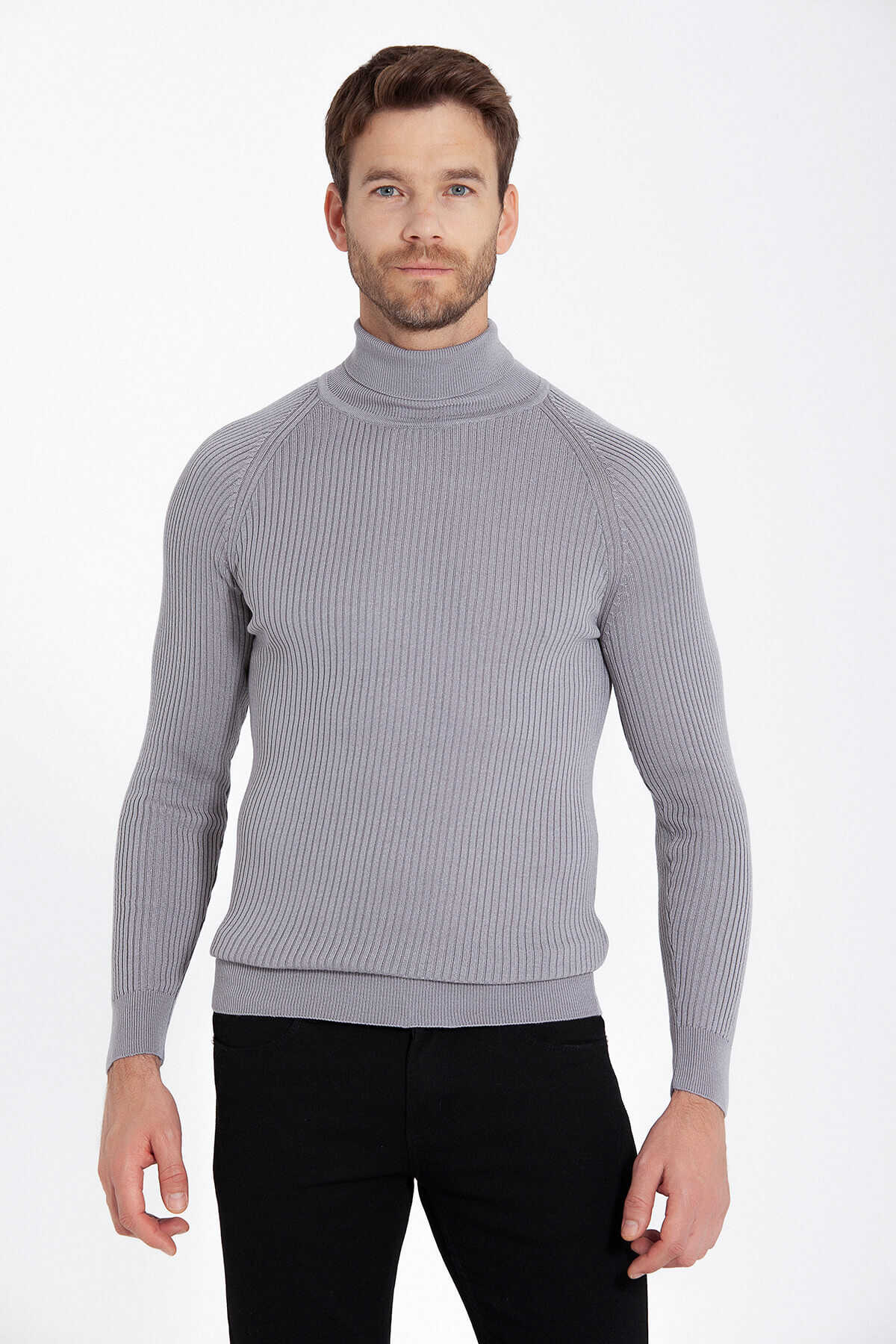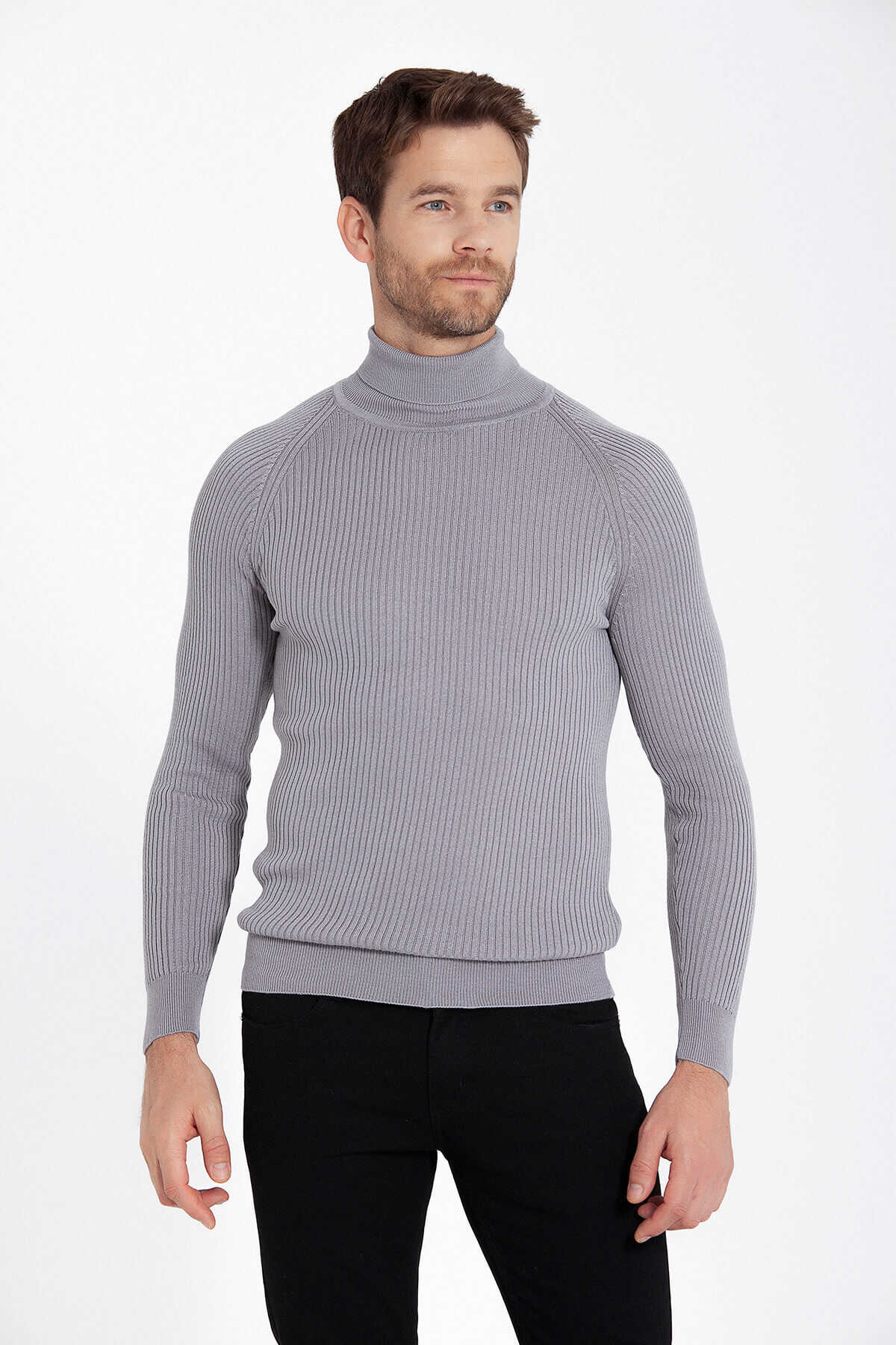 Gri Slim Fit Balıkçı Yaka Triko Kazak