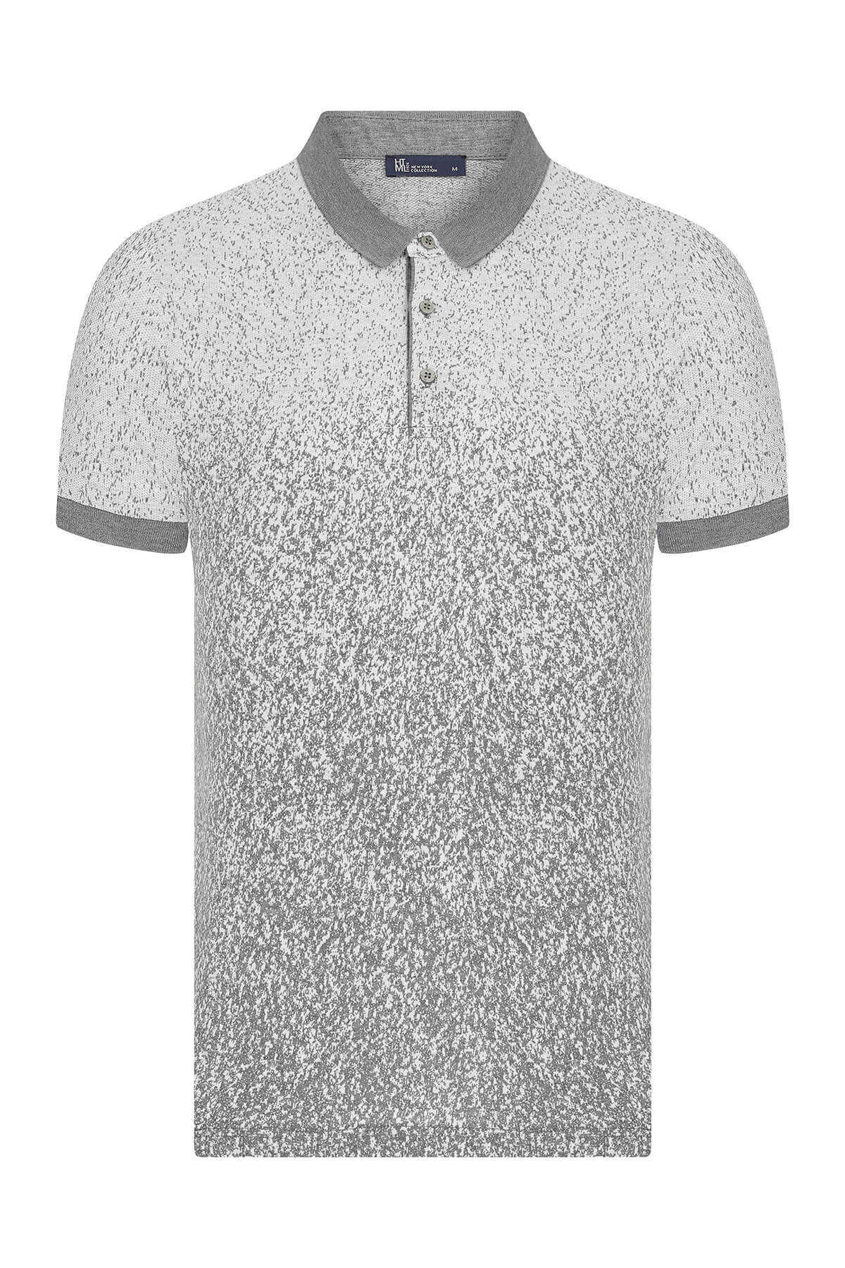 Gri Baskılı Beyaz Polo Yaka Tişört