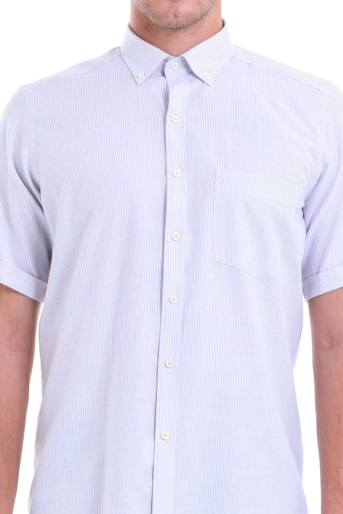 Gri Regular Fit Pamuklu Düğmeli Yaka Kısa Kol Klasik Gömlek