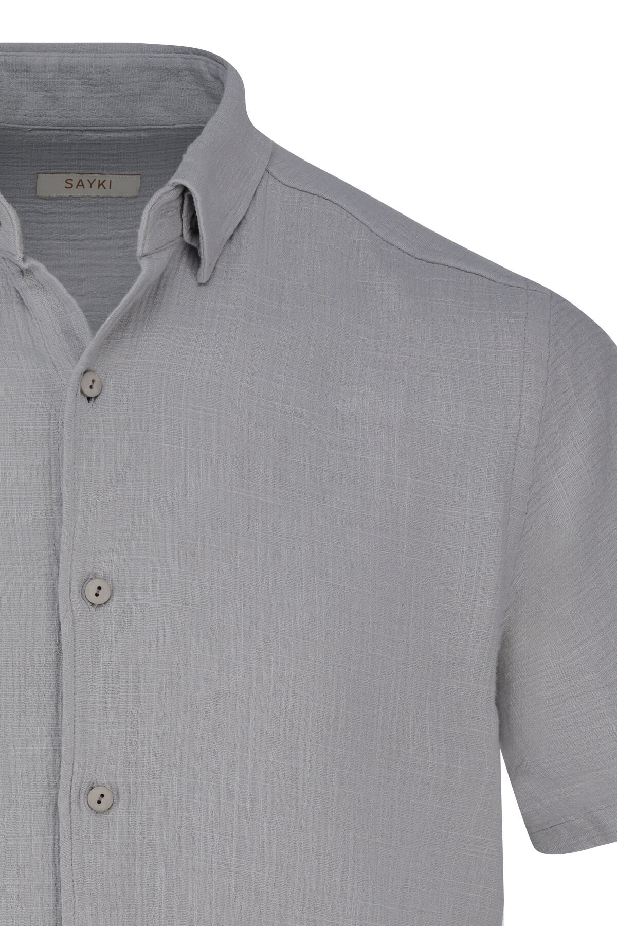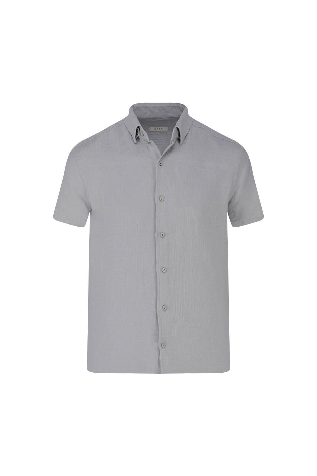 Gri Düğmeli Yaka Kısa Kollu Gömlek, modern ve zamansız bir tarz arayanlar için mükemmel bir parçadır. %100 pamuklu kumaşı sayesinde sıcak havalarda bile ferah ve rahat bir kullanım sunar. Nötr gri rengi ve sade tasarımı, bu gömleği hem günlük hem de daha şık kombinler için ideal bir seçenek haline getirir.