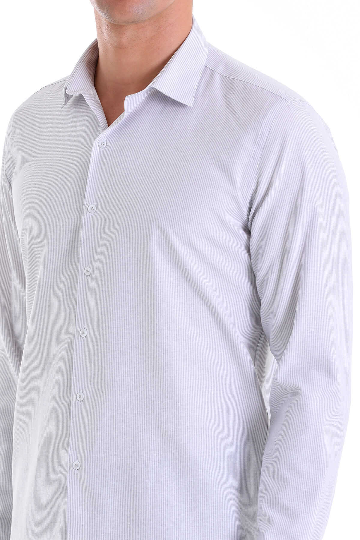 Gri Comfort Fit Çizgili Pamuklu Slim Yaka Uzun Kollu Casual Gömlek - 6