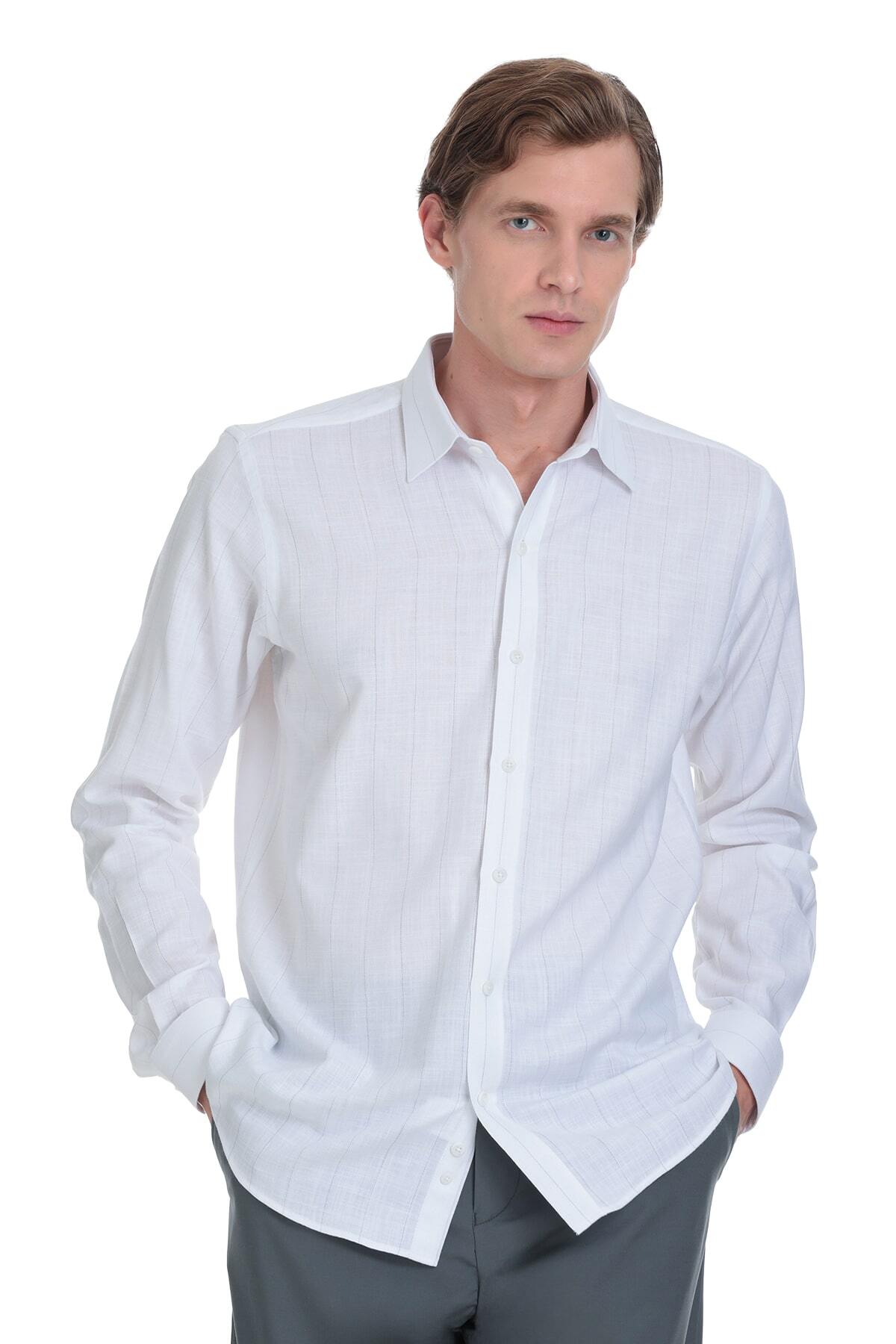 Gri Comfort Fit Çizgili Slim Yaka 100% Pamuk Uzun Kollu Spor Gömlek
