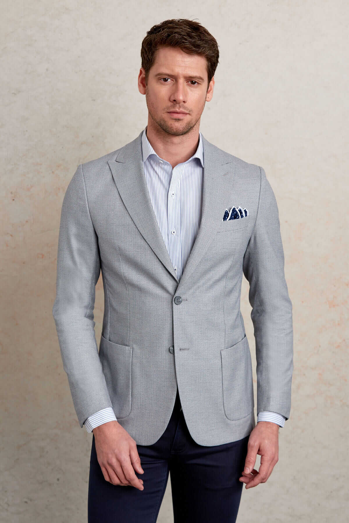Gri Comfort Fit Sivri Yaka 4 Drop Klasik Ceket - 8