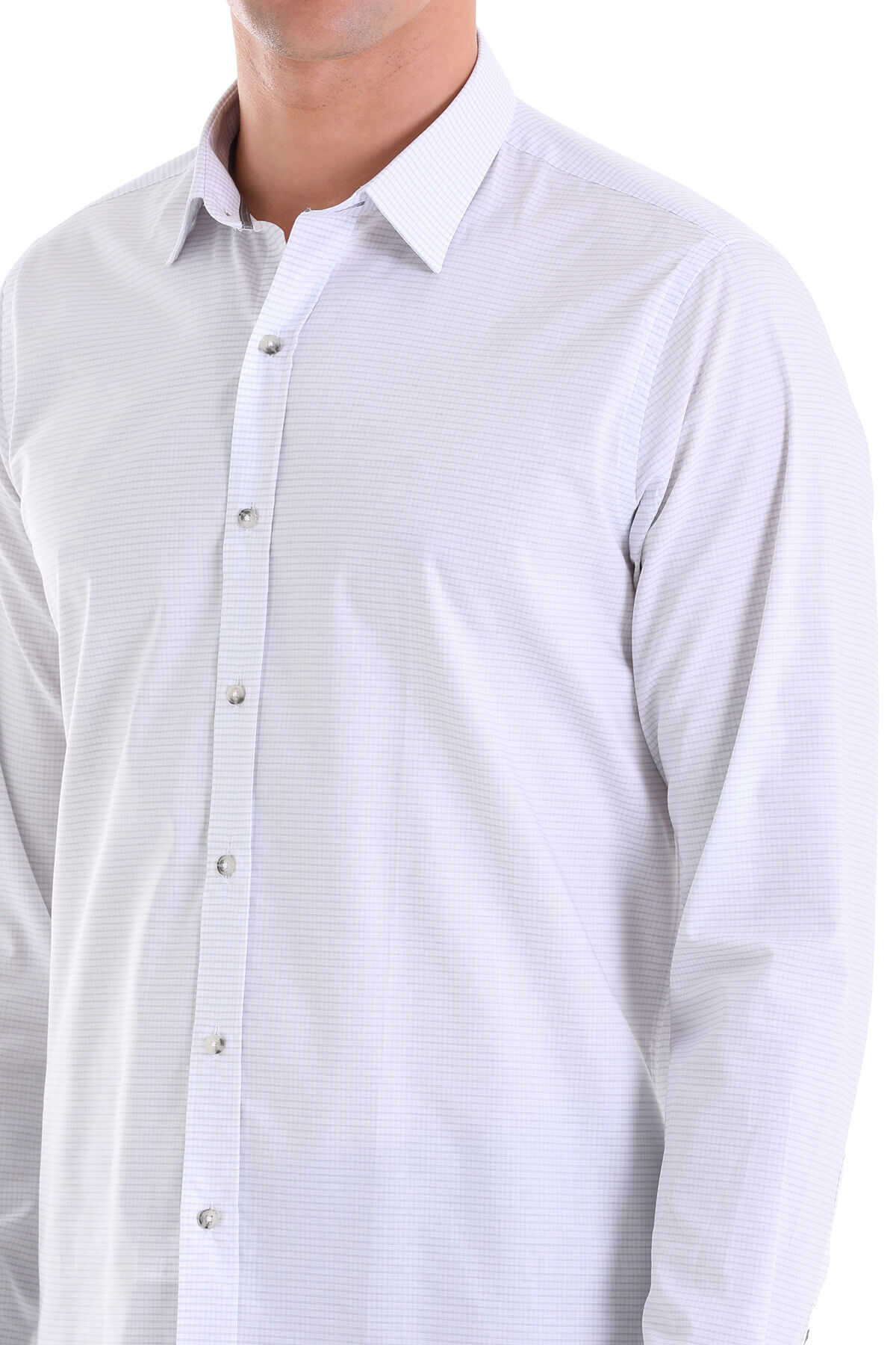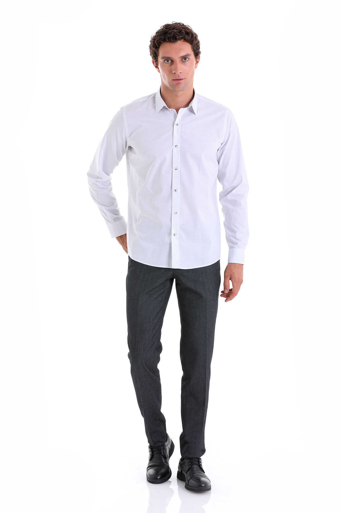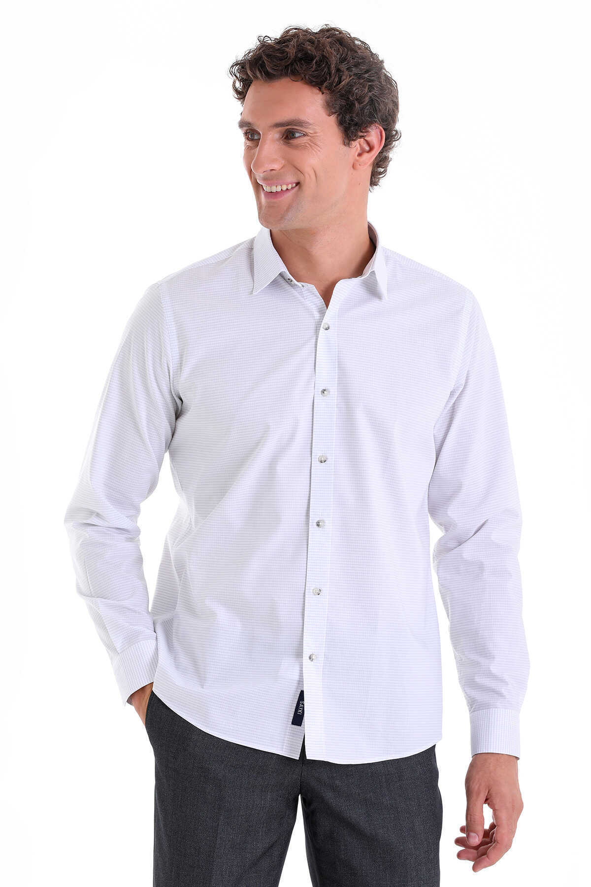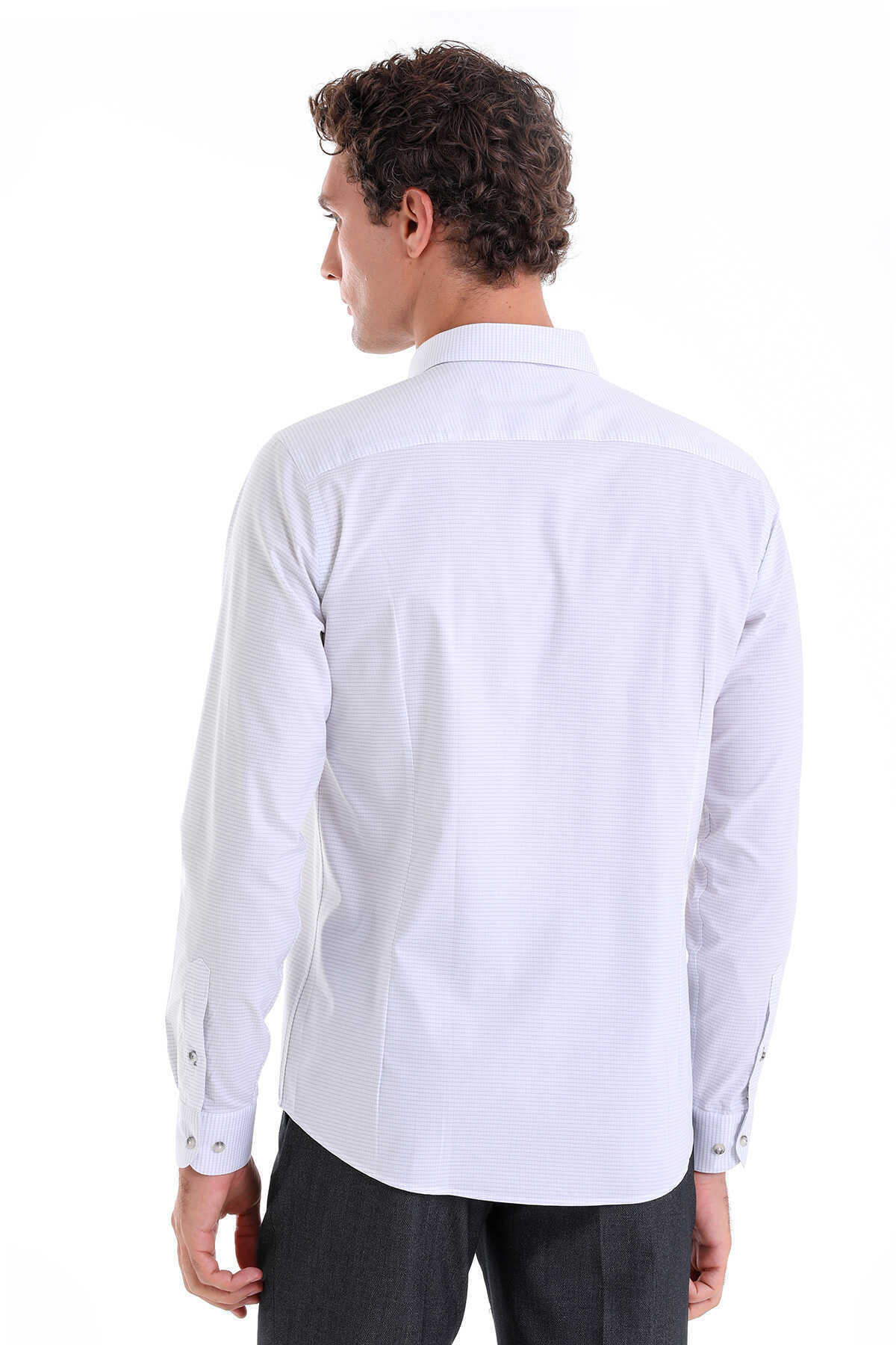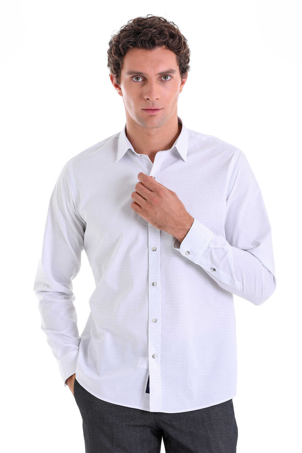 Gri Comfort Fit Kareli 100% Pamuk Slim Yaka Uzun Kollu Casual Gömlek