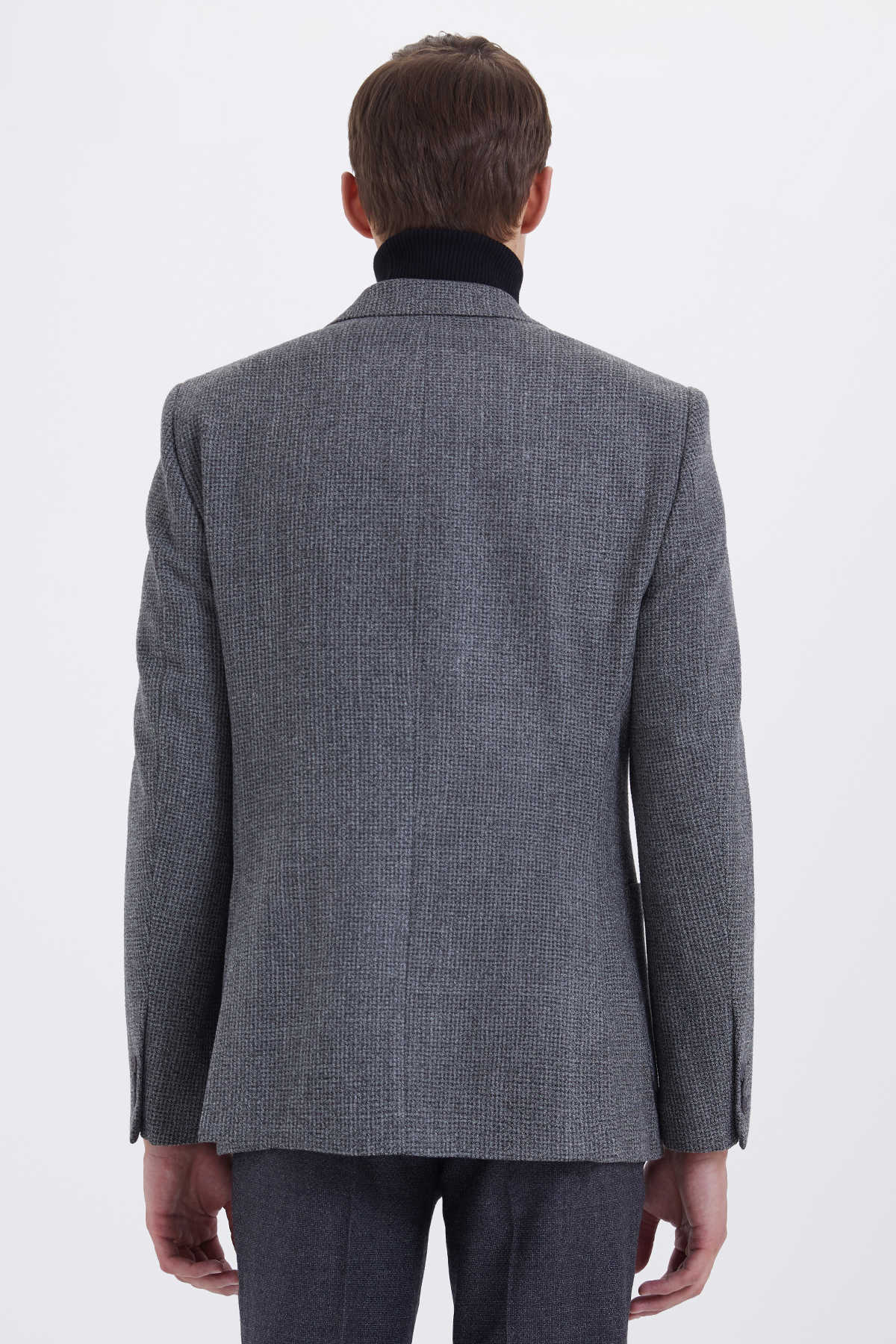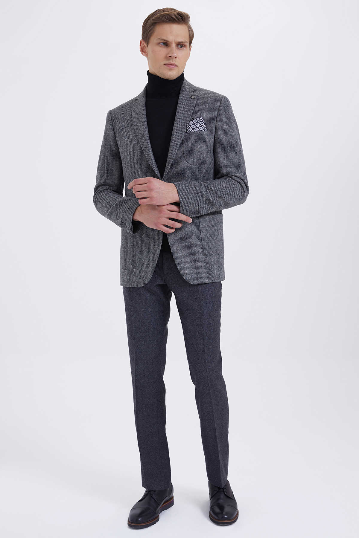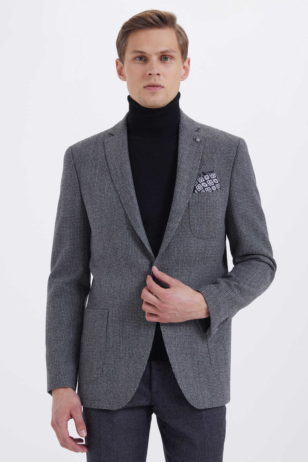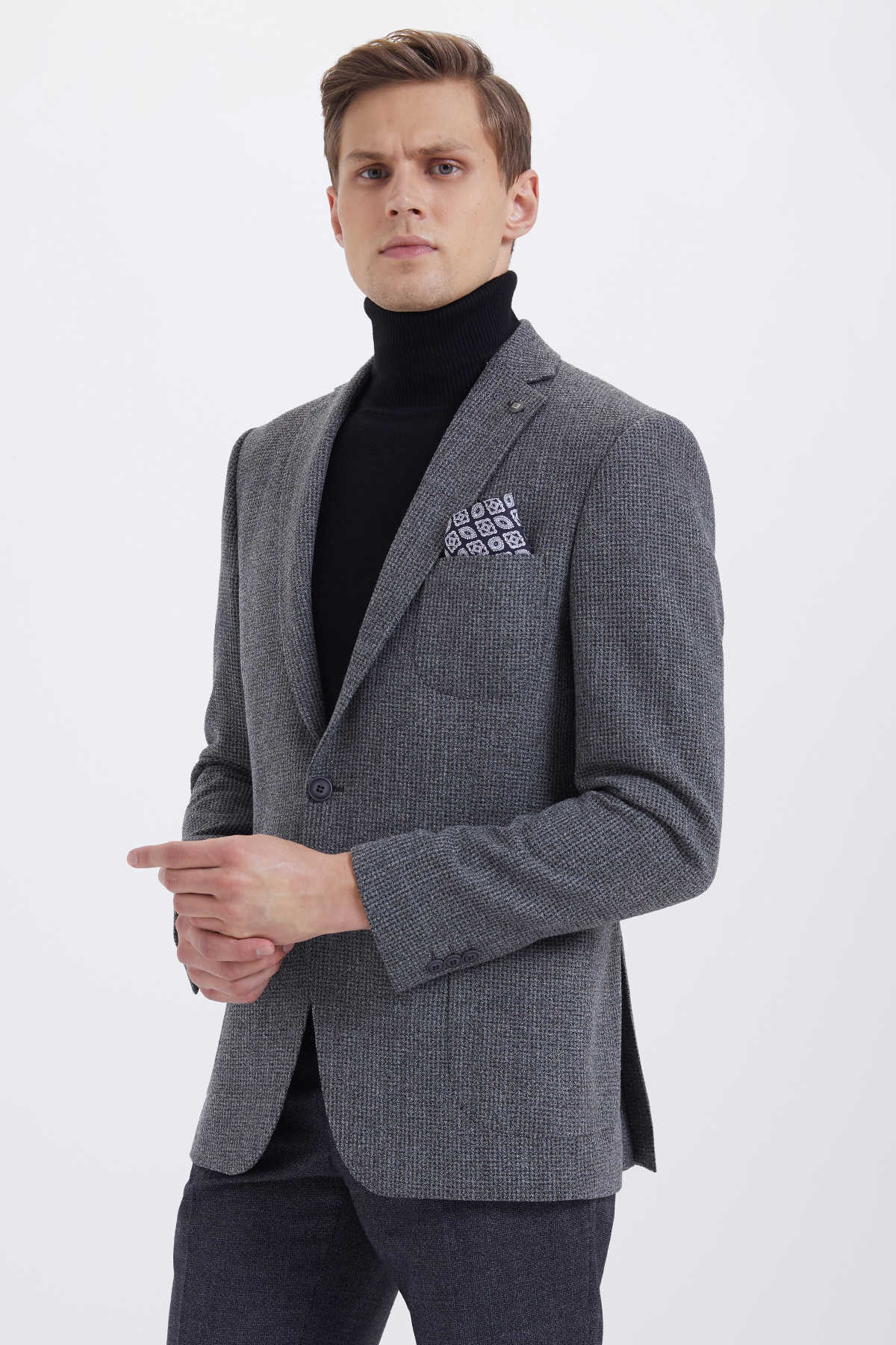 Gri Slim Fit Desenli Klasik Ceket
