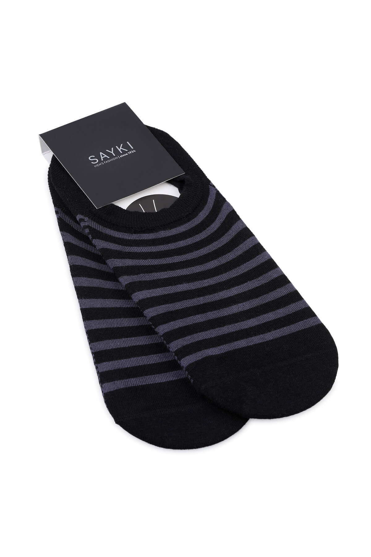 Gri Desenli Pamuklu İkili Babet Çorap - 1