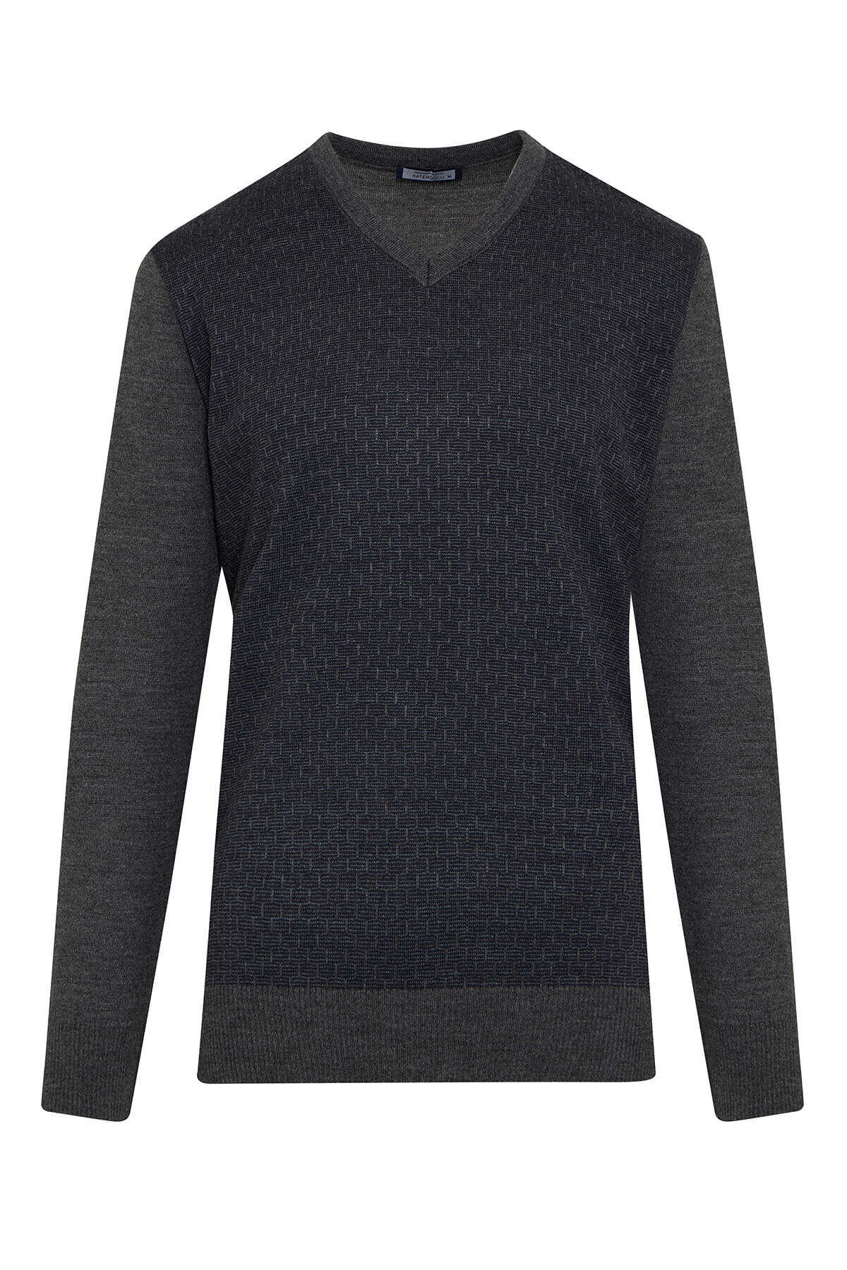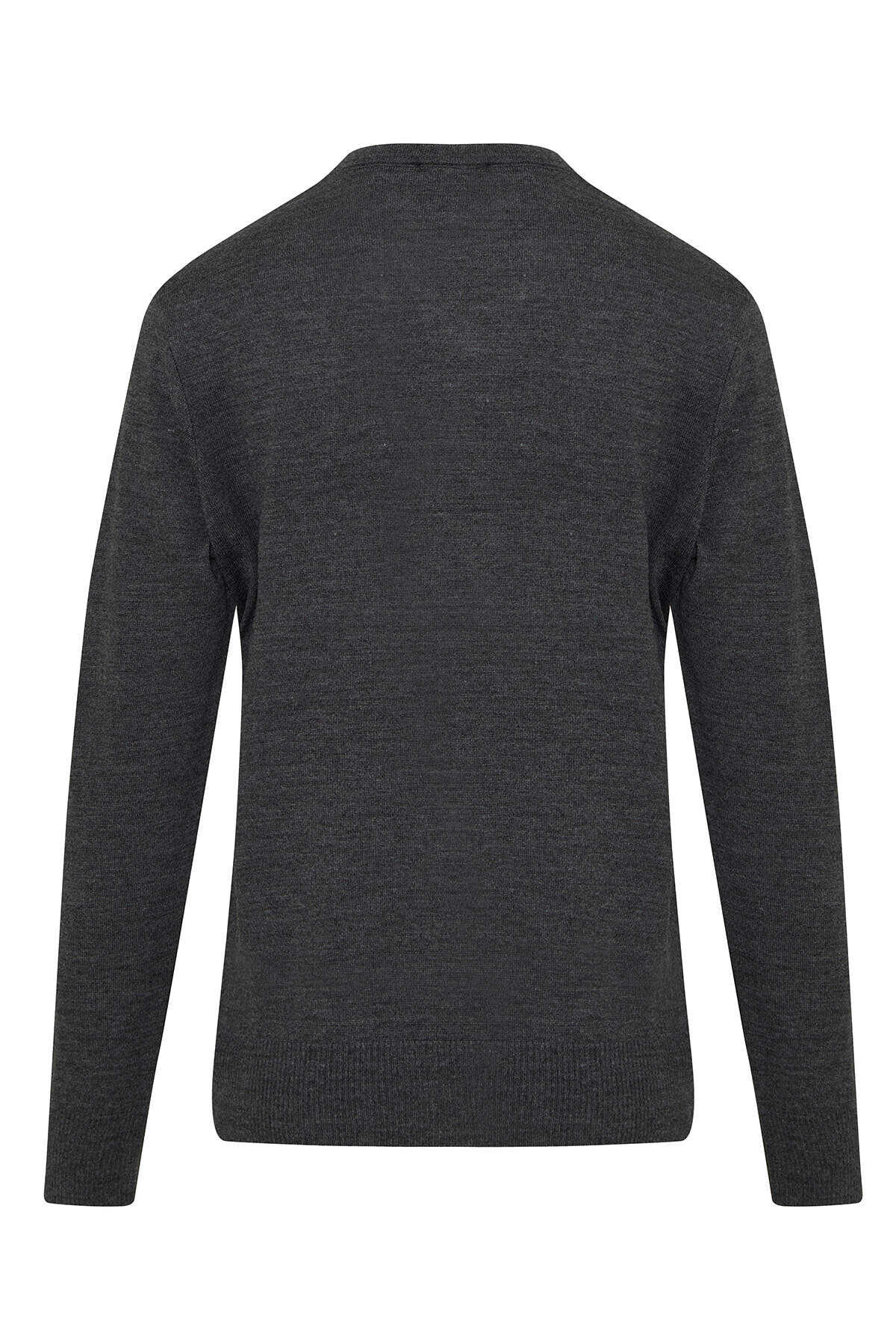 Gri Regular Fit Desenli V Yaka Yünlü Kazak