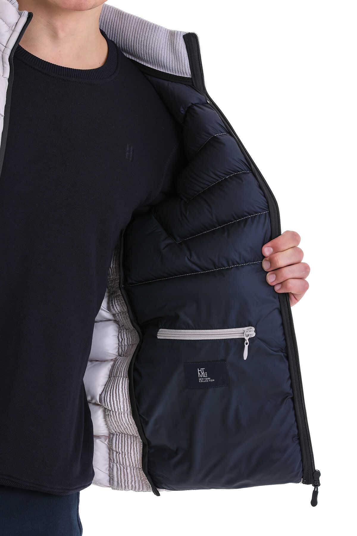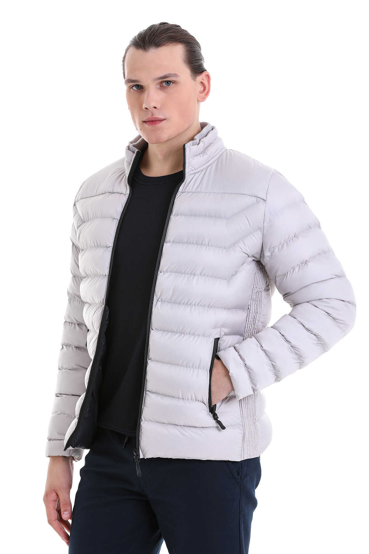 Gri Ekstra Slim Fit Hakim Yaka Şişme Mont