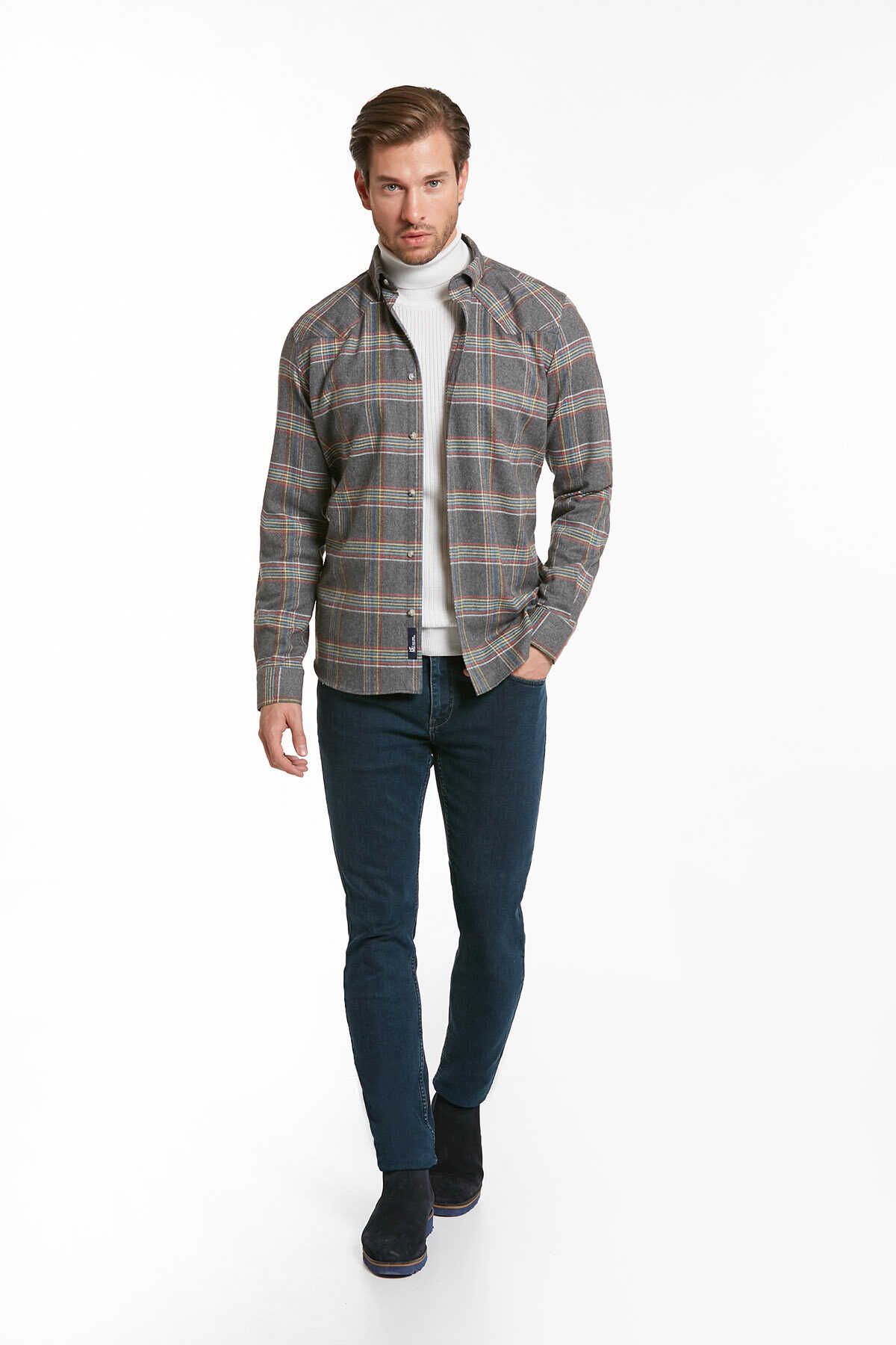 Gri Slim Fit Kareli Düğmeli Yaka Uzun Kollu Casual Flanel Gömlek