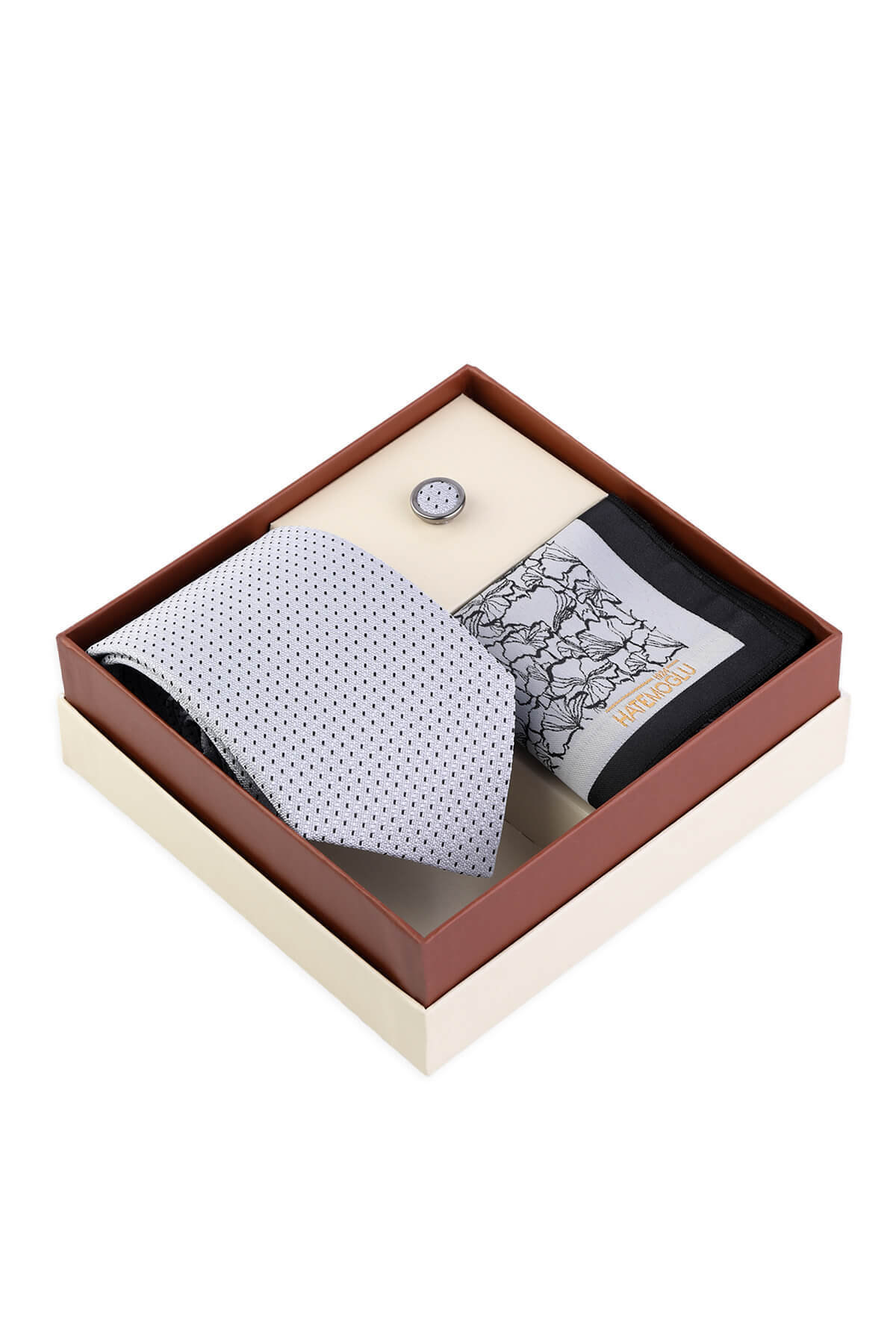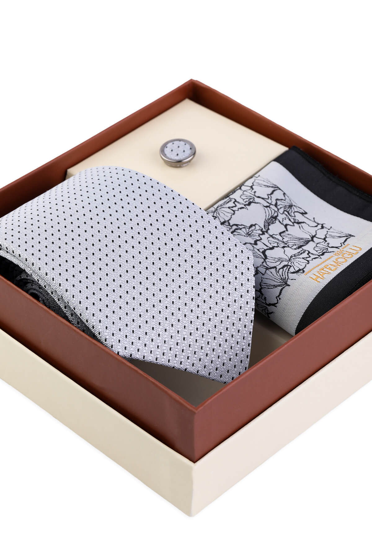 Gri Kravat Mendil ve Yaka Rozeti 3'lü Set