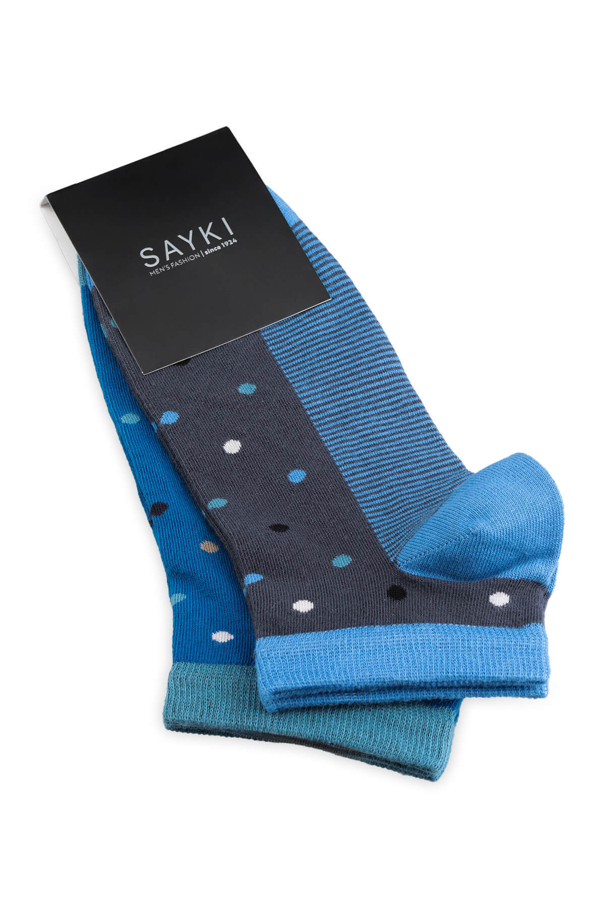 Gri - Mavi 2'li Puantiyeli Kısa Çorap - 1