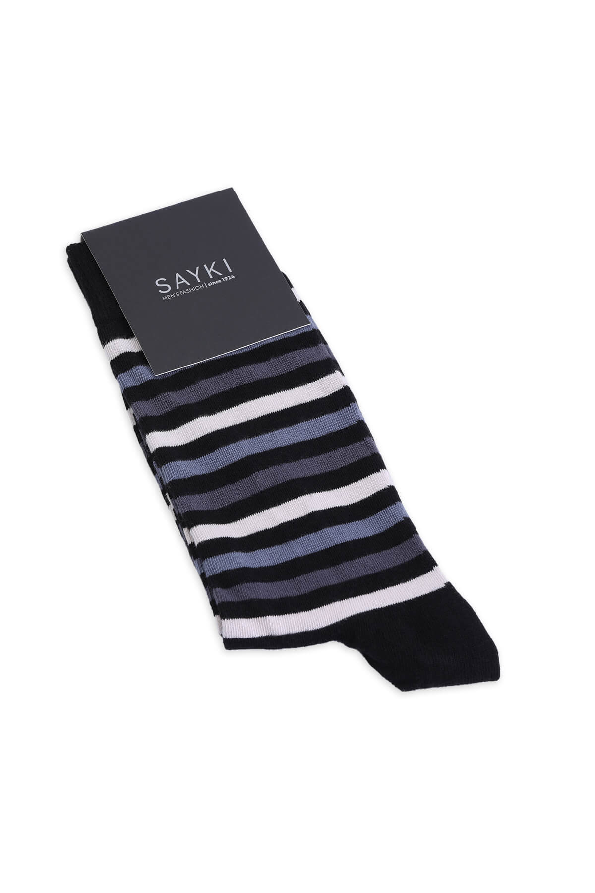 Gri Pamuklu Çizgili Soket Çorap - 1