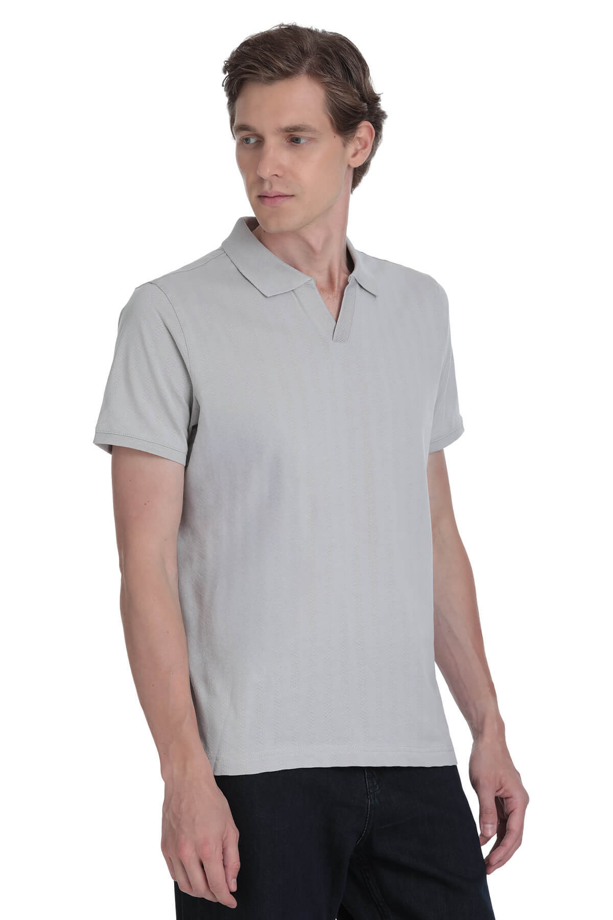 Gri Regular Fit Apaş Yaka Pamuklu Tişört - 5