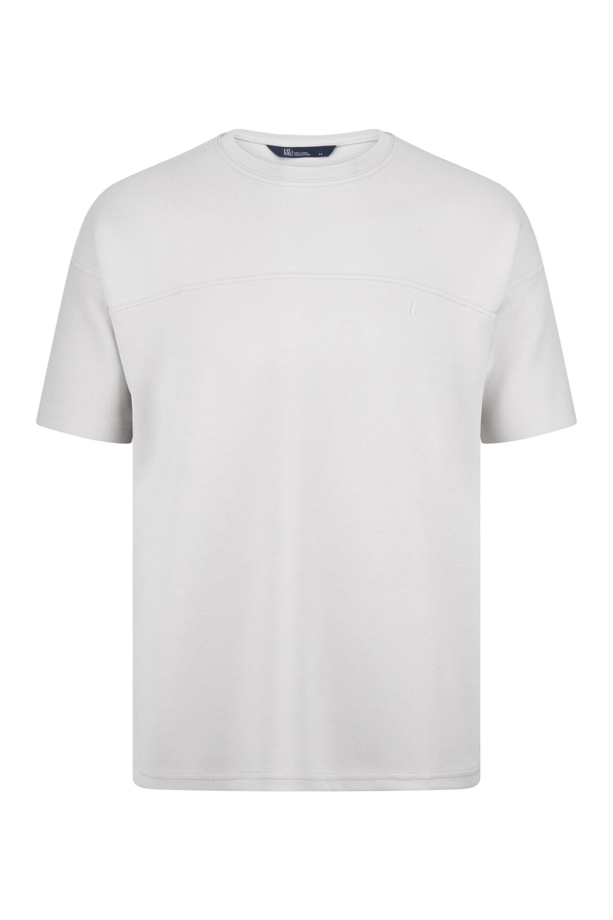 Gri Regular Fit Bisiklet Yaka Oversize Tişört - 2