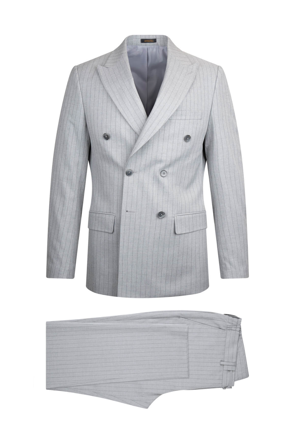 • Gri Regular Fit Çizgili Kruvaze Klasik Takım Elbise, gri tonunun zamansız ve dengeli duruşunu çizgili dokusuyla birleştiren, hem sade hem de sofistike bir seçenektir. Regular Fit kalıp, konforlu bir oturuş sağlarken vücudu sıkmaz; kruvaze kapama detayı klasik ve karakterli tarzı öne çıkarır.