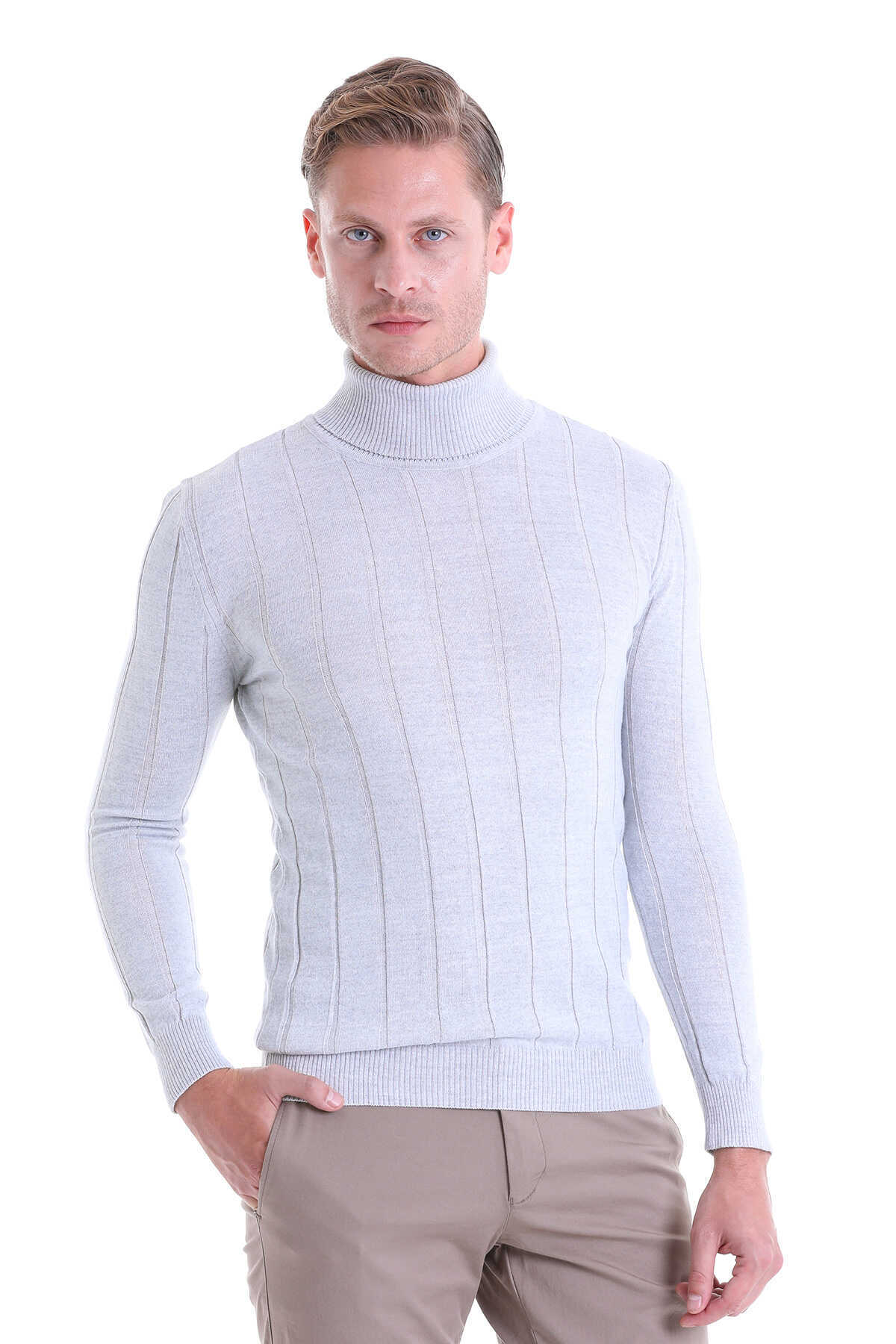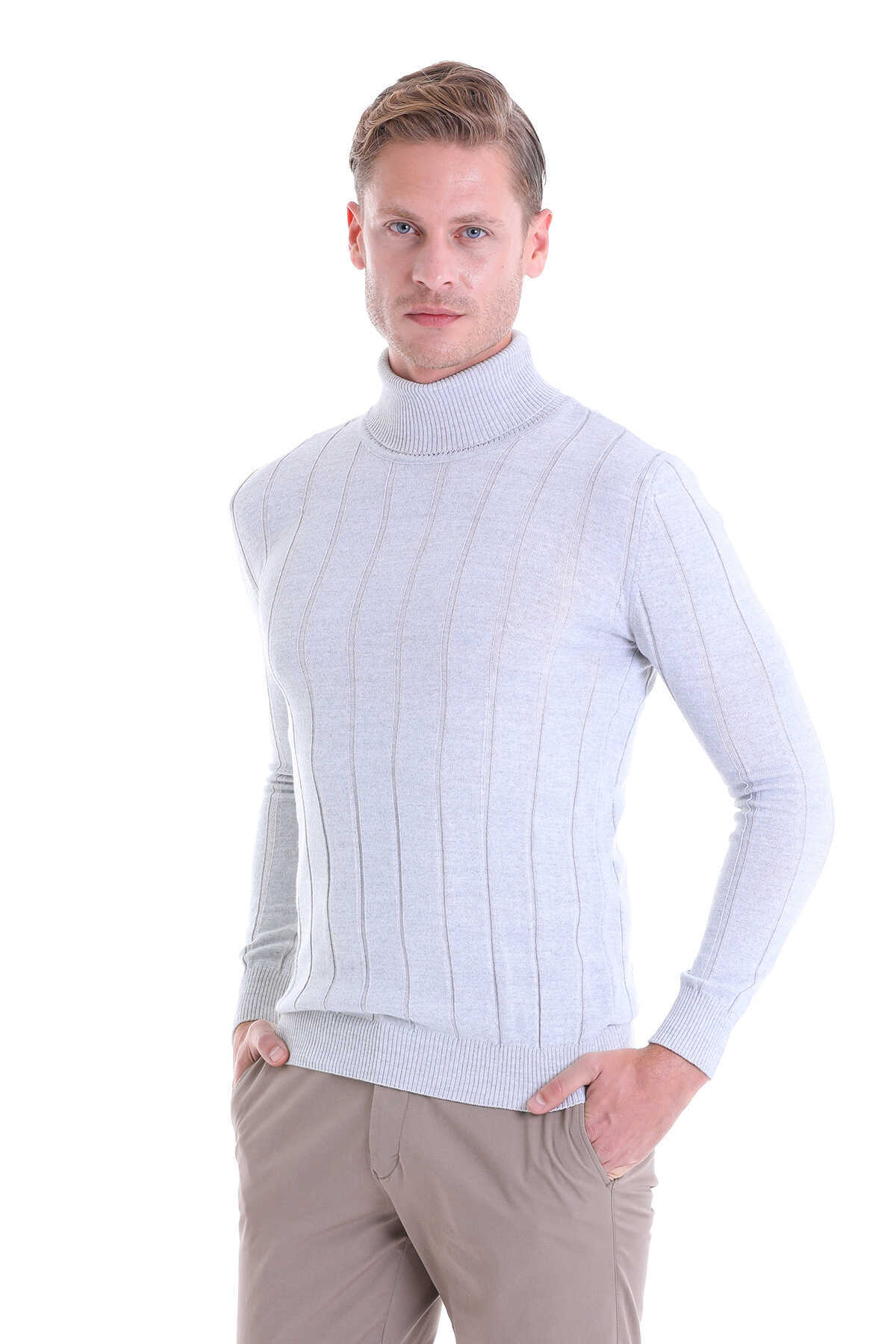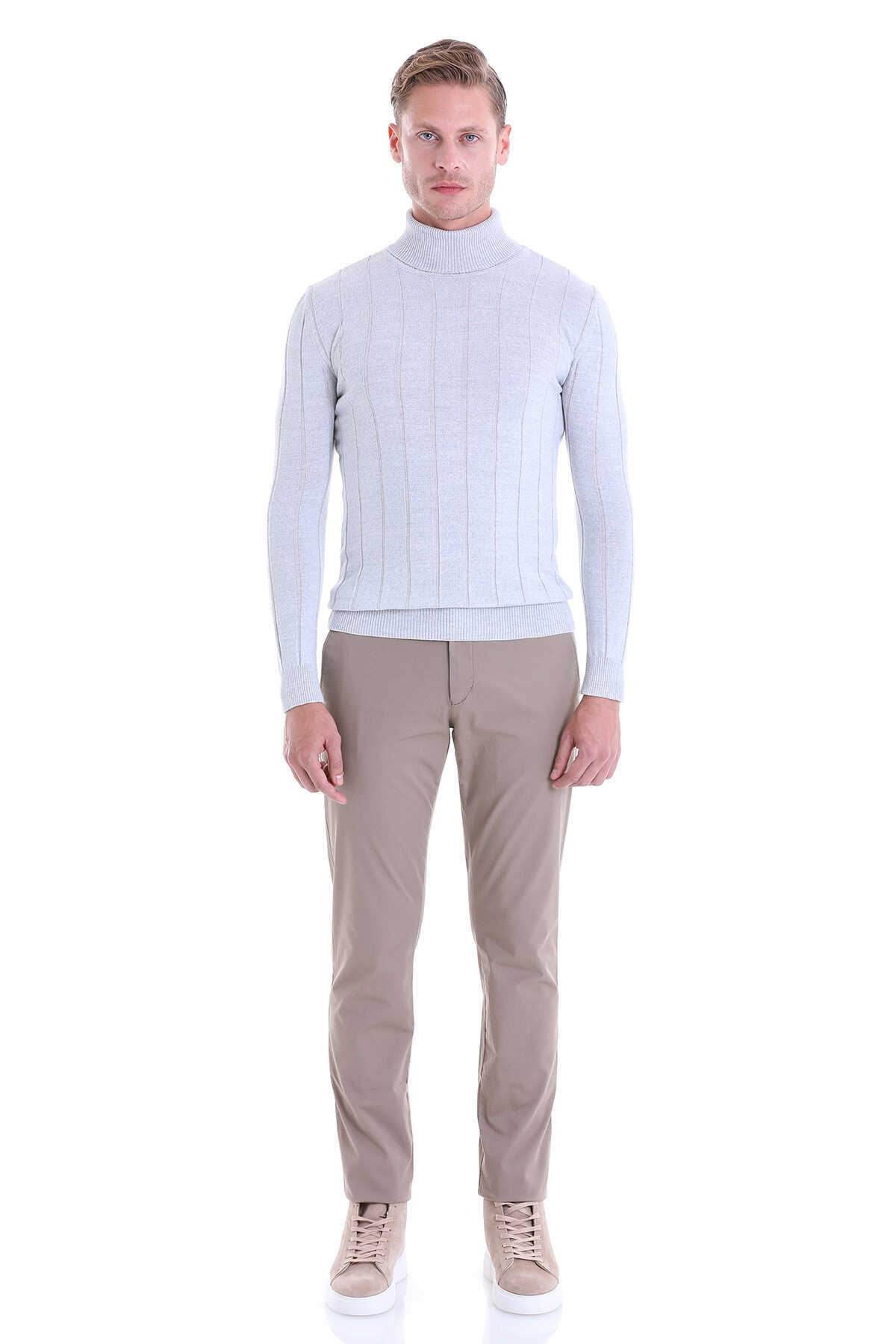 Gri Comfort Fit Fitilli Balıkçı Yaka Yünlü Kazak
