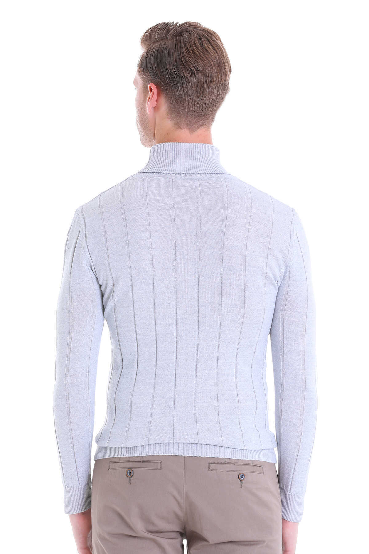 Gri Comfort Fit Fitilli Balıkçı Yaka Yünlü Kazak - 6