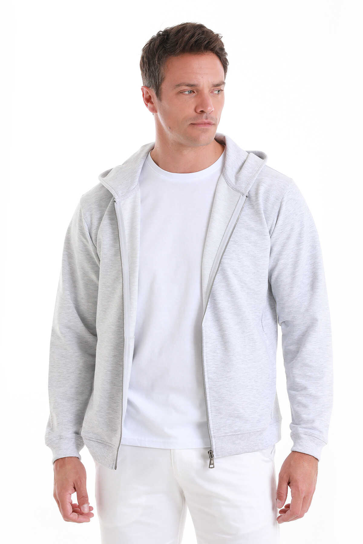 Gri Regular Fit Pamuklu Fermuarlı Sweatshirt - 7