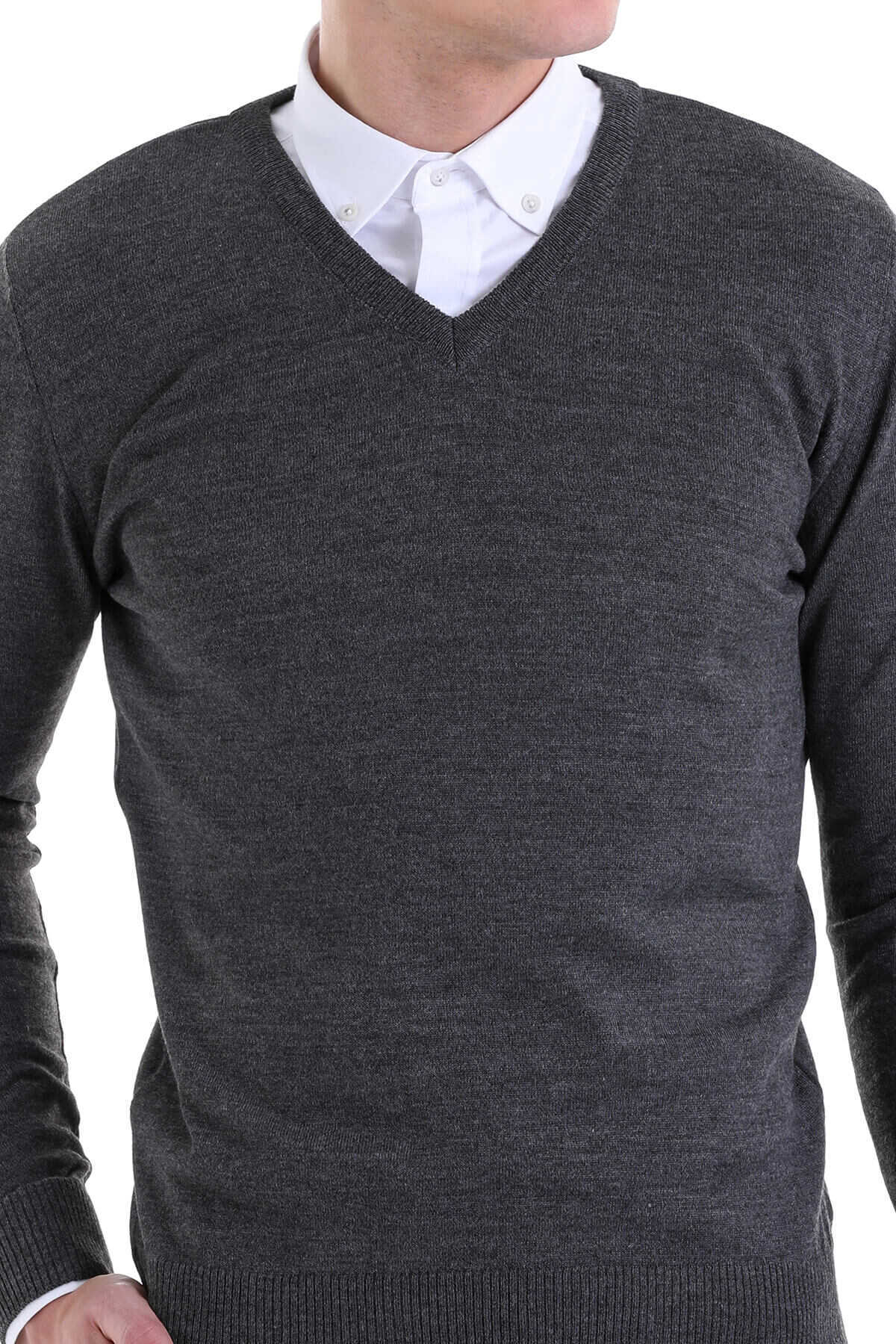 Gri Comfort Fit V Yaka Yünlü Kazak