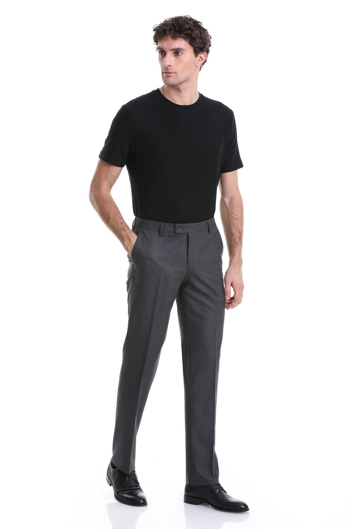 Gri Regular Fit Yandan Cepli Flanel Kumaş Pantolon