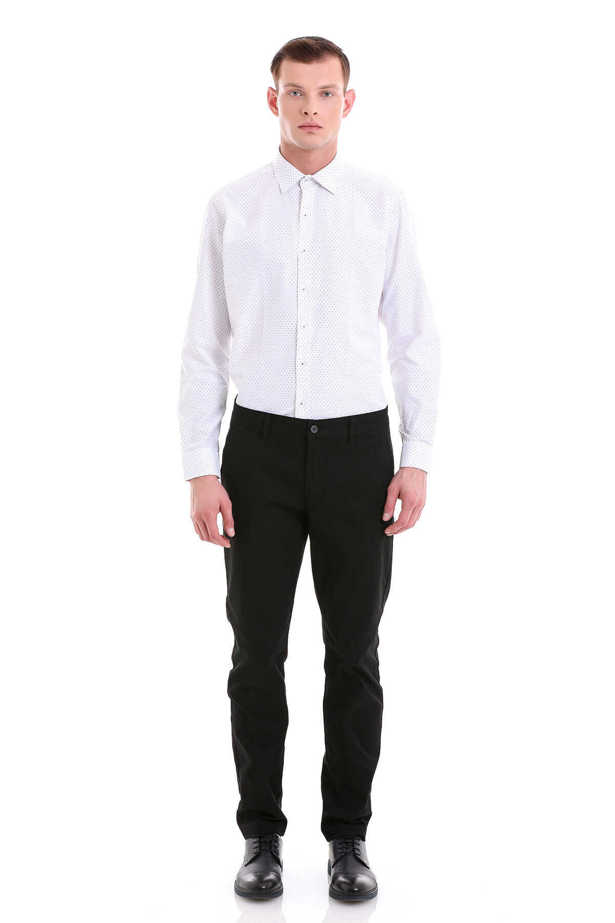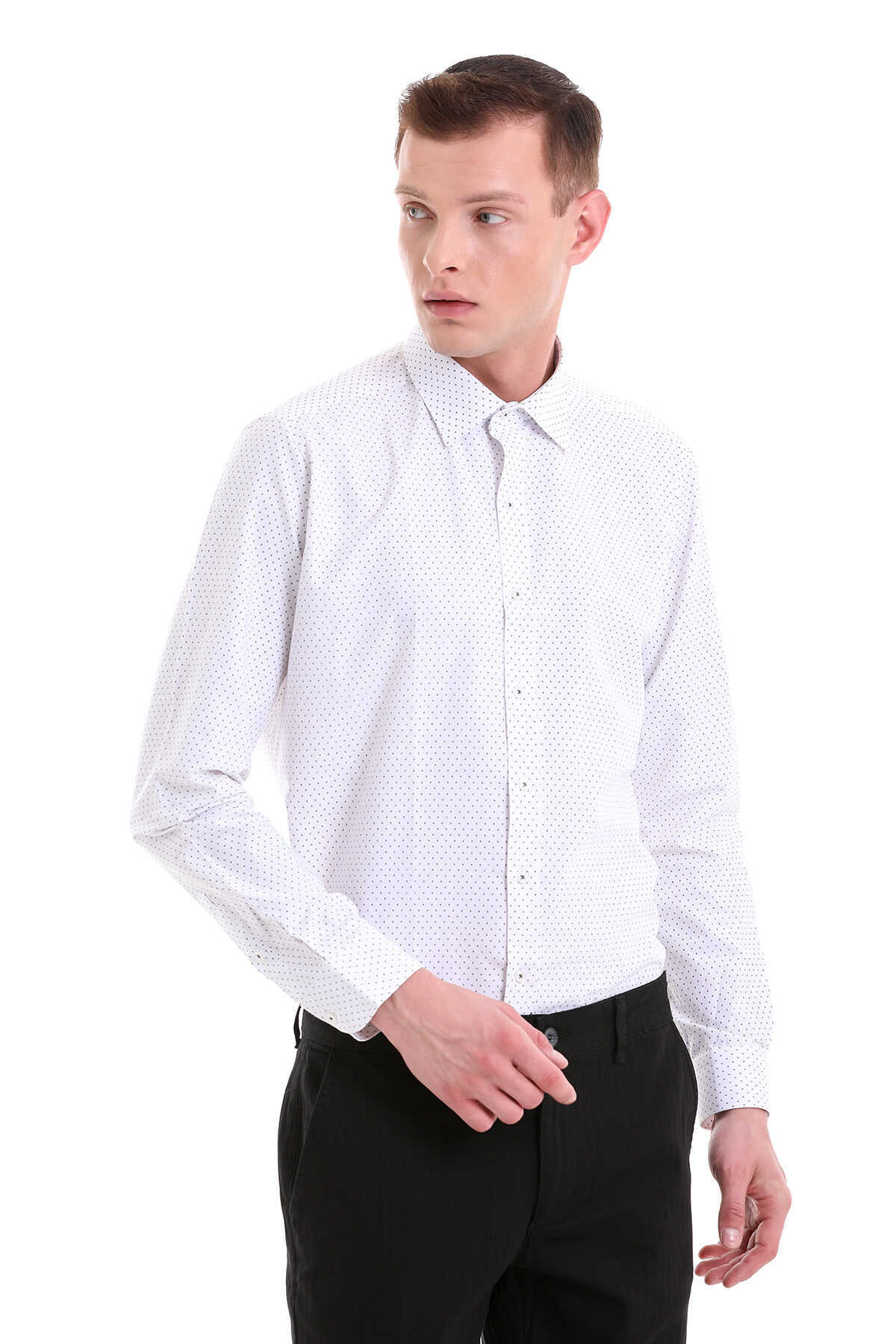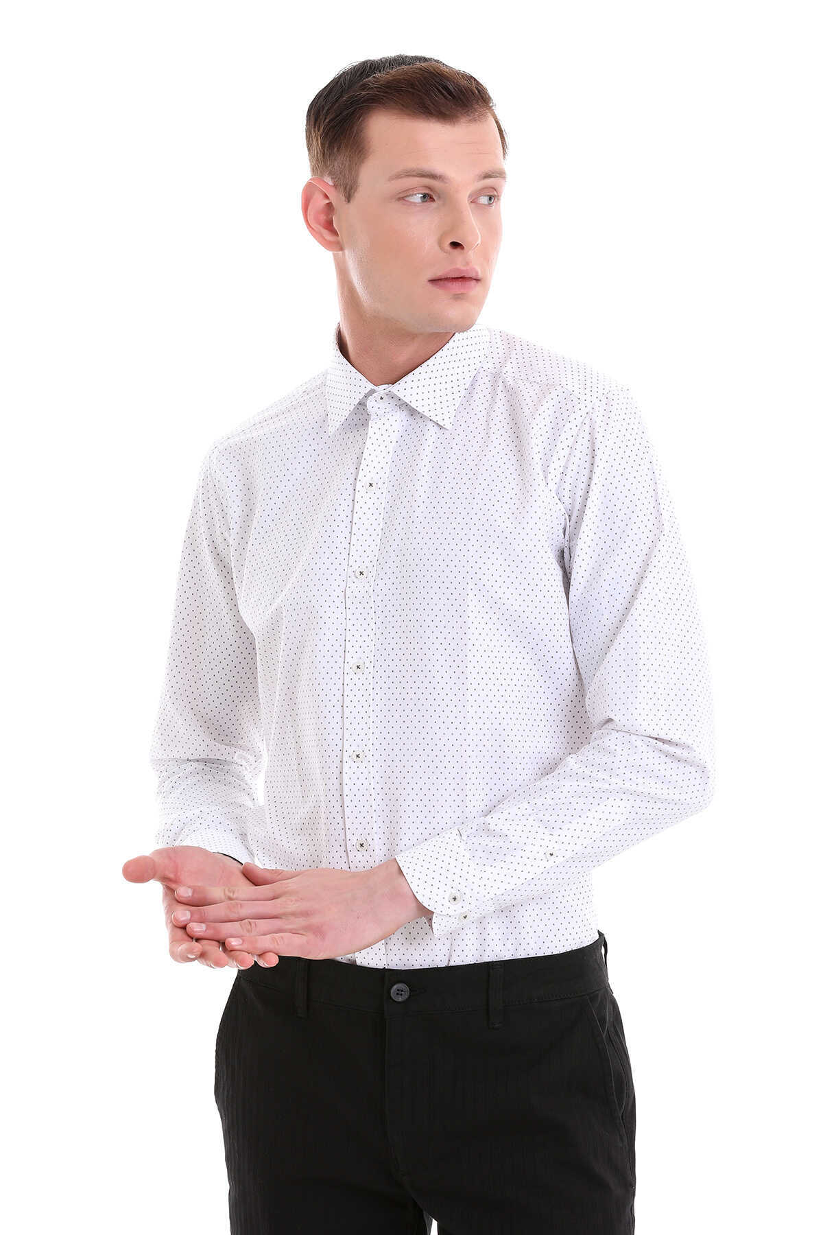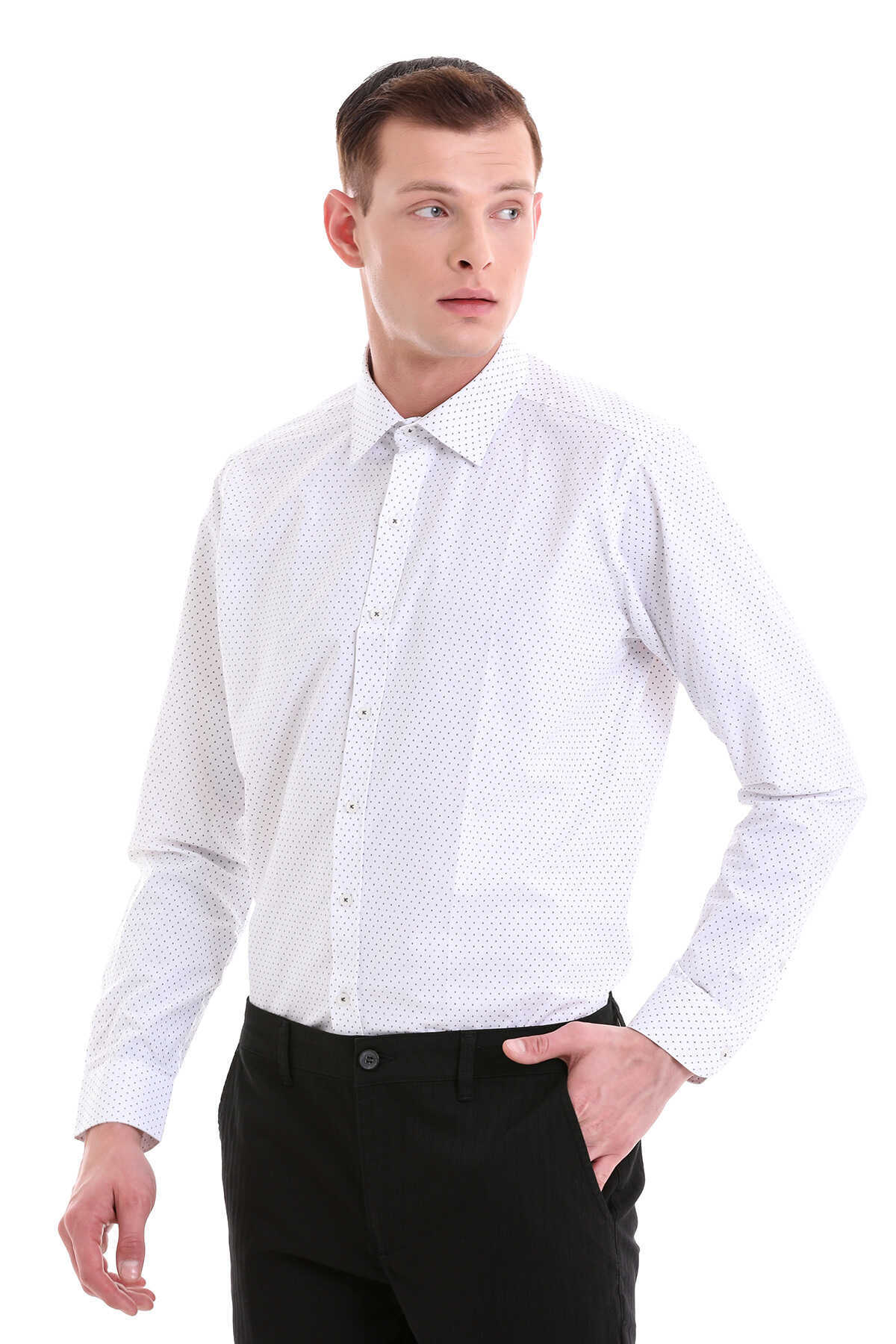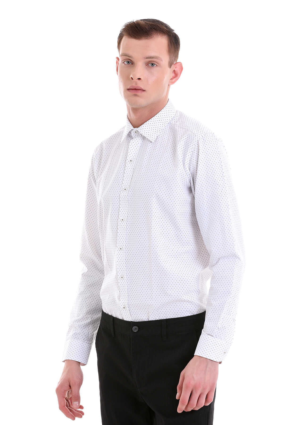 Gri Slim Fit Baskılı Pamuklu Slim Yaka Uzun Kollu Klasik Gömlek