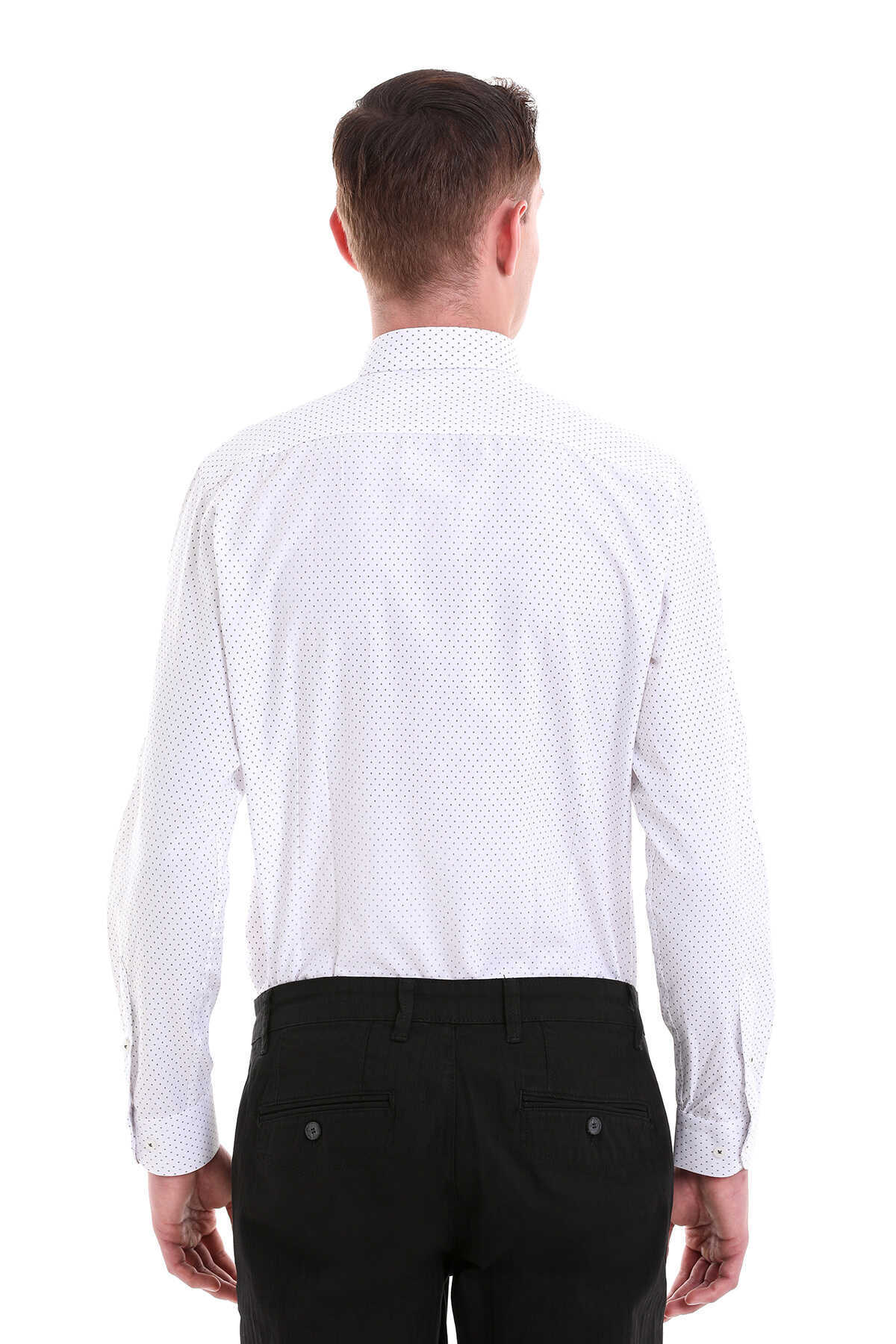 Gri Slim Fit Baskılı Pamuklu Slim Yaka Uzun Kollu Klasik Gömlek - 7