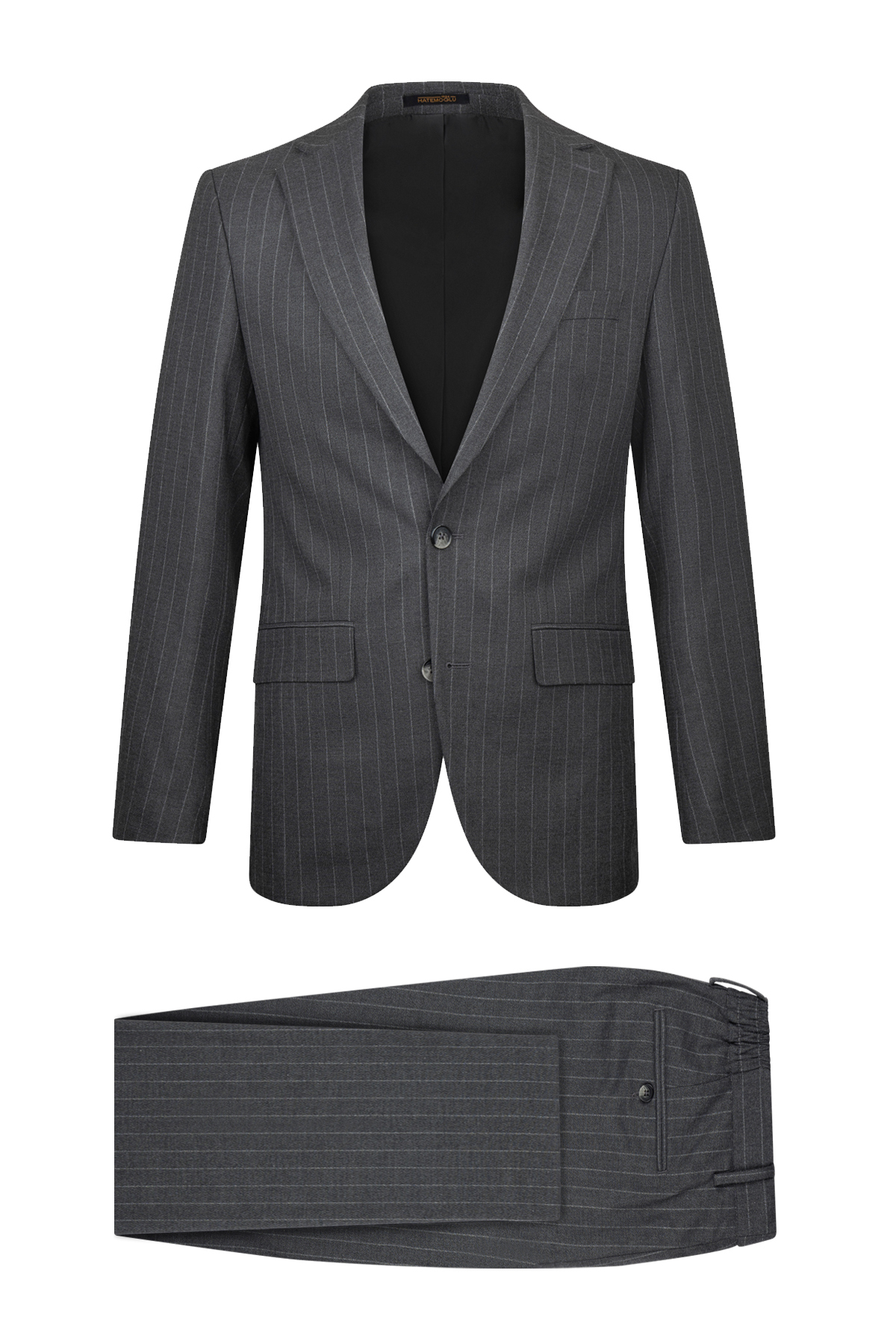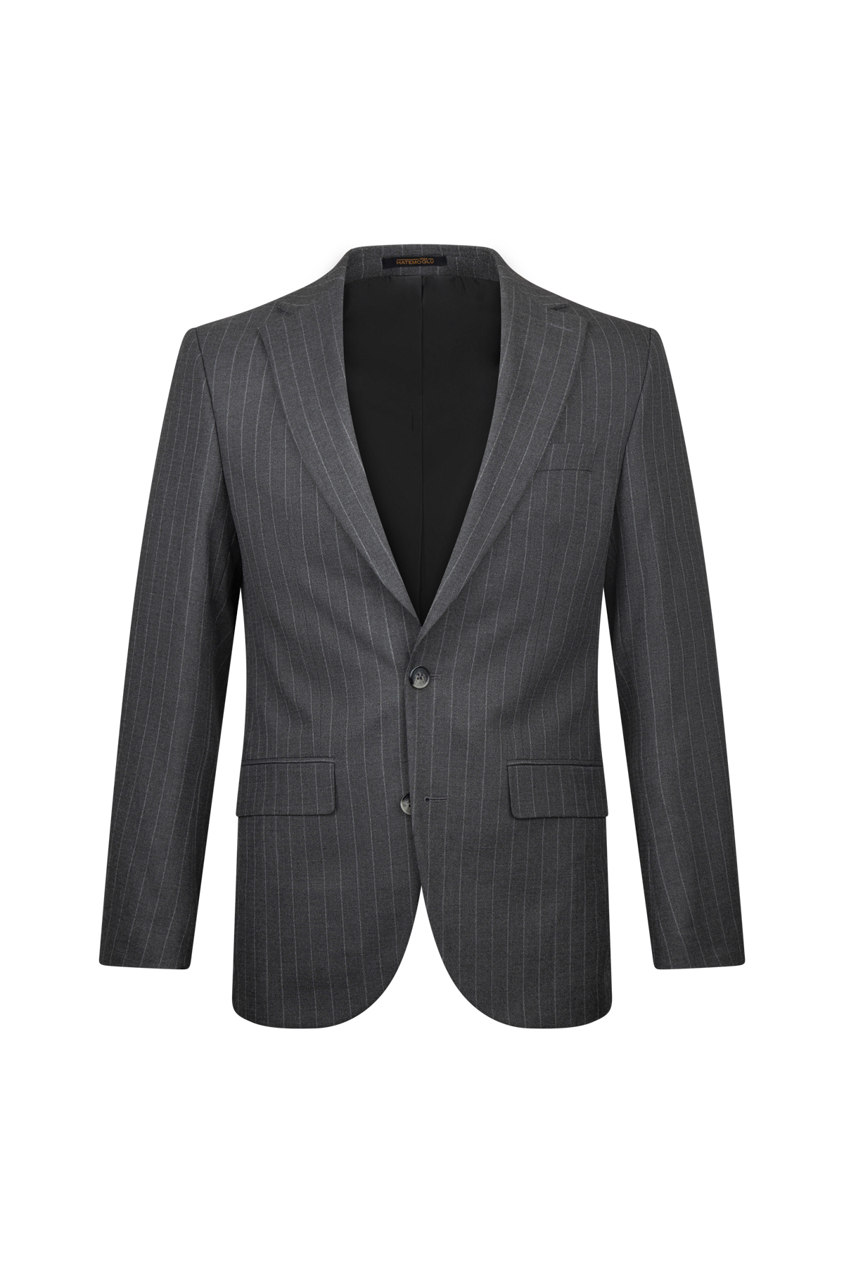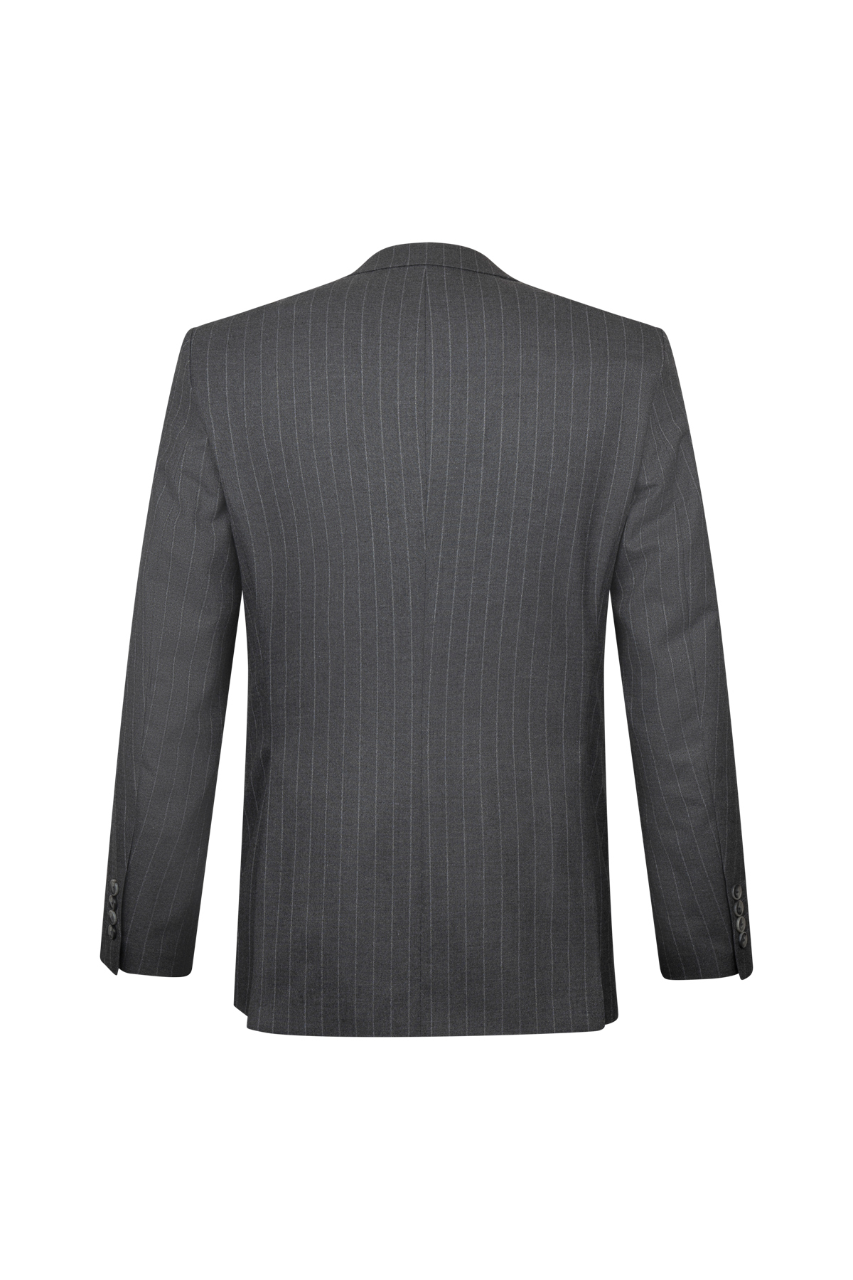 Gri Slim Fit Çizgili Mono Yaka Klasik Takım Elbise