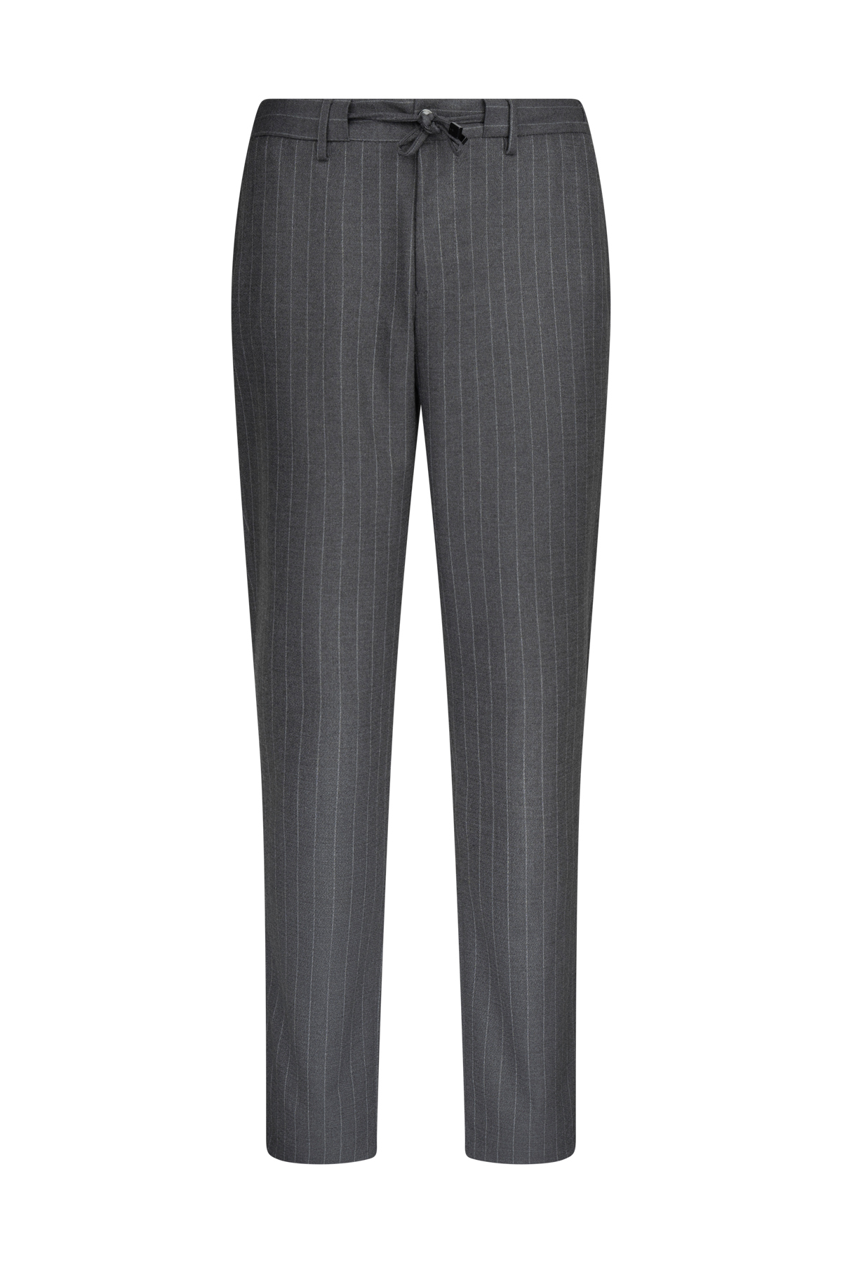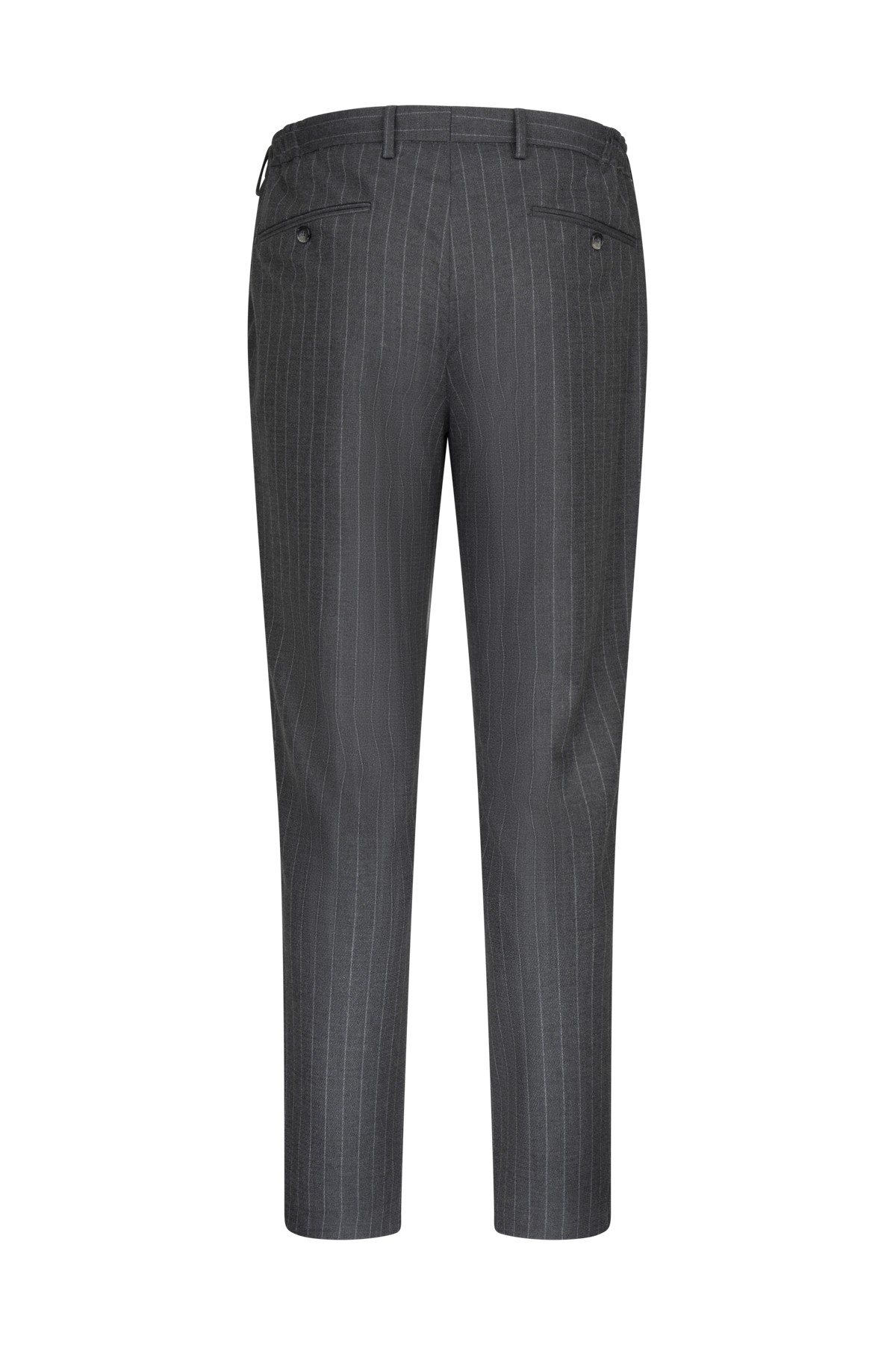 Gri Slim Fit Çizgili Mono Yaka Klasik Takım Elbise - 5