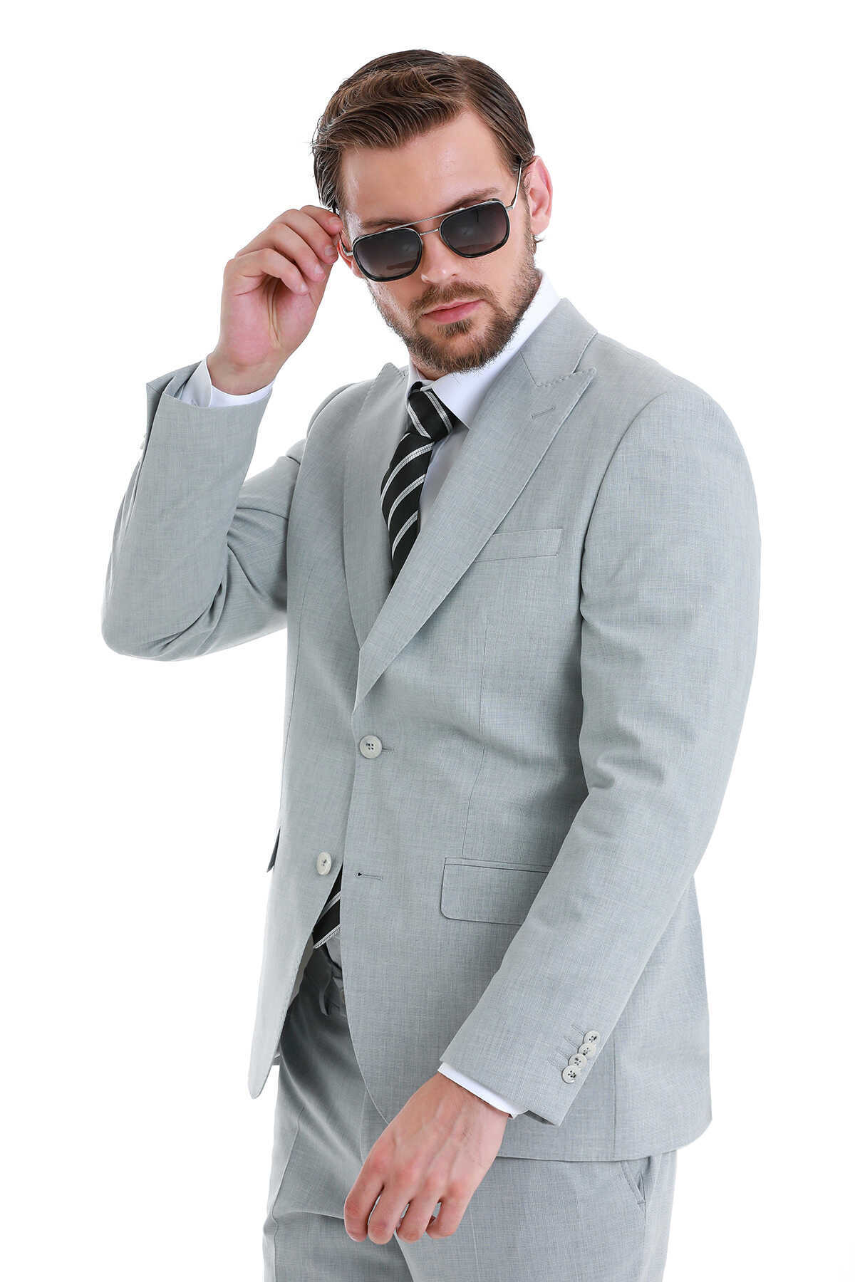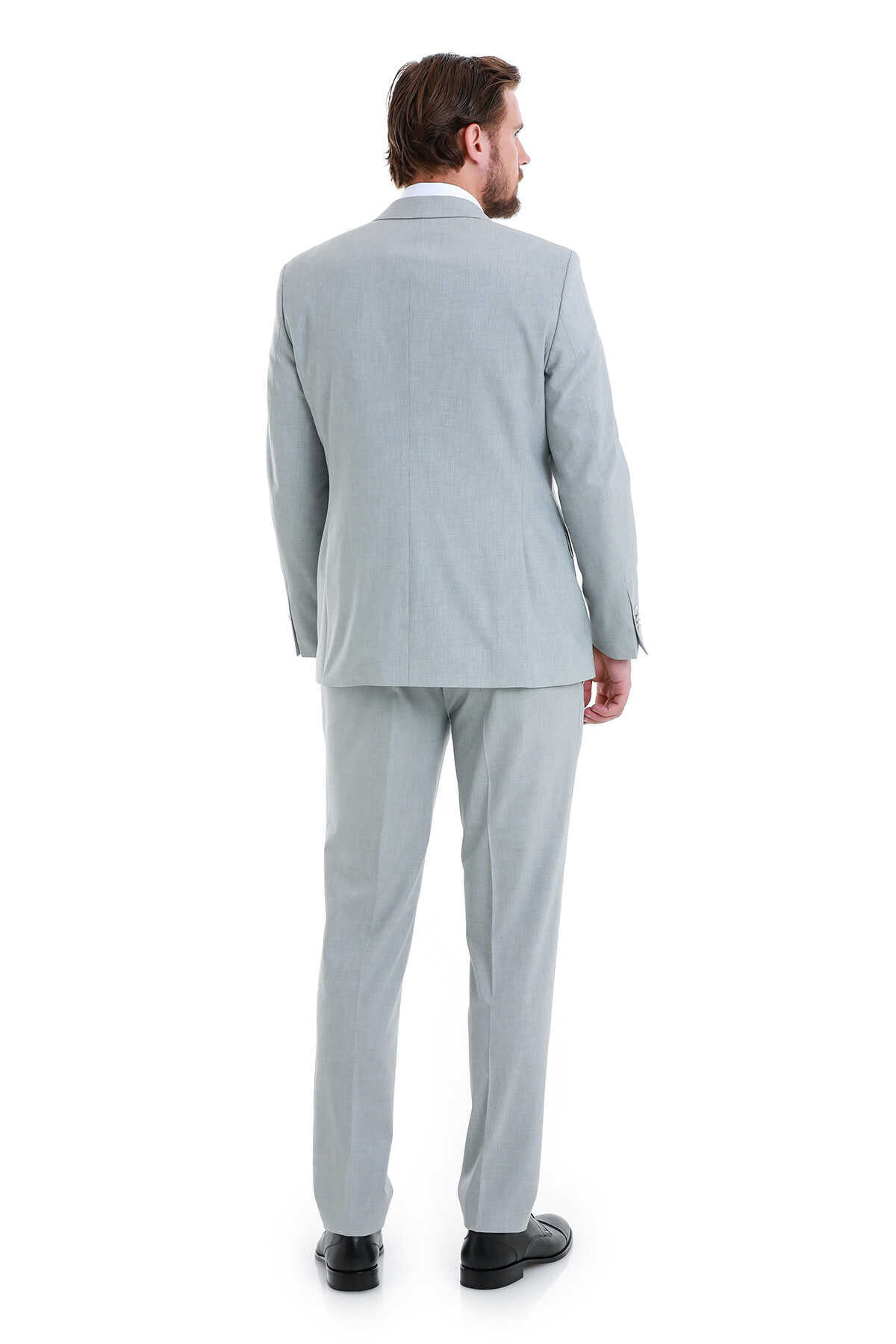 • Gri Slim Fit Çizgili Sivri Yaka Klasik Takım Elbise, modern çizgilerle klasik tasarımı birleştiren zarif bir parçadır. İnce çizgili dokusu gri tonuyla dengelenerek hem iş hem özel etkinliklerde tercih edilebilir bir şıklık sunar. Slim Fit kalıp vücuda oturur; sivri yaka detayı klasik duruşu vurgular.