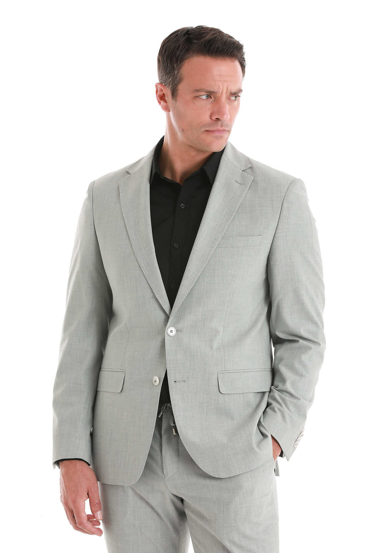Gri Slim Fit Mono Yaka Klasik Takım Elbise
