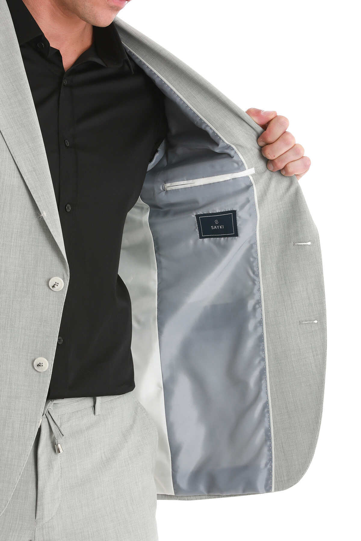 Gri Slim Fit Mono Yaka Klasik Takım Elbise - 7