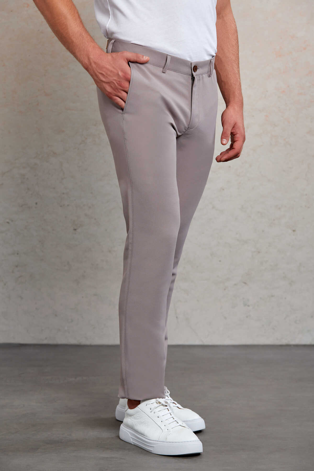 Gri Slim Fit Desenli Yandan Cep Kanvas Pantolon