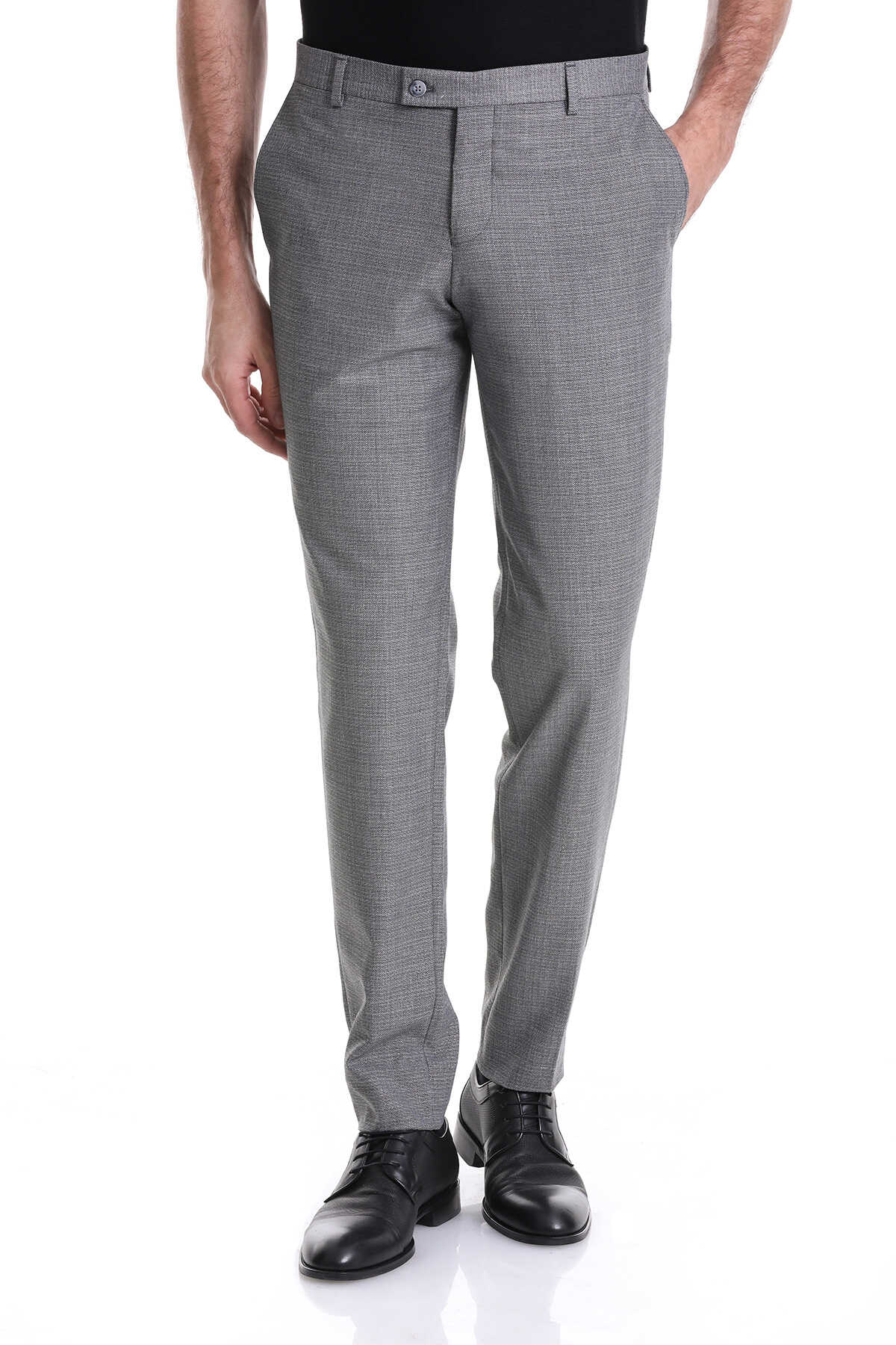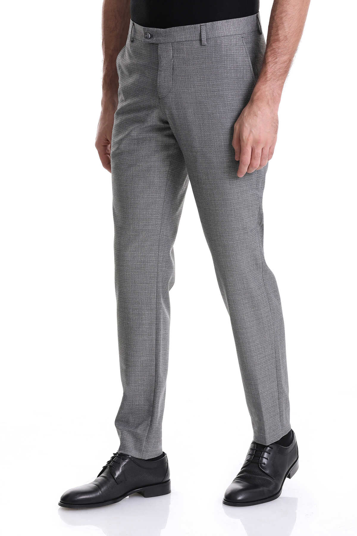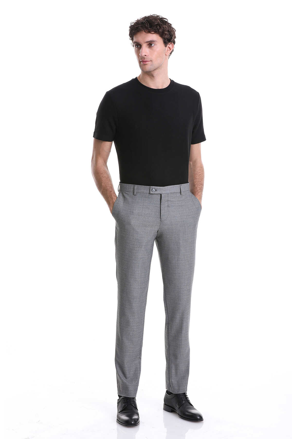 Gri Slim Fit Desenli Yandan Cepli Casual Kumaş Pantolon