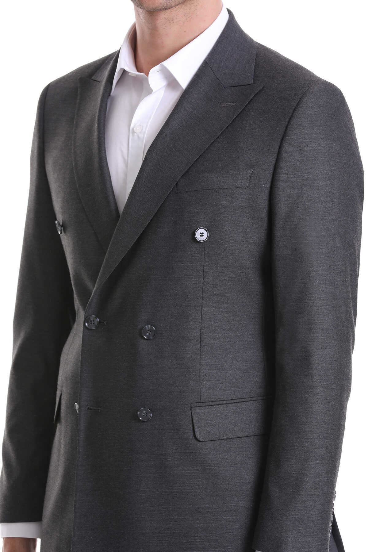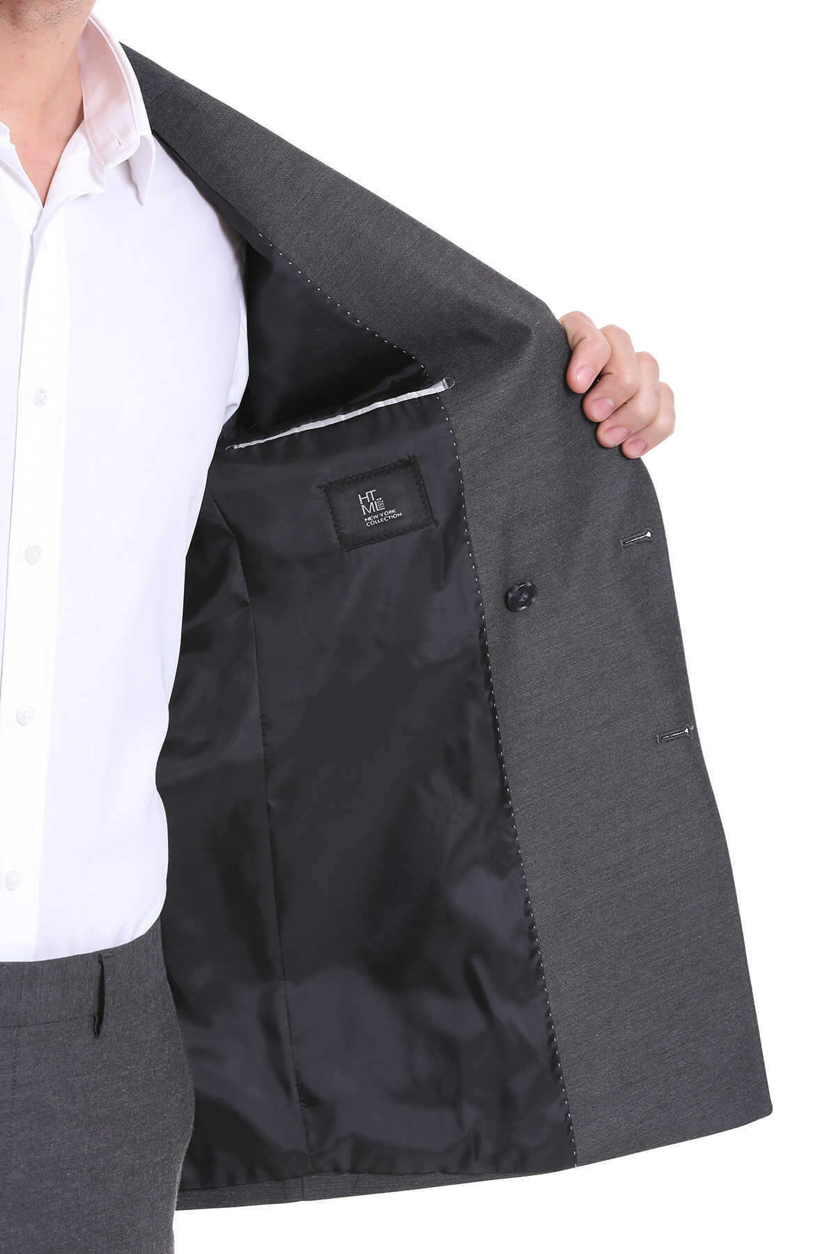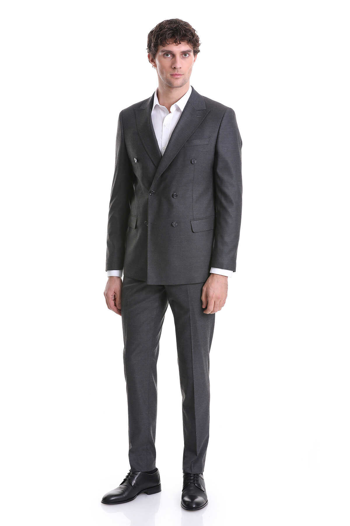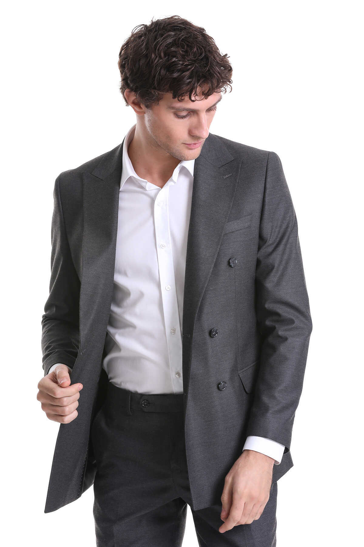 Gri Slim Fit Kruvaze Klasik Takım Elbise
