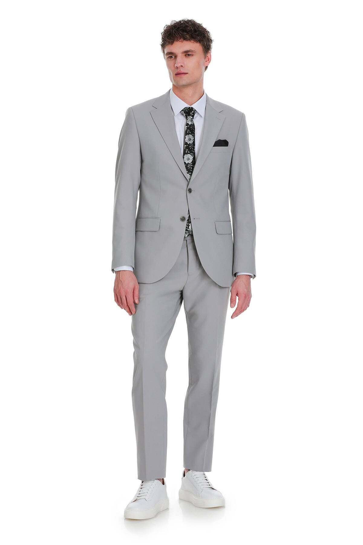 Gri Slim Fit Mono Yaka Klasik Takım Elbise