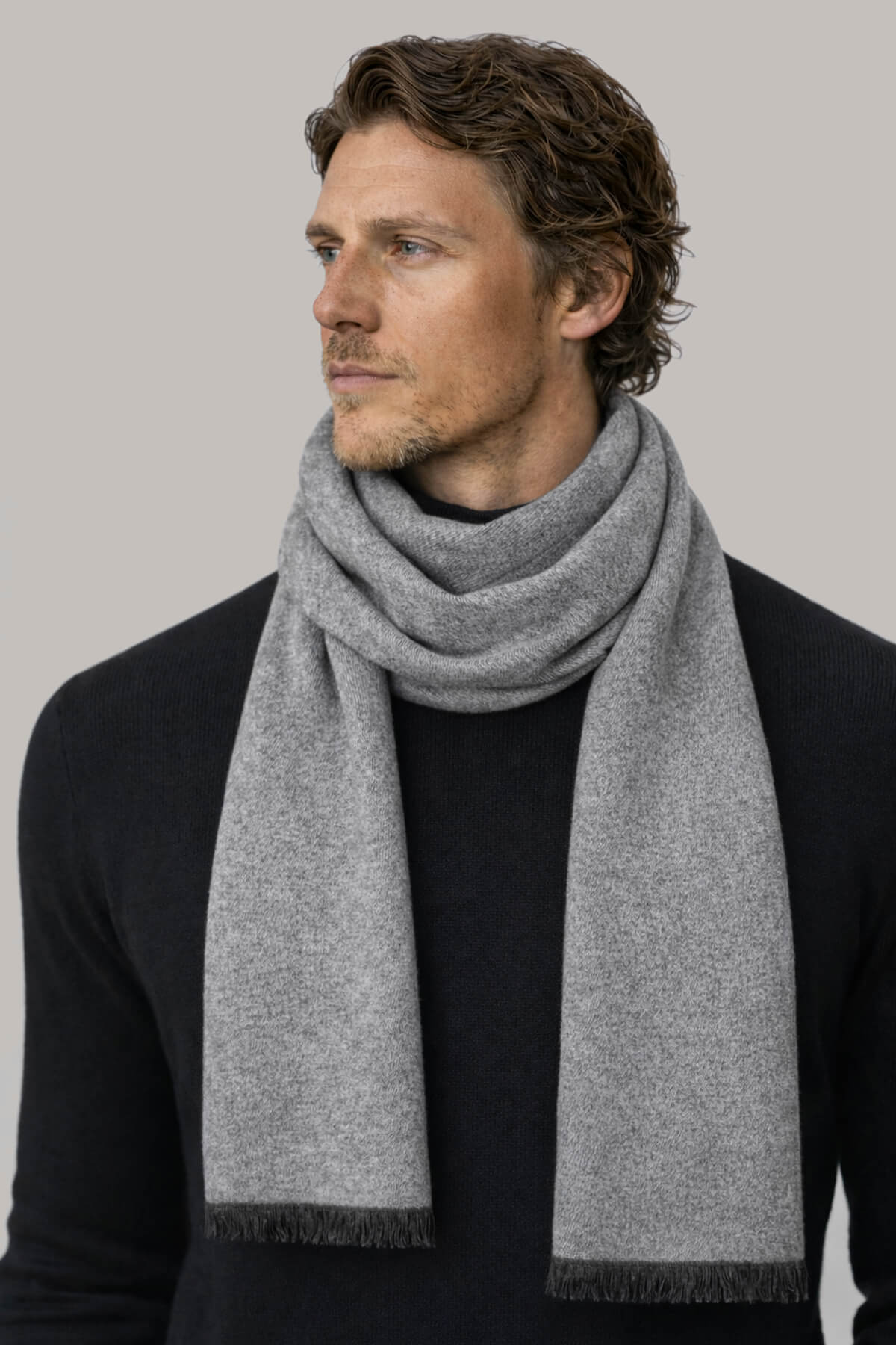 Gri - Vizon Çift Taraflı Atkı