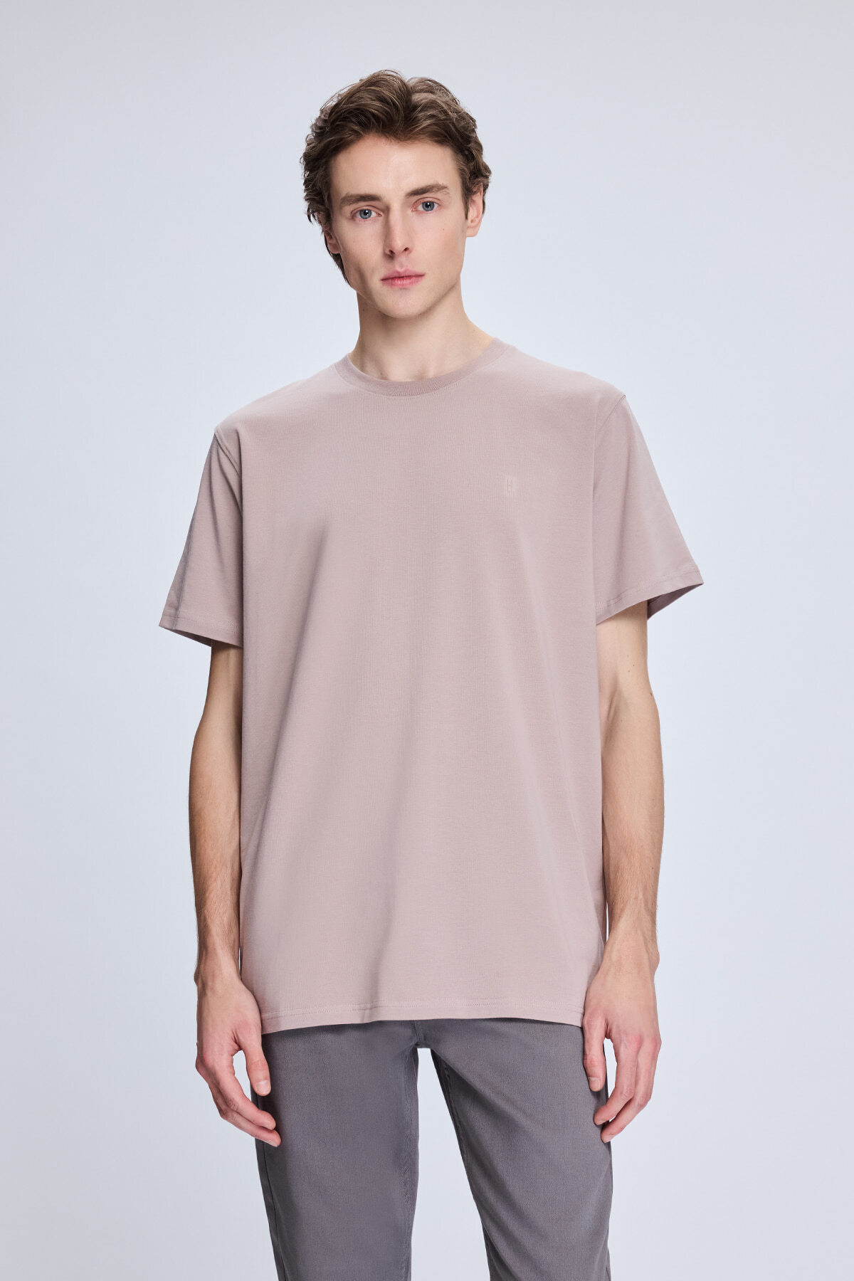 Pembe Regular Fit Bisiklet Yaka Pamuklu Tişört