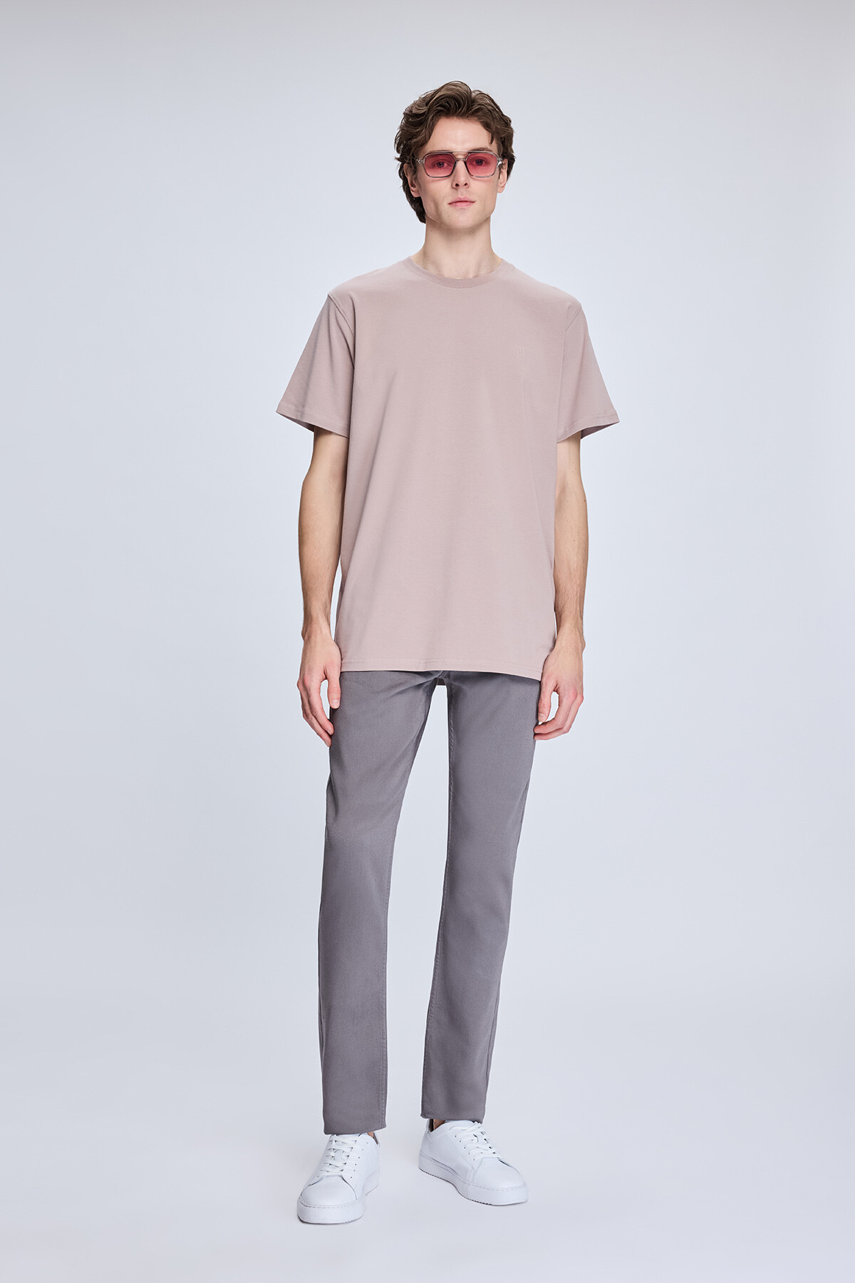 Pembe Regular Fit Bisiklet Yaka Pamuklu Tişört - 5