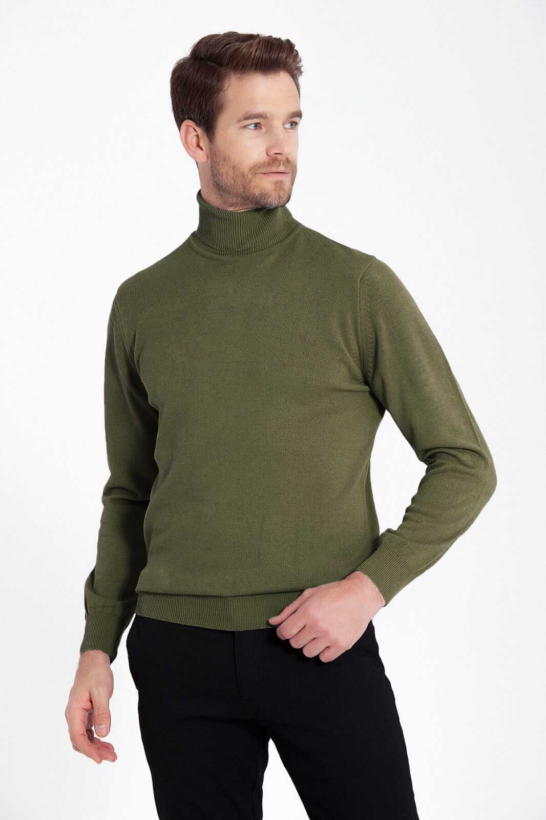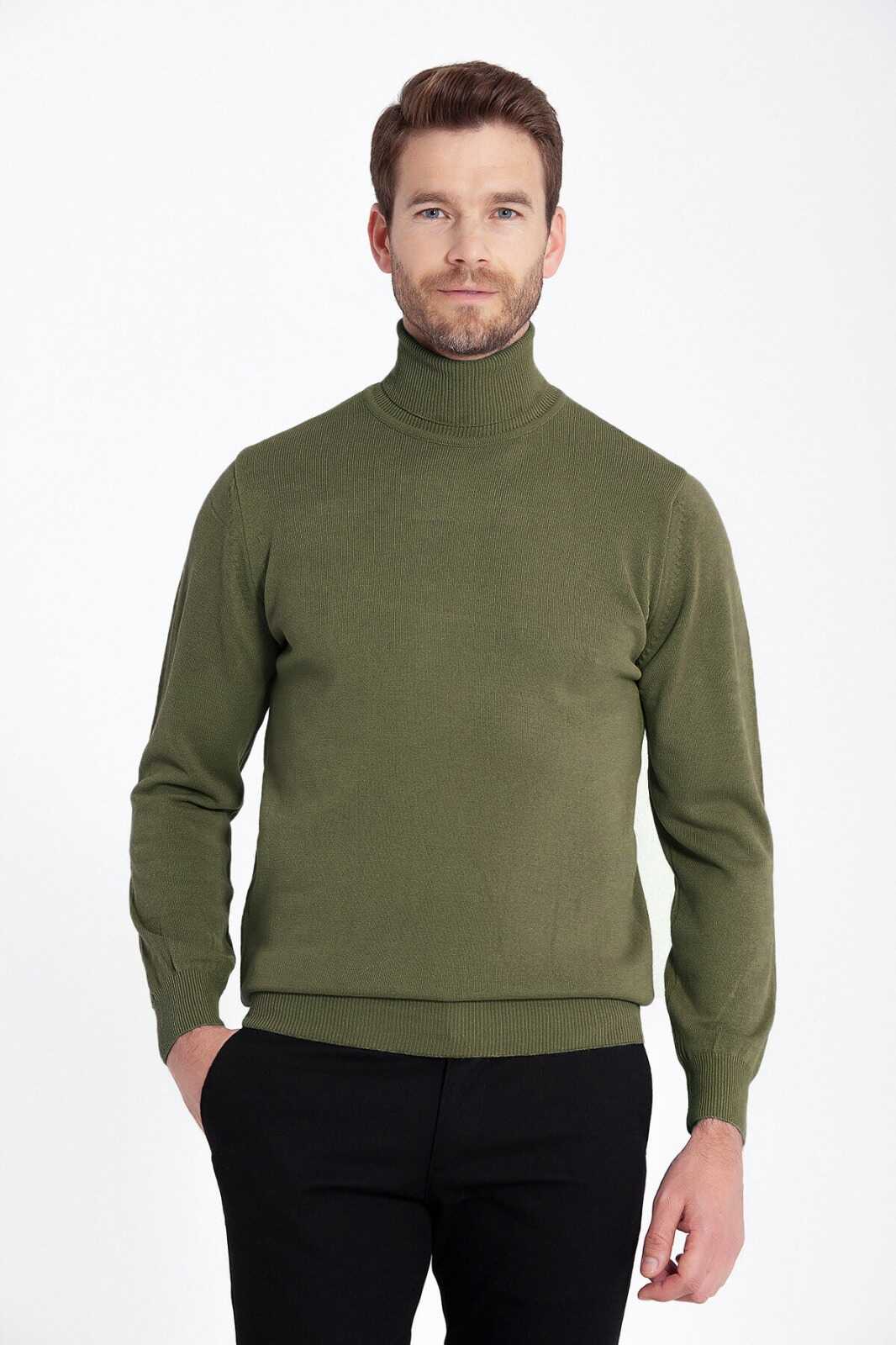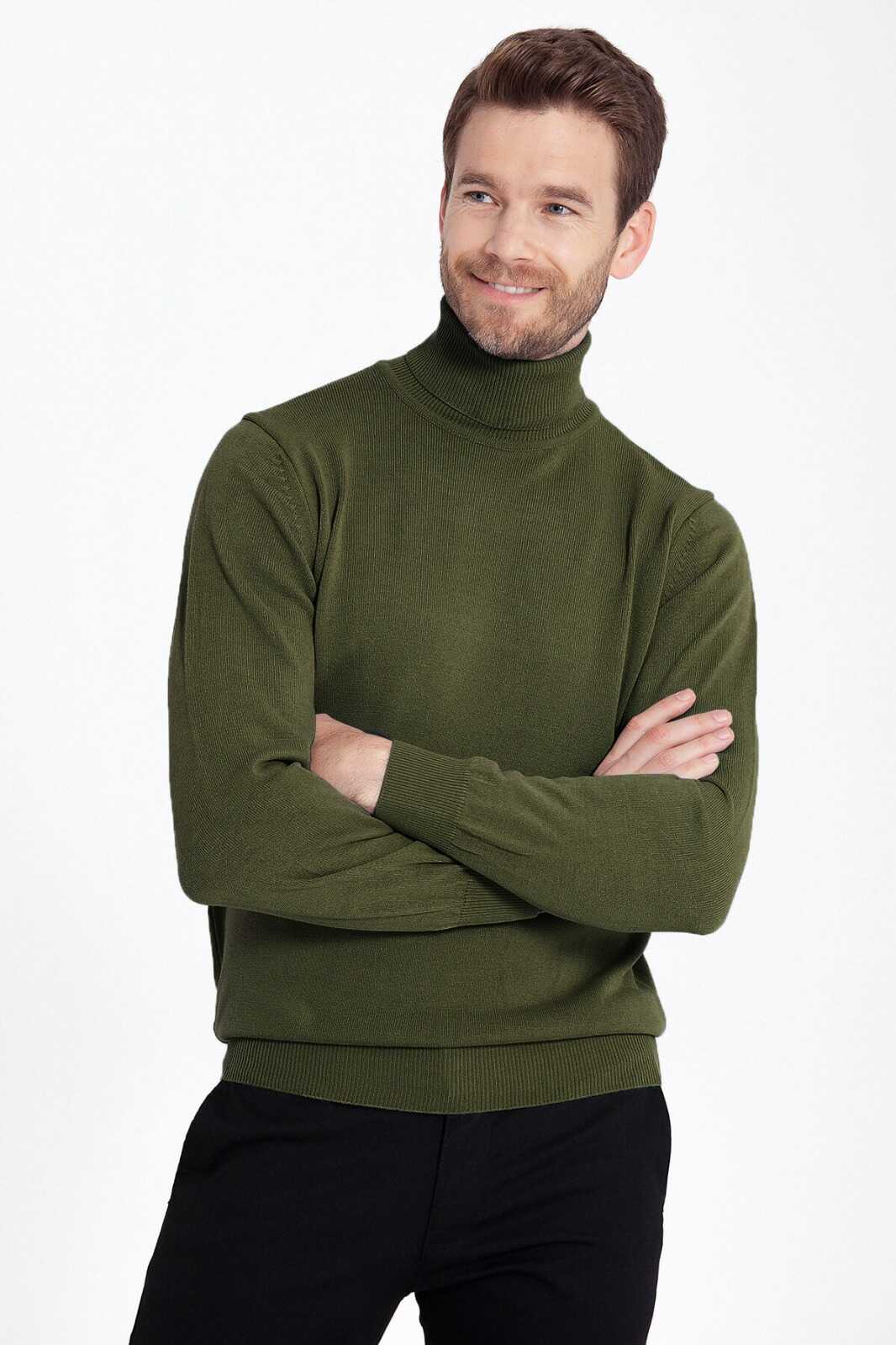 Yeşil Regular Fit Düz Balıkçı Yaka Triko Kazak