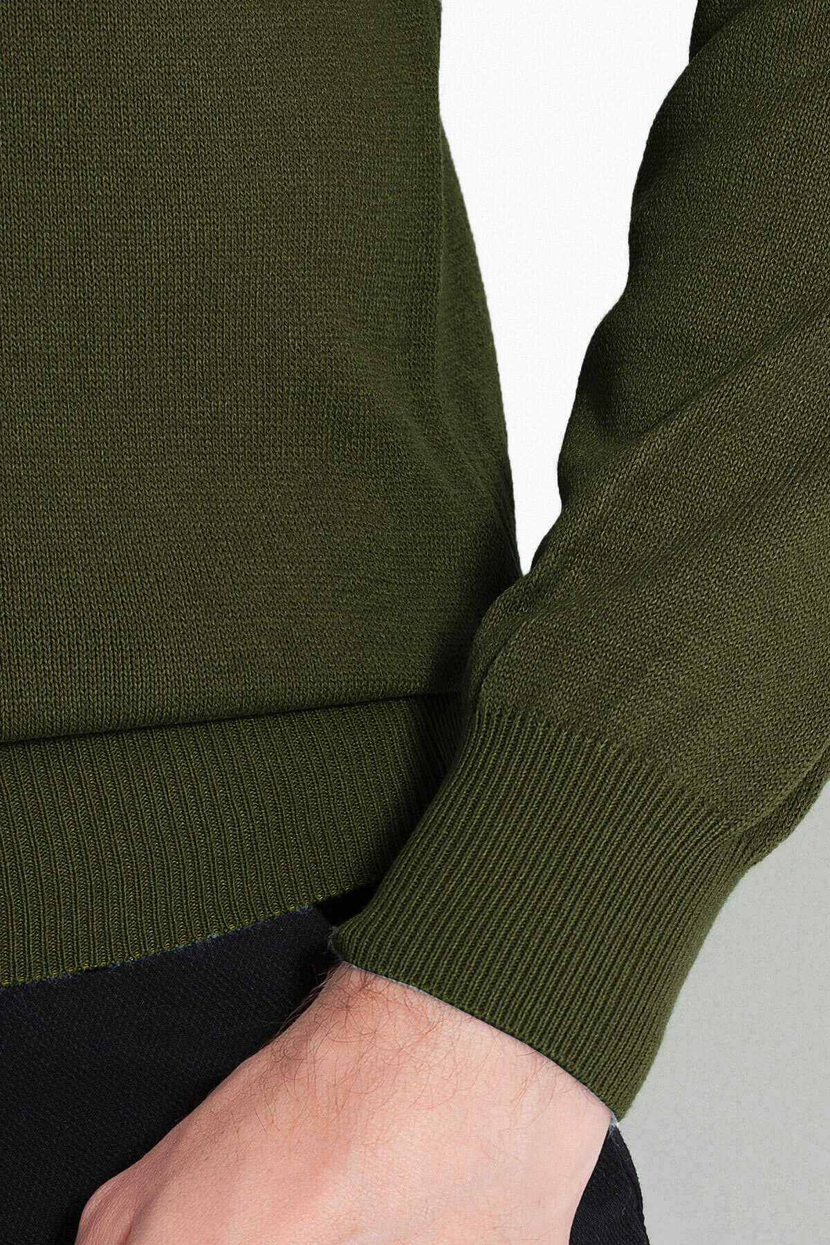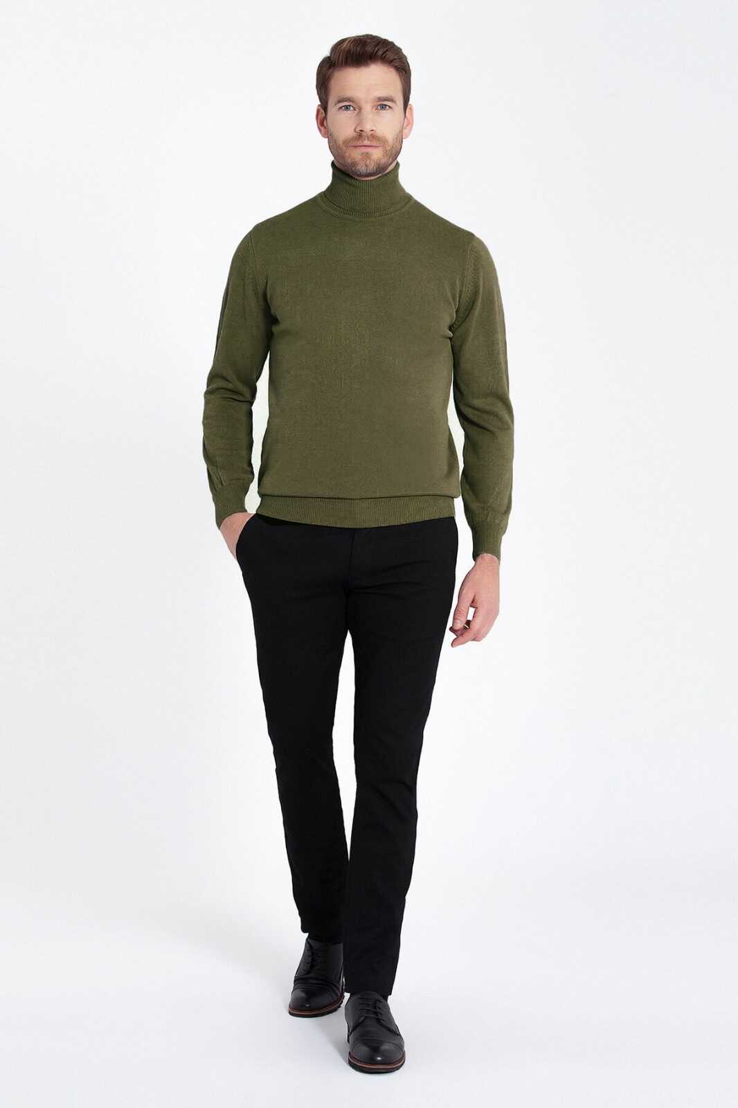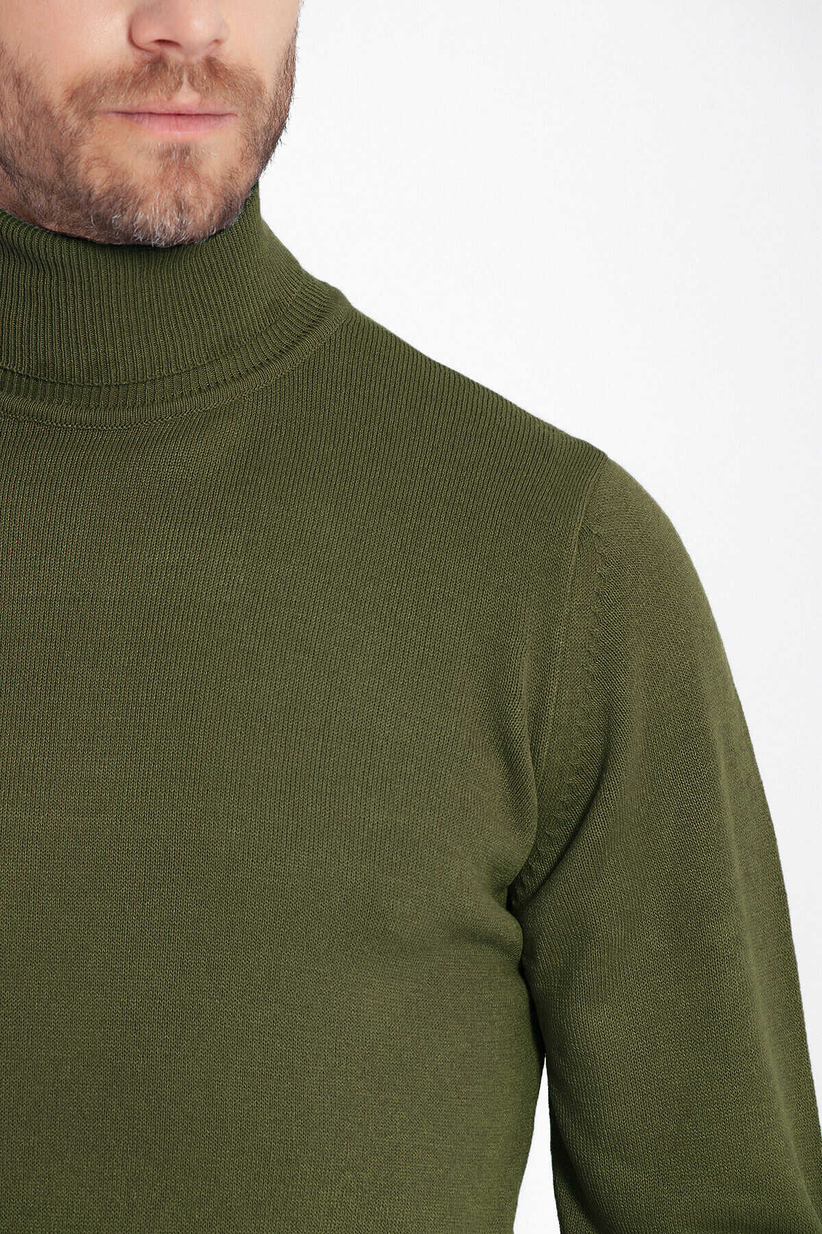 Yeşil Regular Fit Düz Balıkçı Yaka Triko Kazak