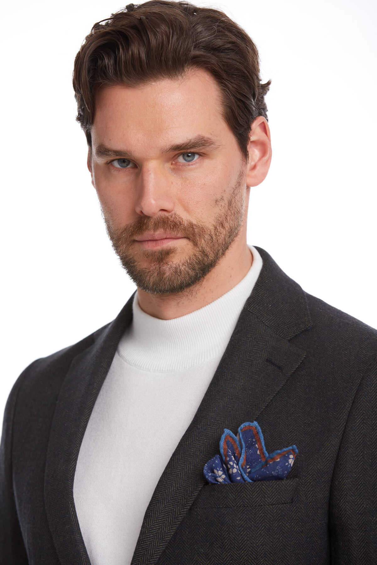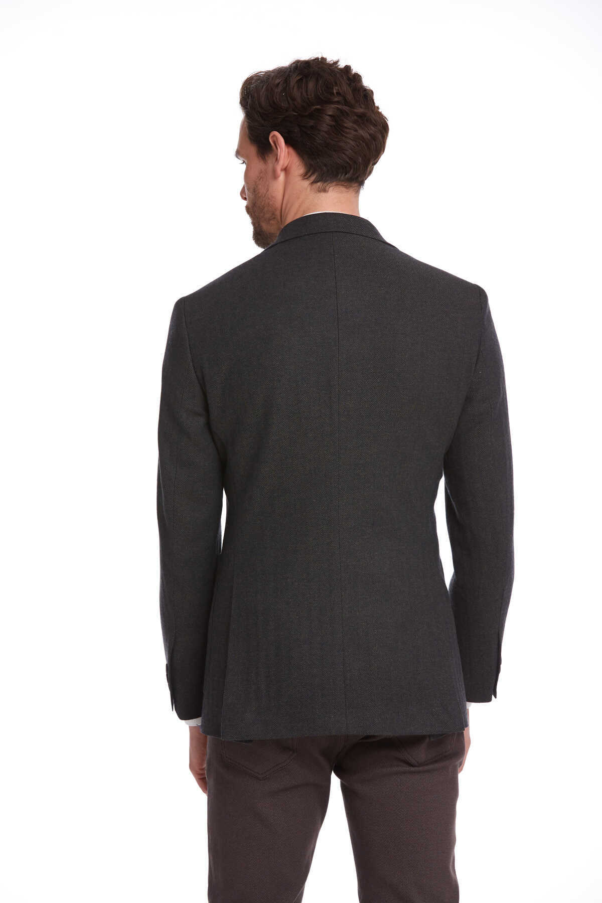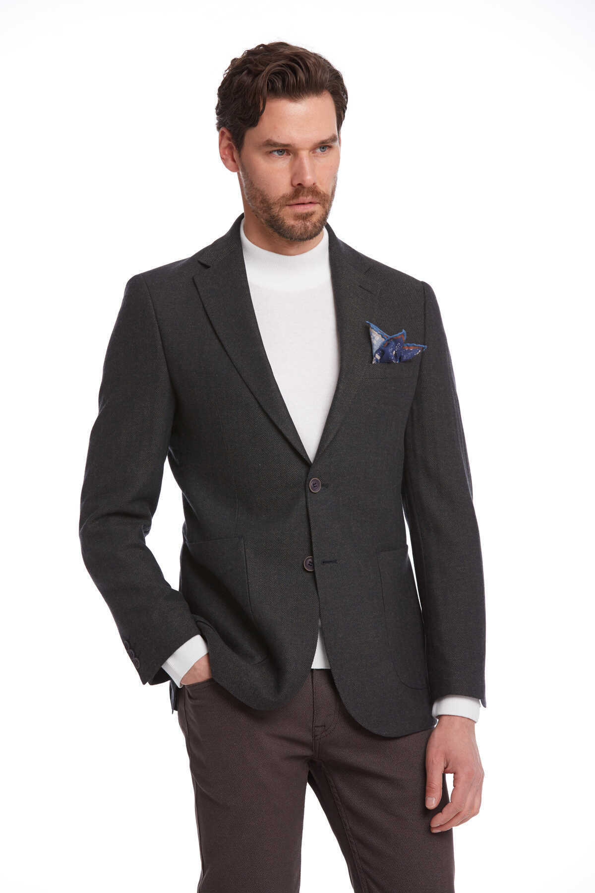 Haki Slim Fit Balıksırtı Desenli Mono Yaka Casual Yünlü Ceket