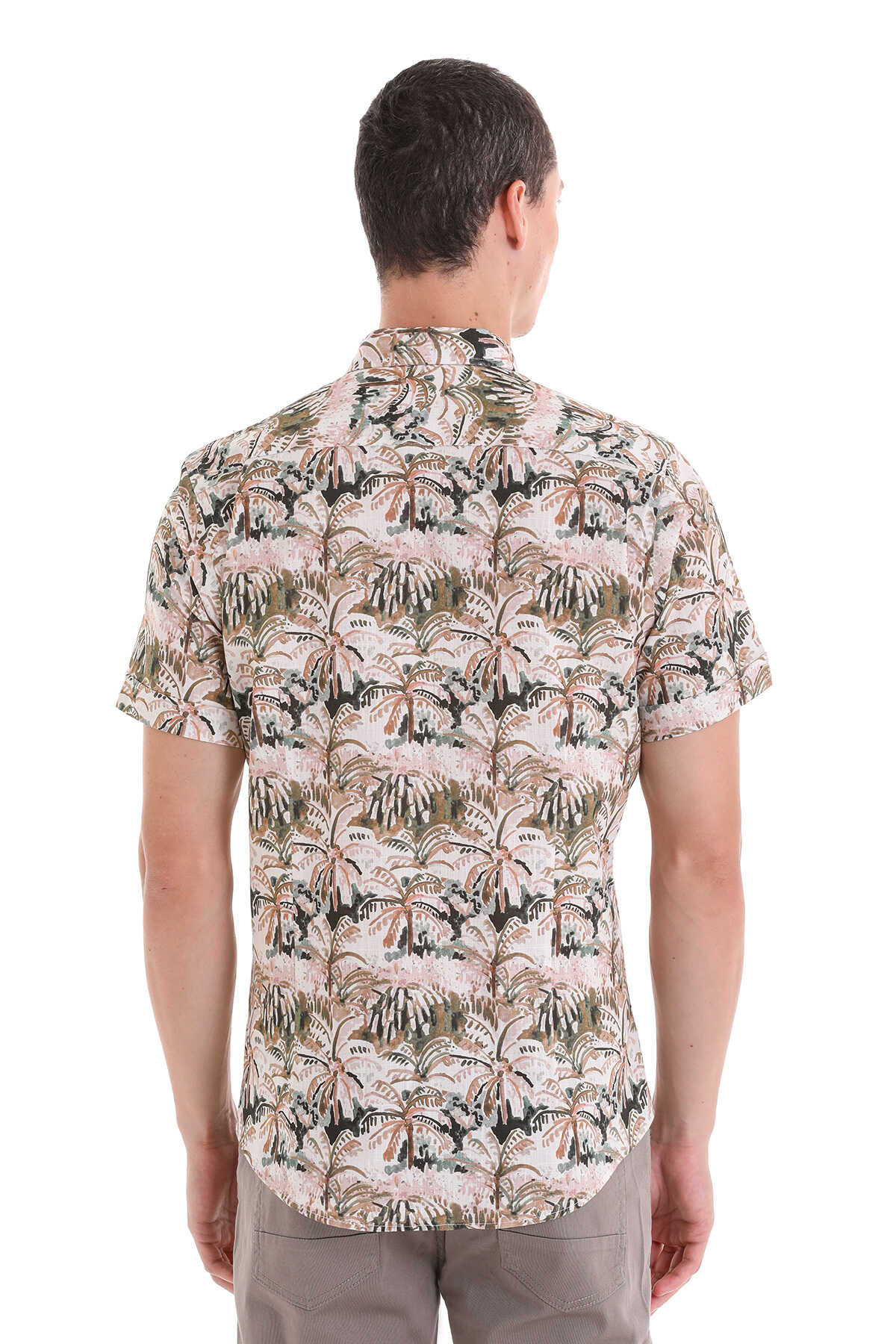 Haki Comfort Fit Baskılı Düğmeli Yaka 100% Pamuklu Kısa Kollu Casual Gömlek - 6