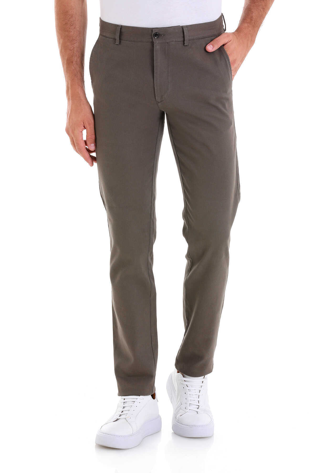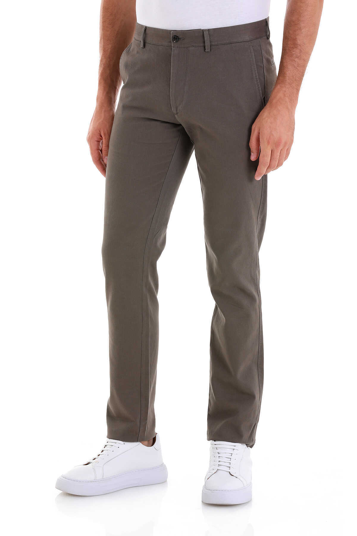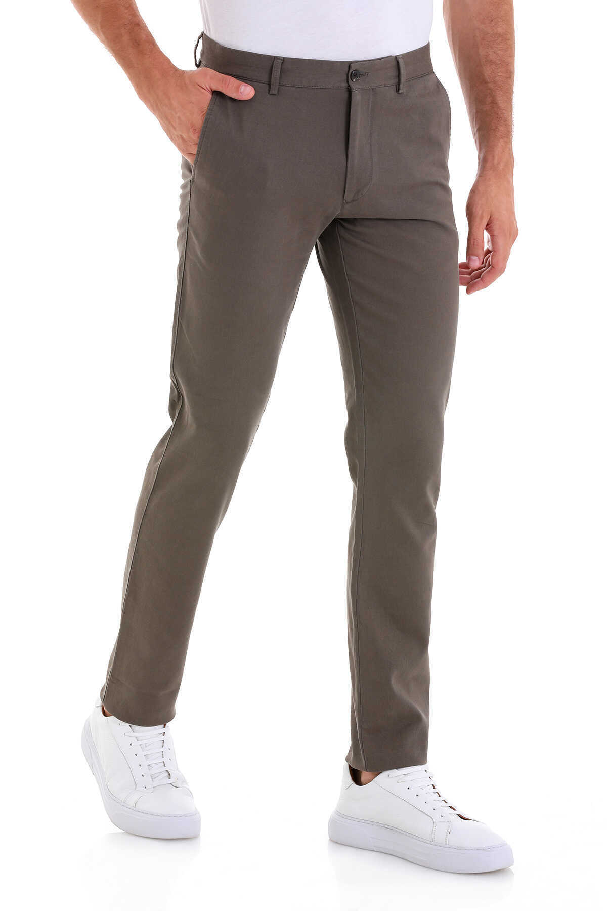 Haki Dinamik Fit Desenli Pamuklu Yandan Cep Kanvas Pantolon