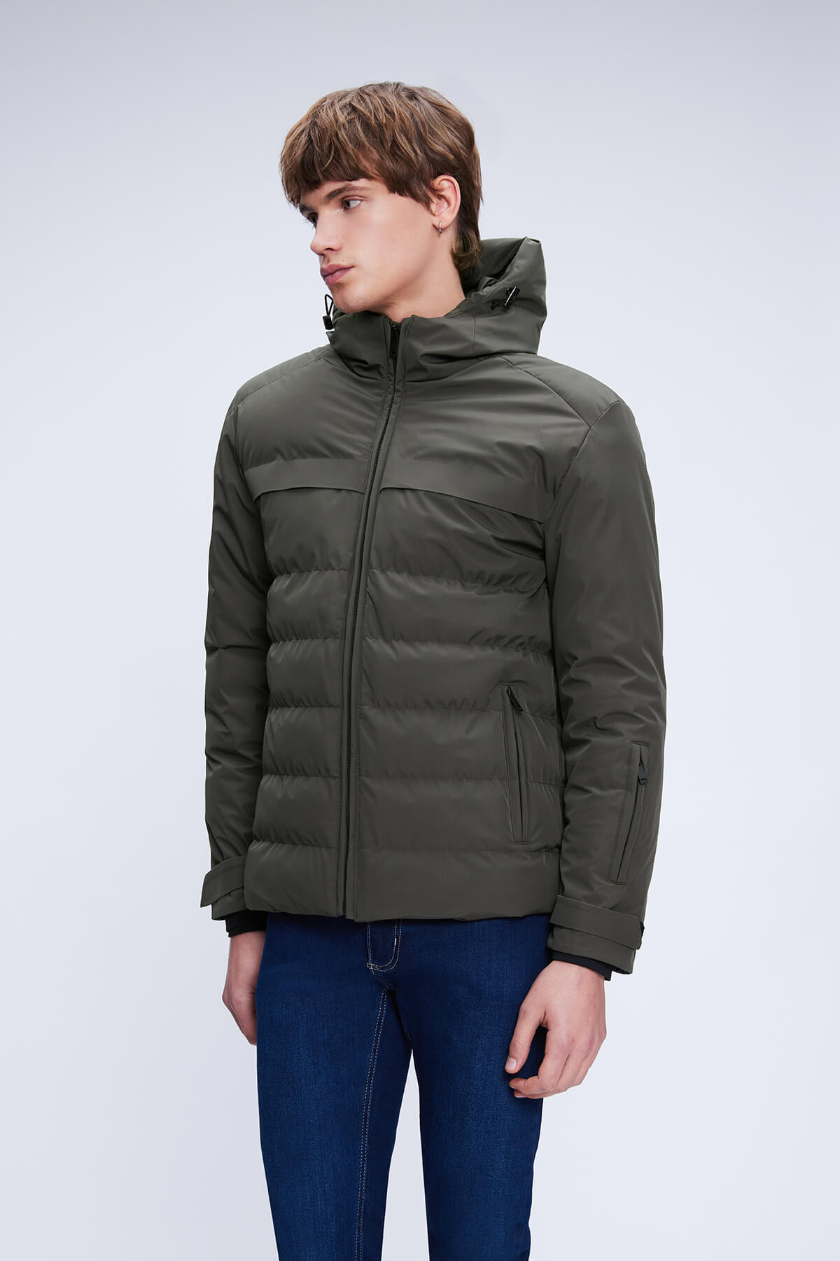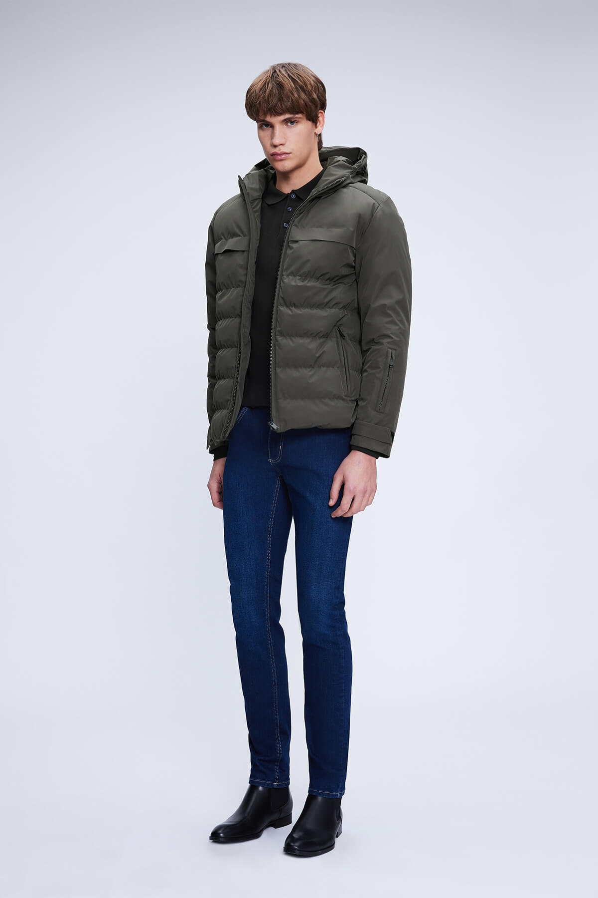 Haki Dinamik Fit Hakim Yaka Kapüşonlu Kaban