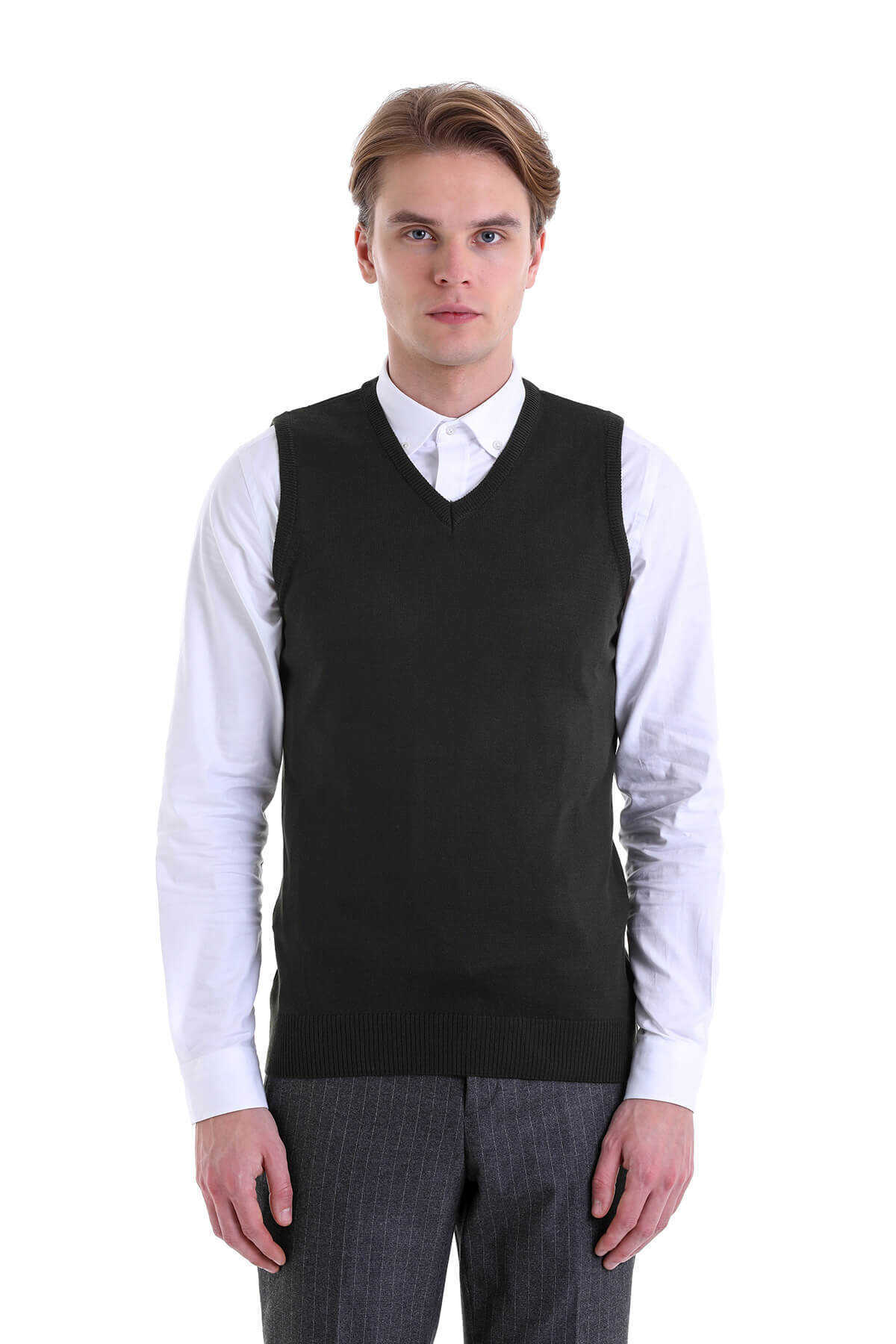 Haki Comfort Fit V Yaka Yünlü Triko Süveter