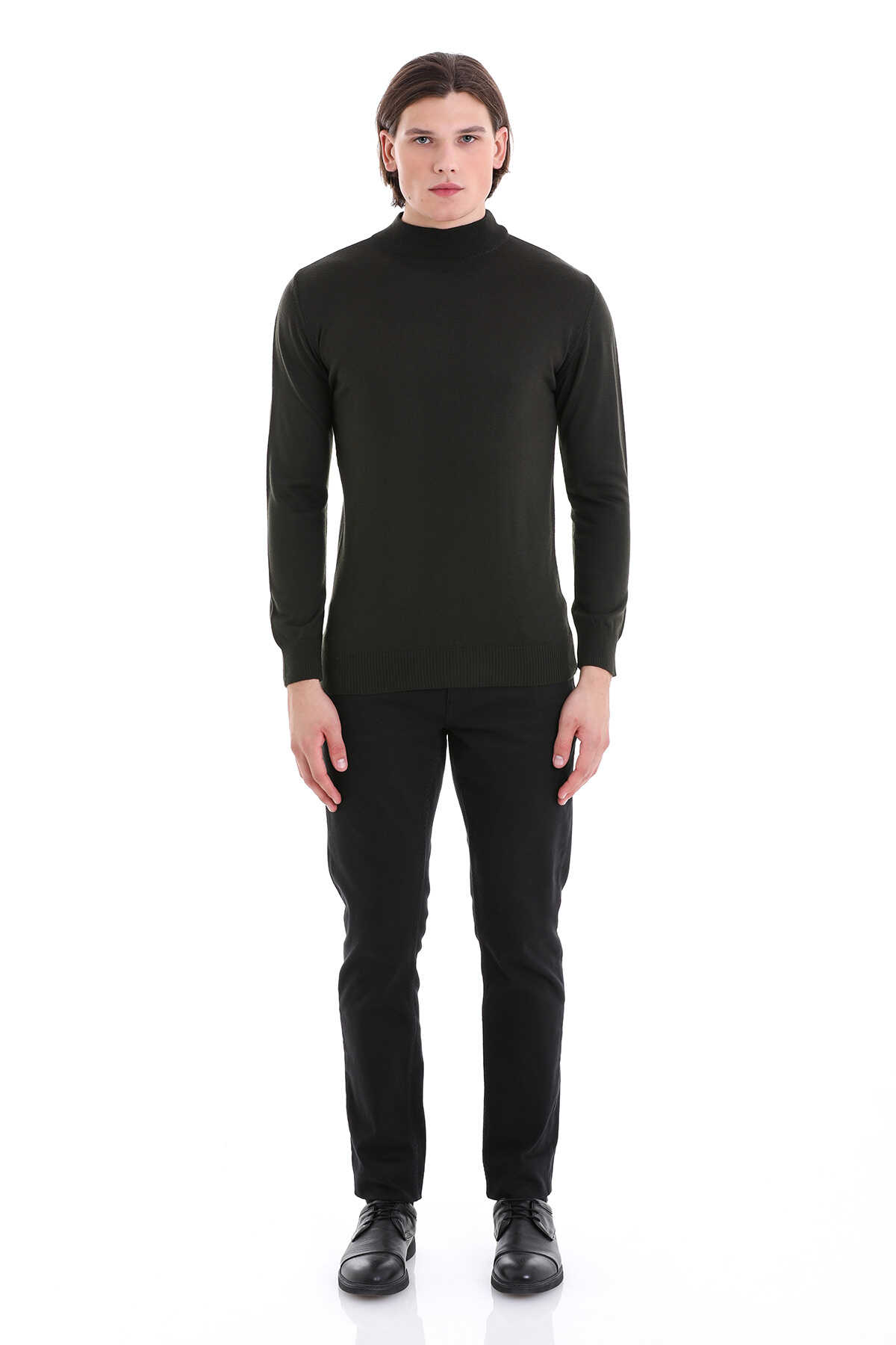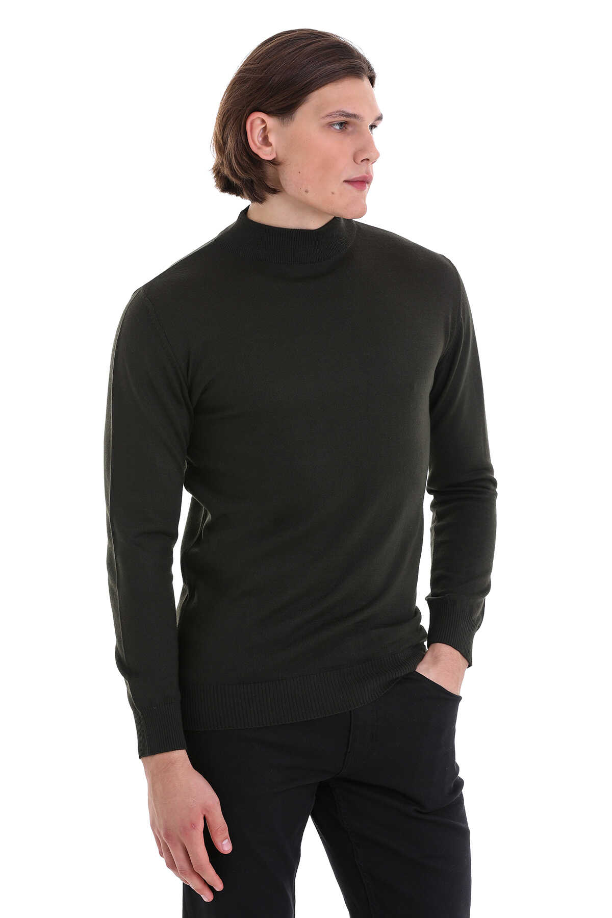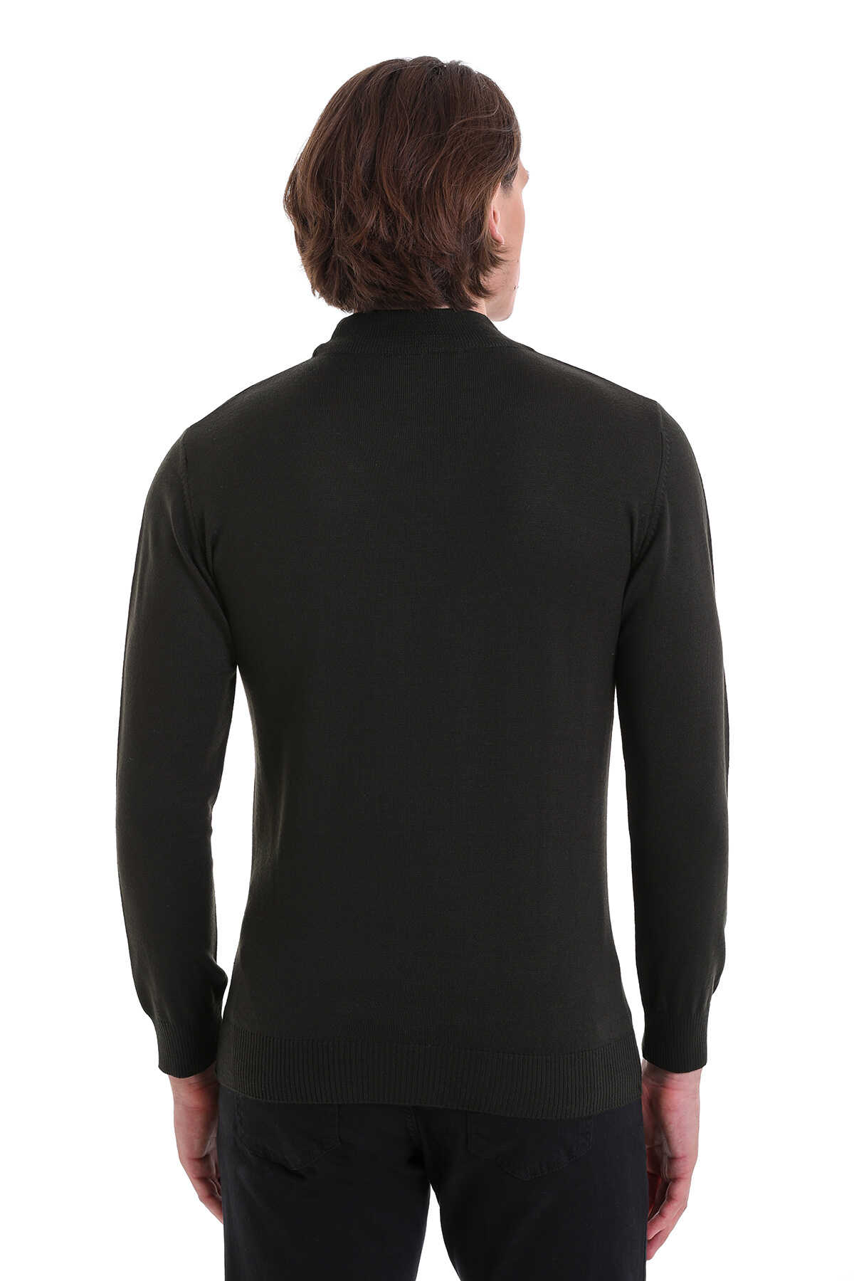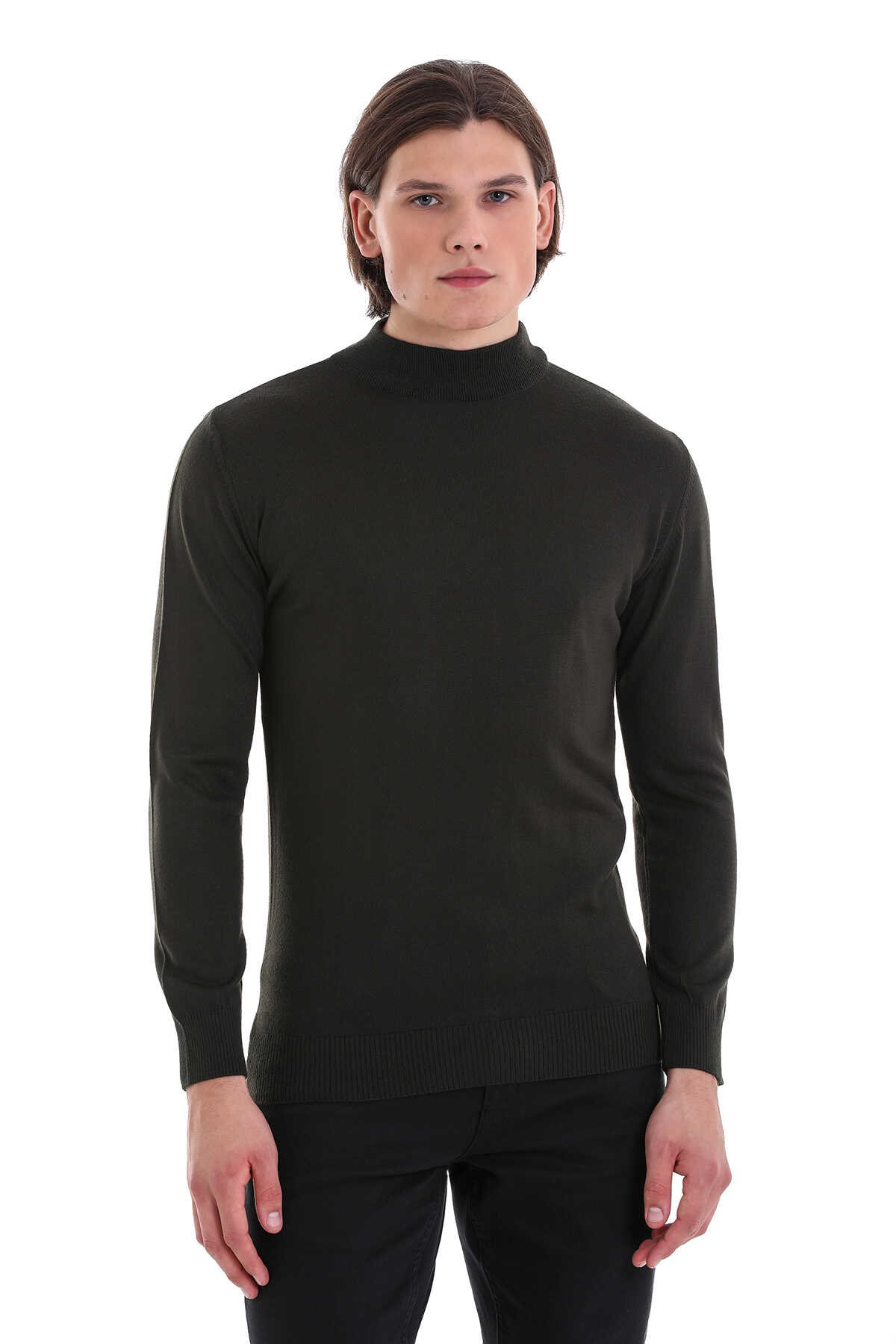 Haki Regular Fit Yarım Balıkçı Yaka Yünlü Triko Kazak