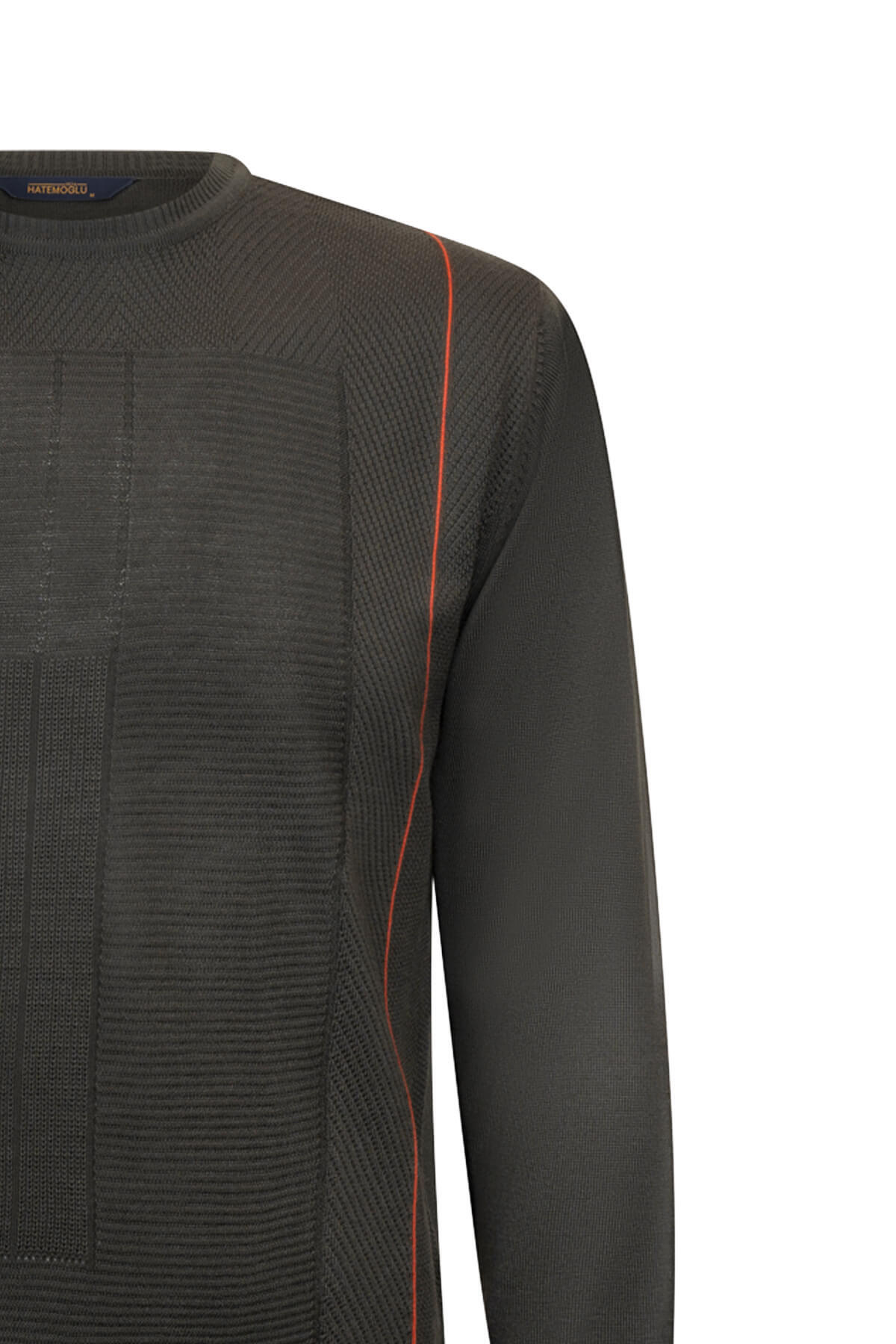 Haki Regular Fit Jakarlı Bisiklet Yaka Yünlü Triko Kazak - 3